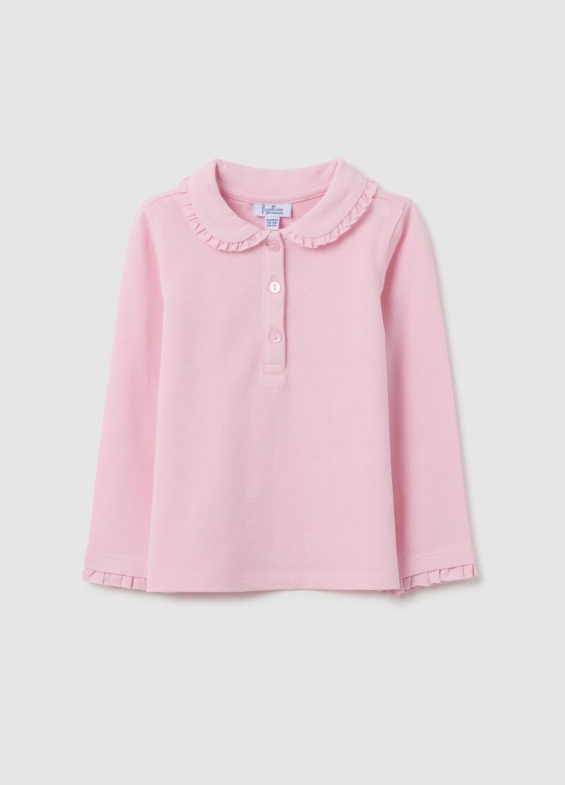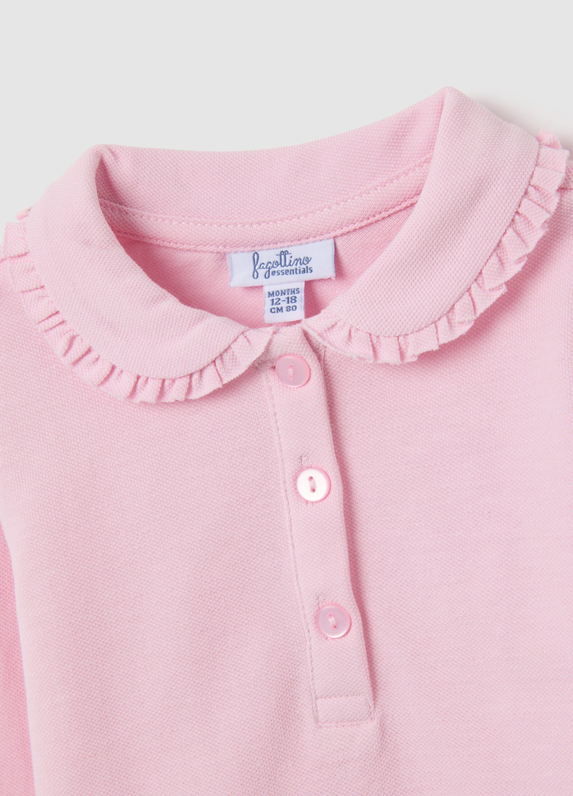 Ce t-shirt de bébé en coton pur rose de la collection Fagottino, pendant 9 à 36 mois, présente un col à ébauche arrondi qui ajoute une touche douce et sophistiquée aux tenues quotidiennes. La fermeture du bouton avant le rend pratique et idéal pour les jours plus frais. Les poignets ébouriffés complètent le design élégant, faisant de ce vêtement un choix polyvalent pour diverses occasions.