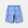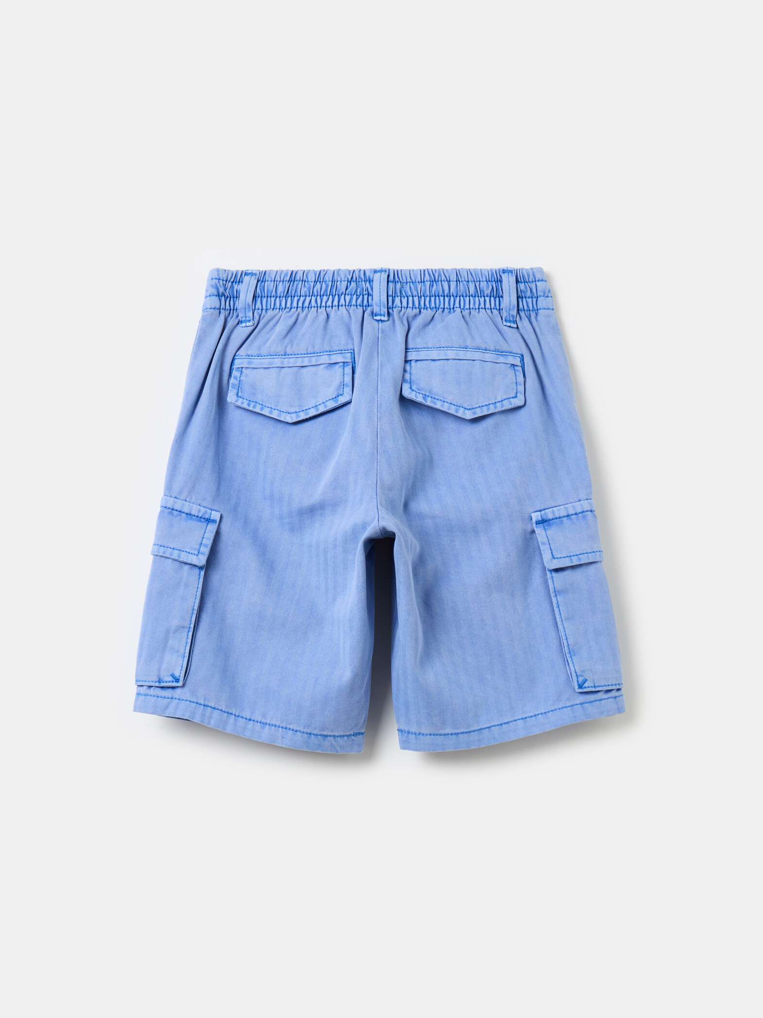 Cargo Bermuda shorts in 100% cotton with striped weave. Elasticated drawstring at the waist on the back. Two slant pockets, two patch pockets on the sides and two pockets with flap on the back. Press-stud fastening and zip closure.