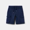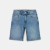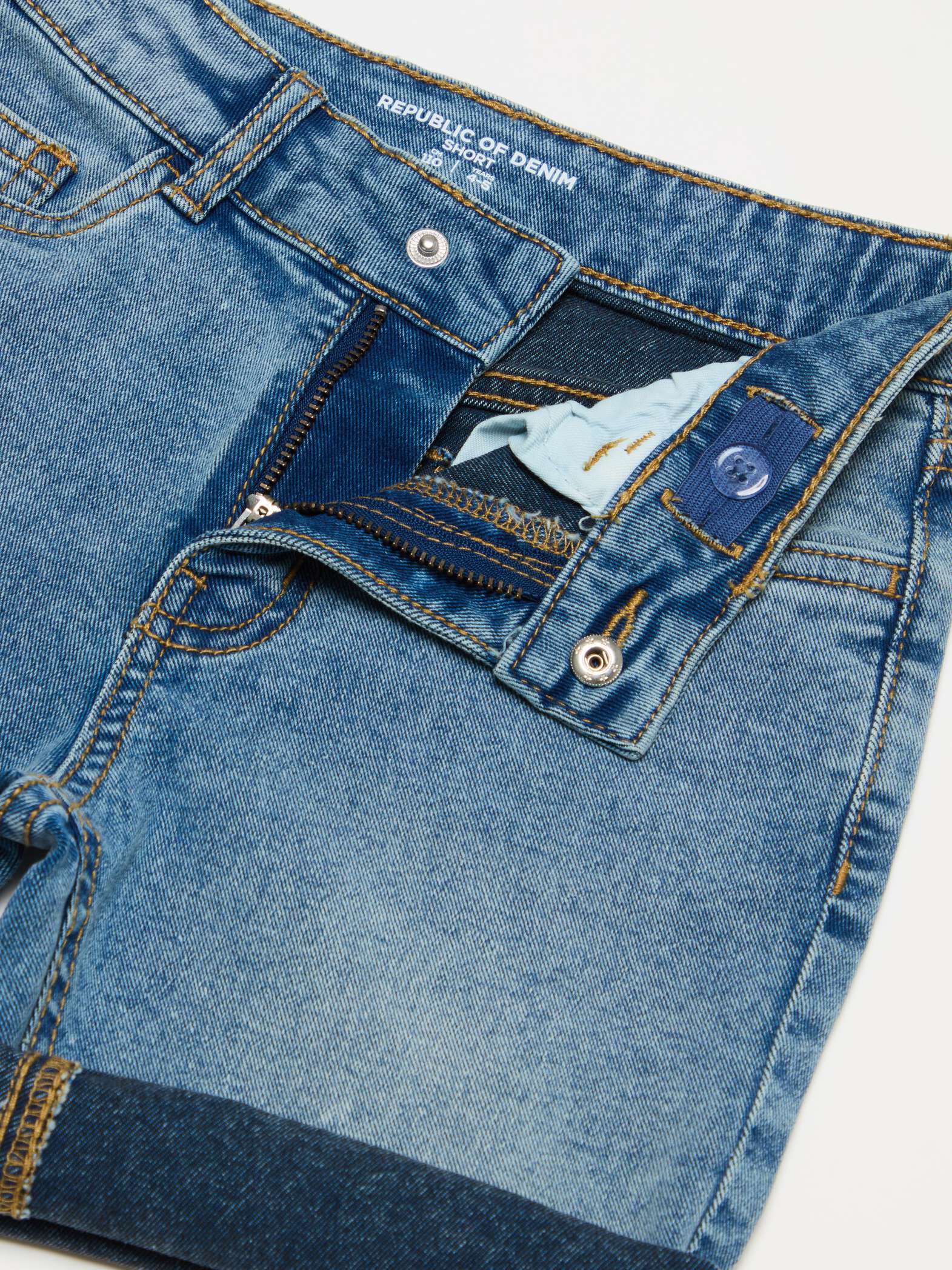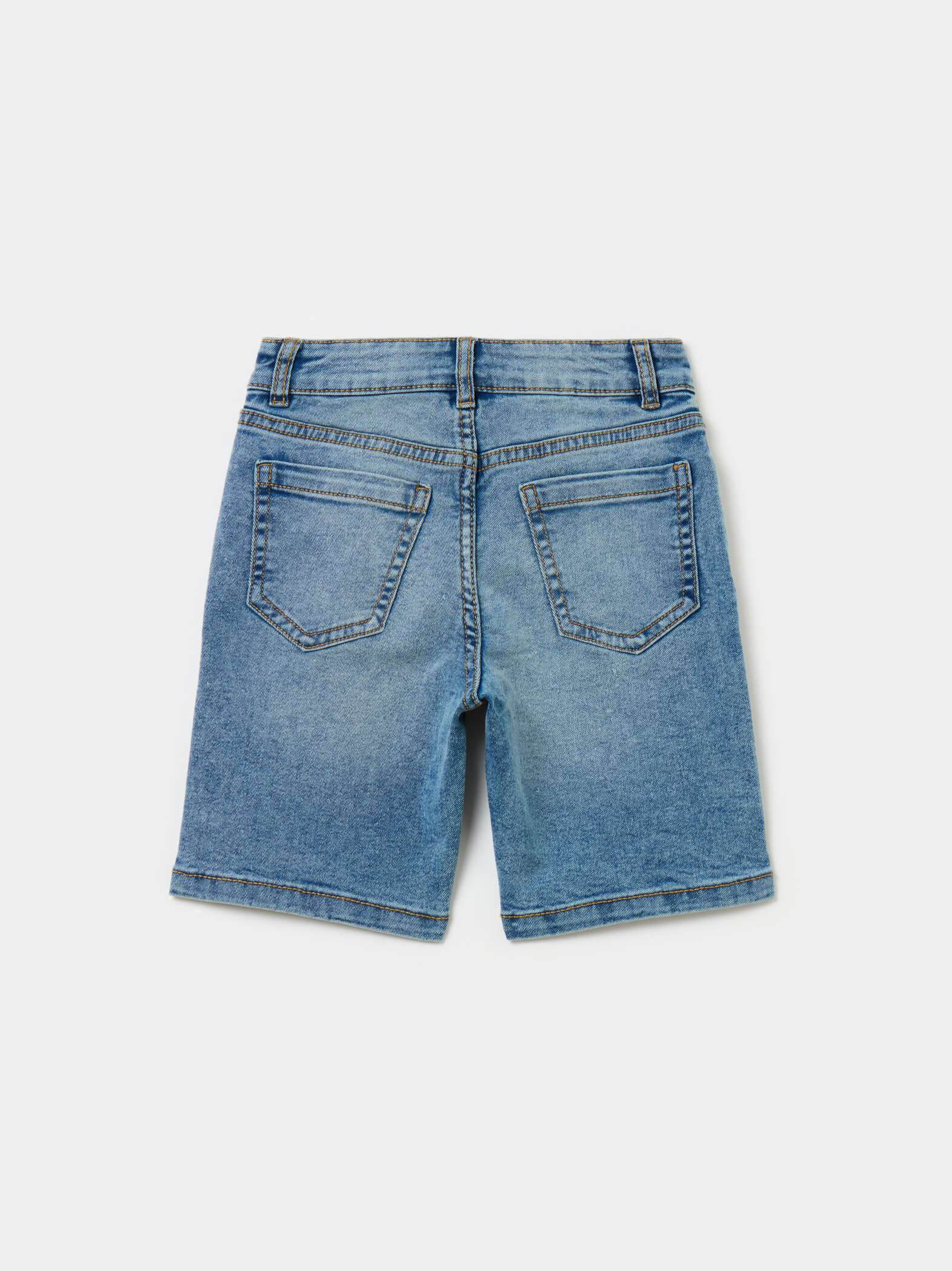 Bermuda shorts in stretch cotton blend denim. Internal waist adjustment. Five pockets. Zip and snap-button fastenings.