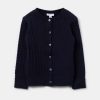 Cardigan en maille 100% coton avec motif ajouré et motif géométrique. Col rond. Poignets à volants. Bordures côtelées. Fermeture boutonnée assortie.