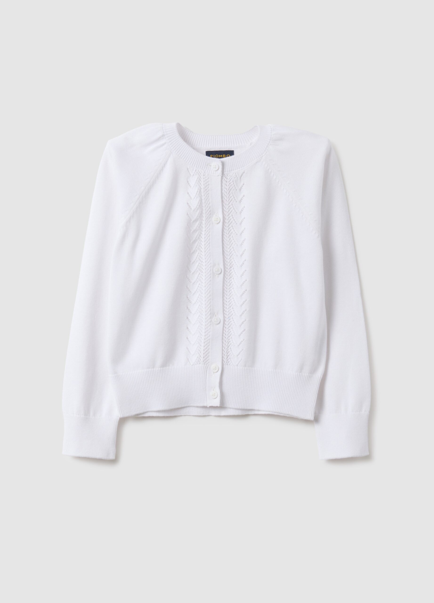 Ce cardigan blanc pour fille de la ligne PIOMBO KIDS est confectionné en pur coton, assurant douceur et confort. Son col rond et ses manches longues le rendent idéal pour les journées de mi-saison. Avec son design classique et ses détails en maille torsadée, c’est un vêtement polyvalent qui ajoute une touche raffinée et confortable.