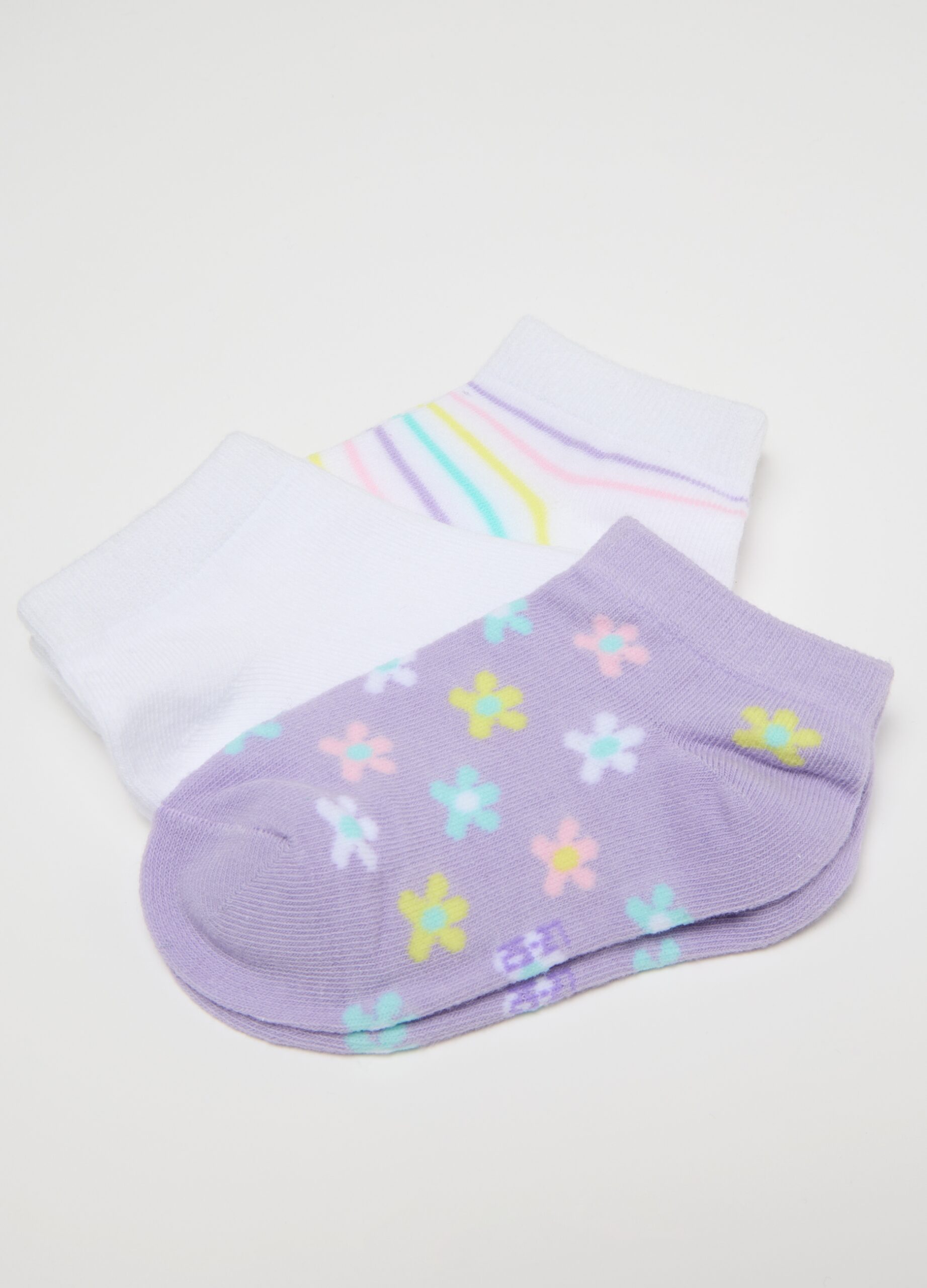 Les chaussettes de ces filles multicolaires de la ligne OVS Kids sont en coton, offrant un confort optimal avec leur ajustement extensible. Le motif floral et rayé ajoute une touche vivante et amusante, parfaite pour les jours d’été.