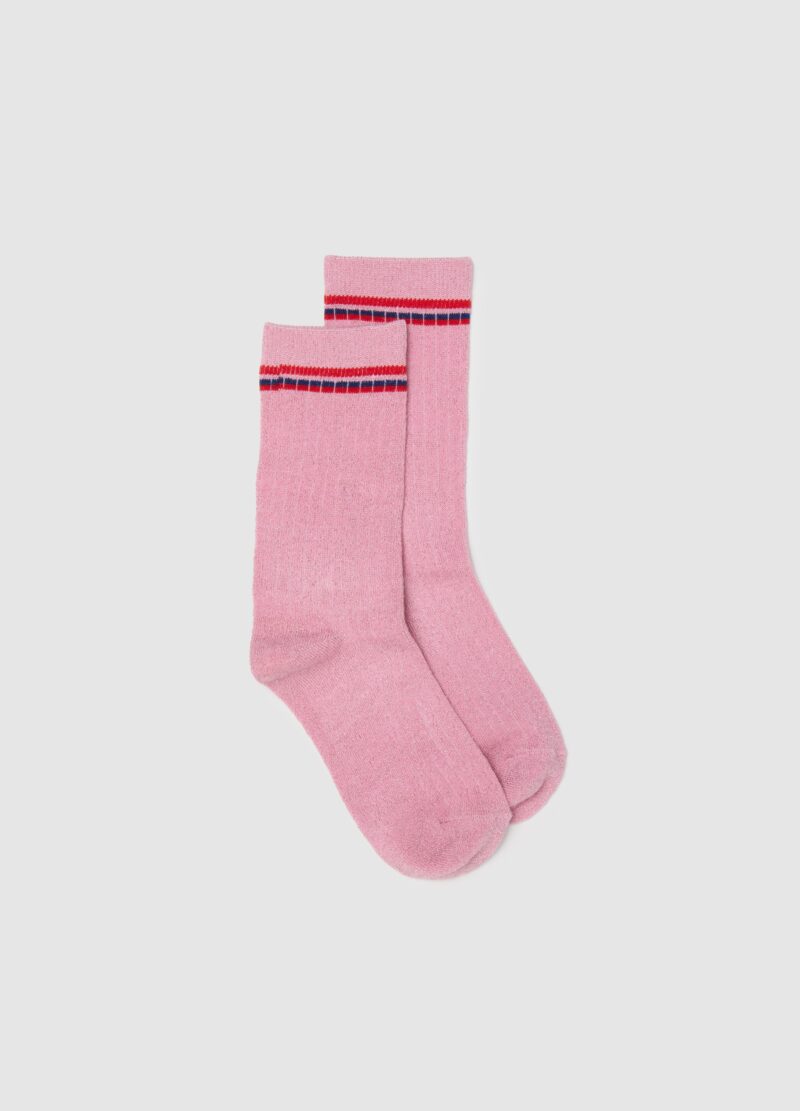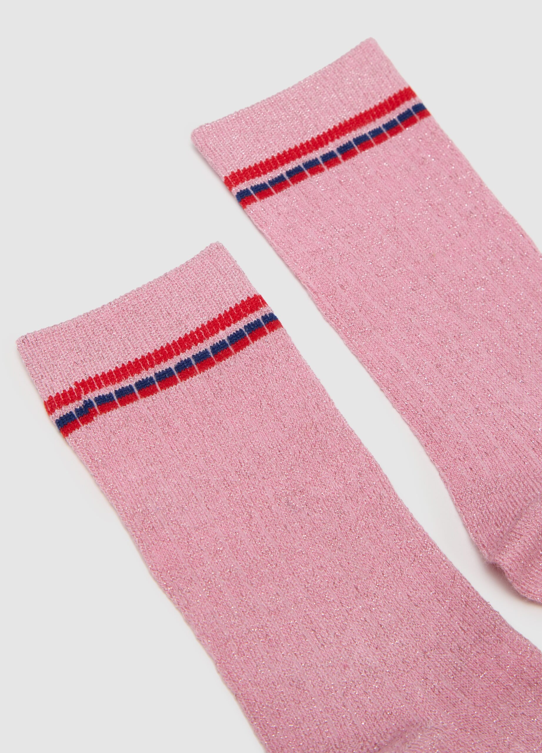 Piombo Kids Short Choches en tricot avec des rayures décoratives rouges et bleues sur le bord. Idéal pour compléter des looks décontractés et ludiques.
