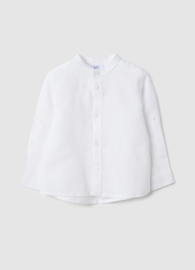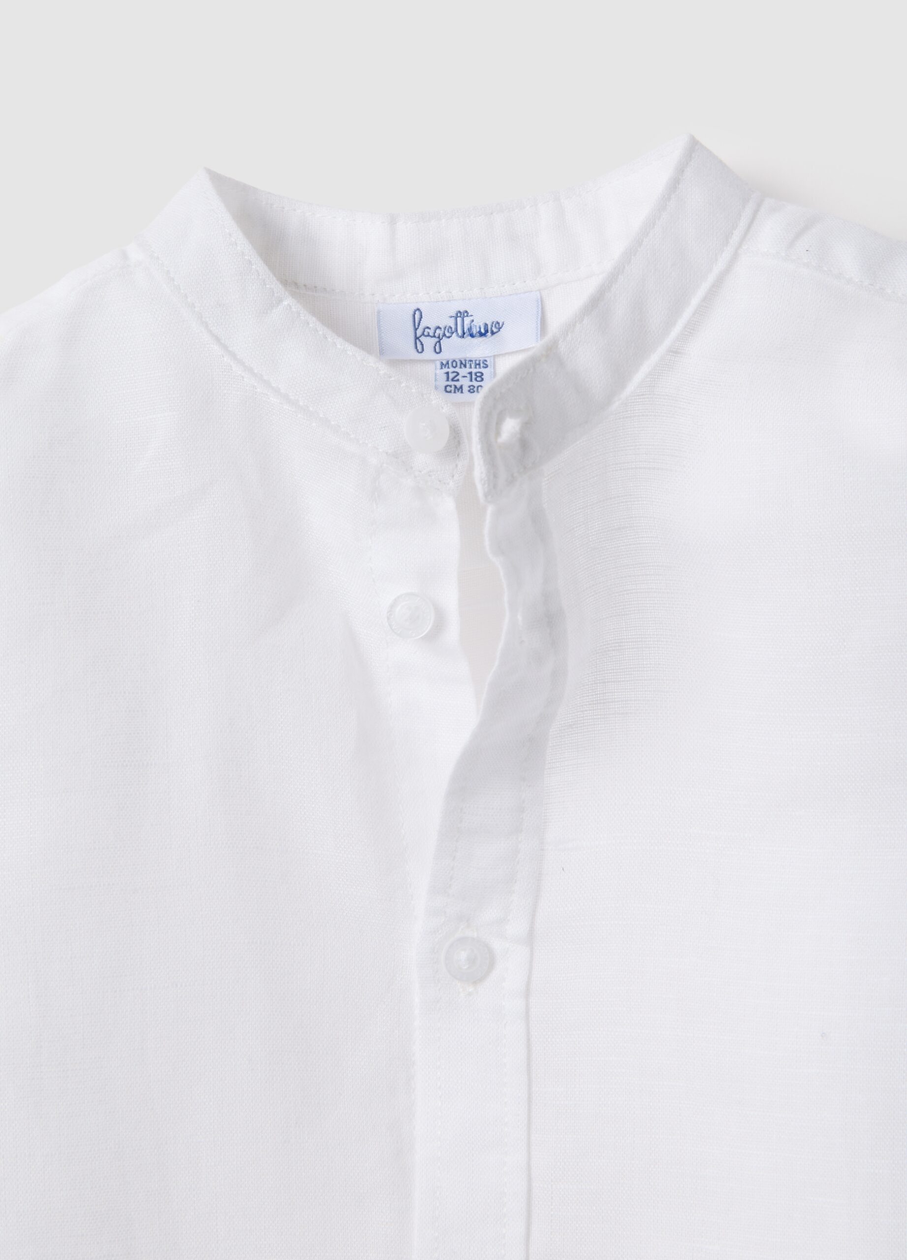 Cette chemise blanche de la ligne Fagottino est confectionnée en lin et coton, assurant fraîcheur et confort aux bébés de 9 à 36 mois. Il est doté d’un collier mandarin et d’une coupe classique pour un port pratique. Idéal pour les occasions décontractées ou formelles au printemps et en été, il offre une liberté de mouvement grâce à sa construction légère. Parfait pour ceux qui recherchent un vêtement polyvalent et confortable.