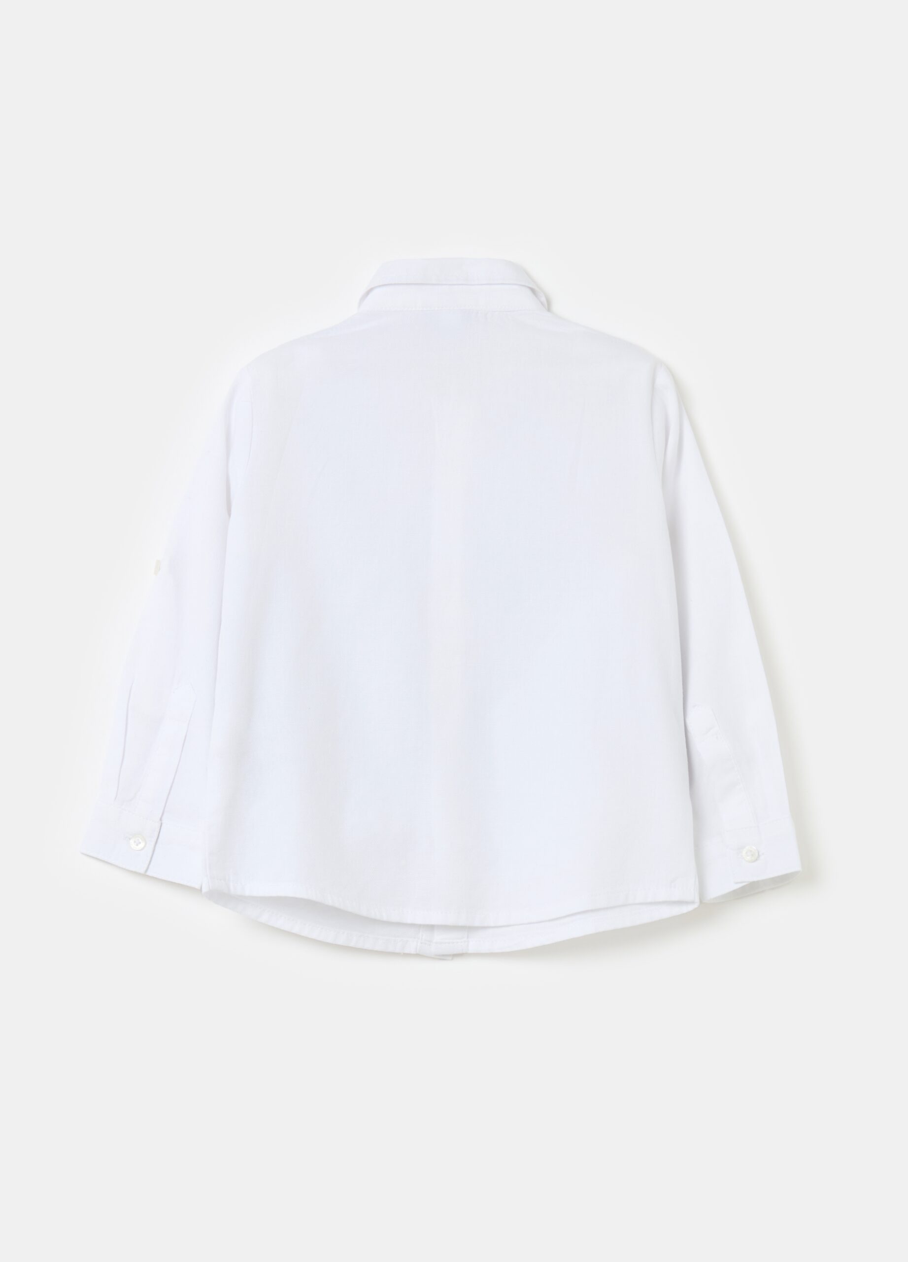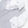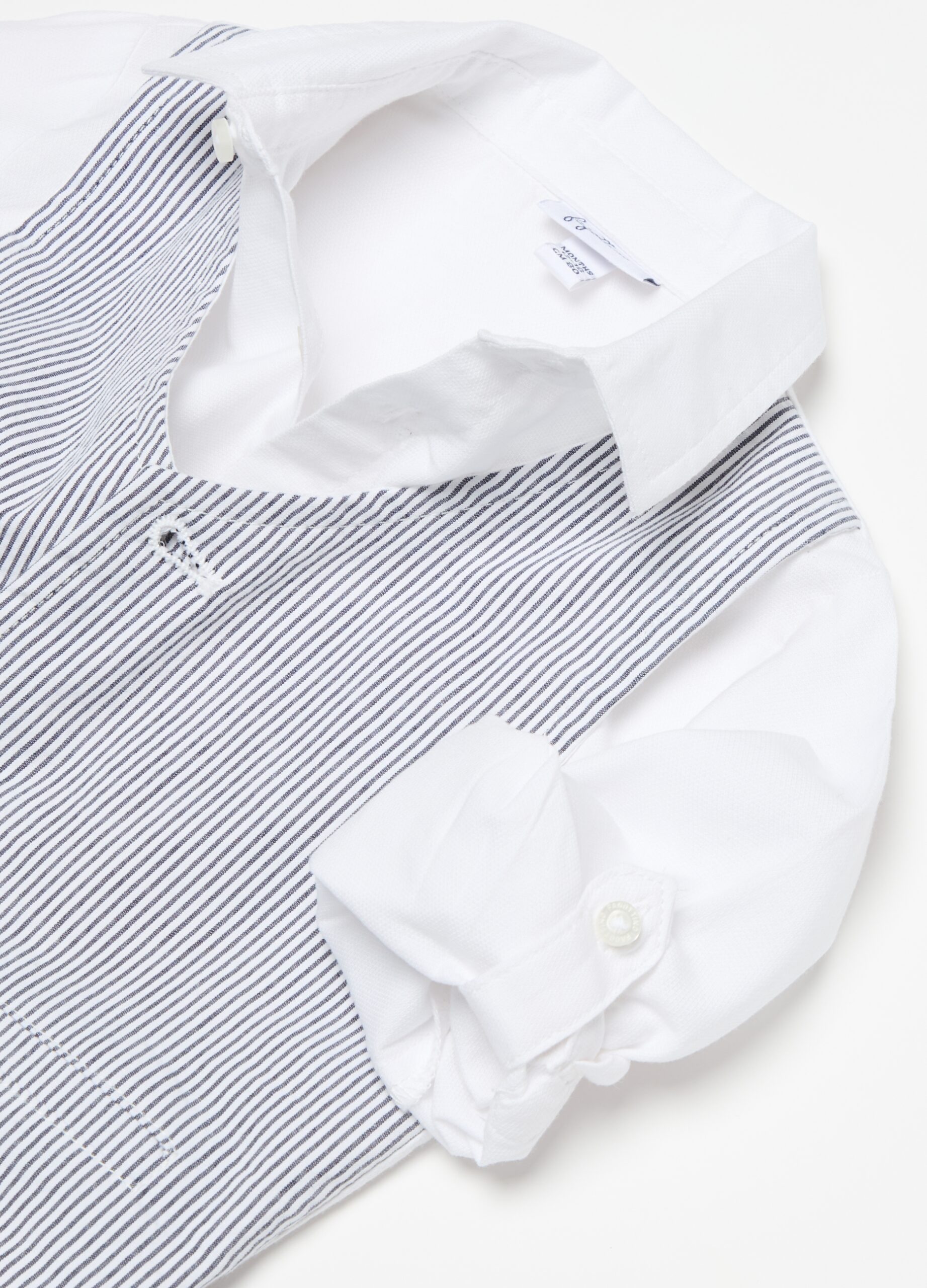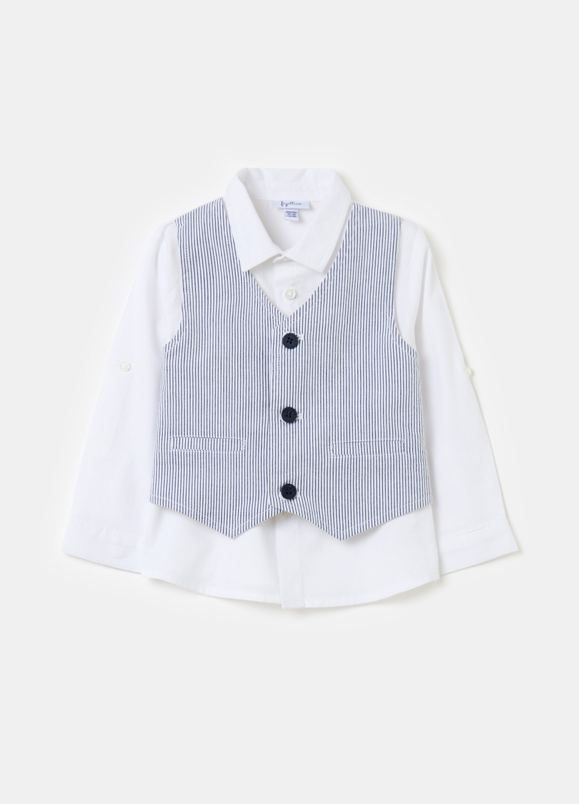 Chemise en 100% coton. Col bluff. Manches avec poignets boutonnés retournés. Gilet à motif rayé avec boutons et deux poches plaquées passepoilées sur le devant. Fermeture boutonnée.