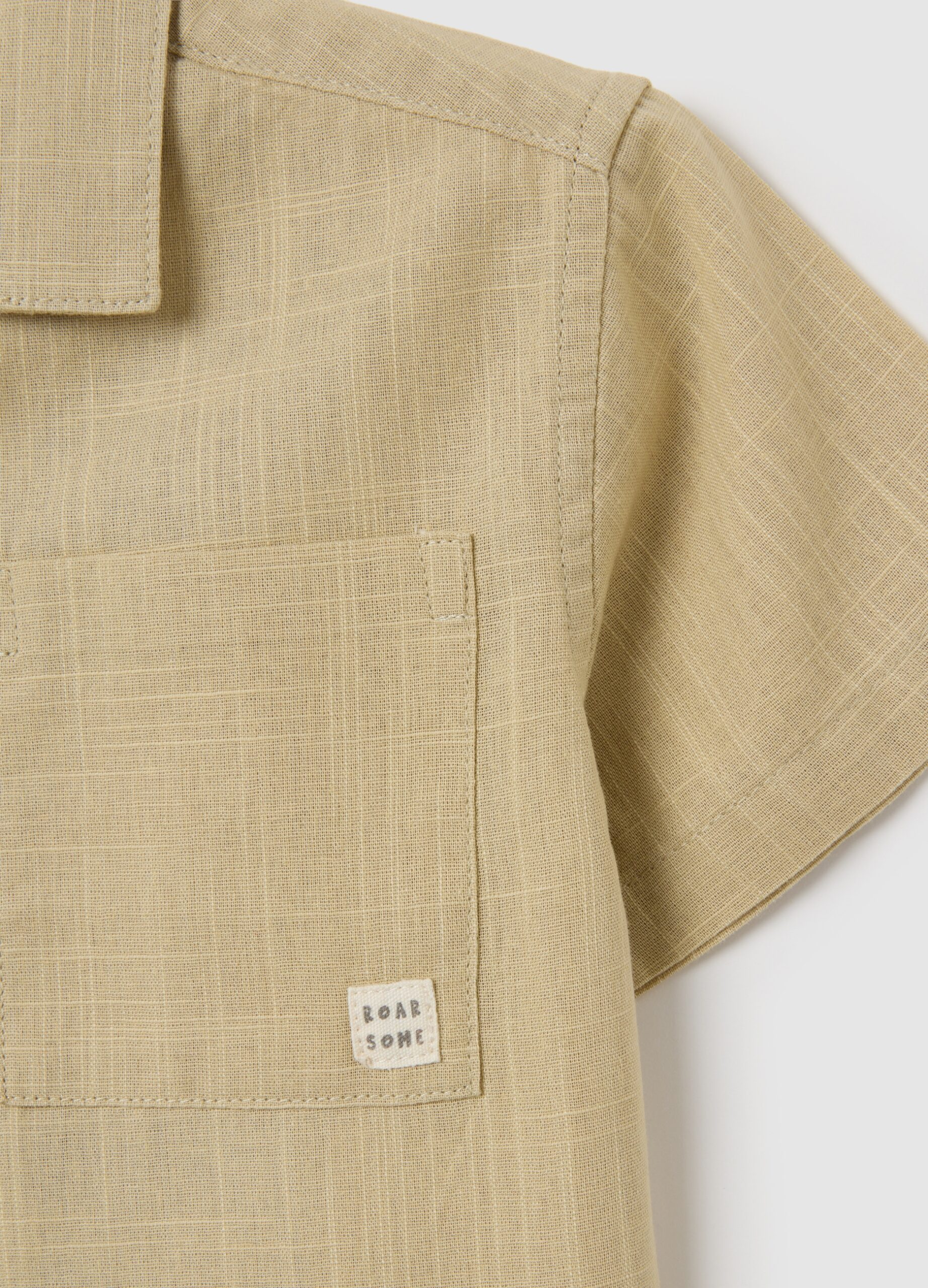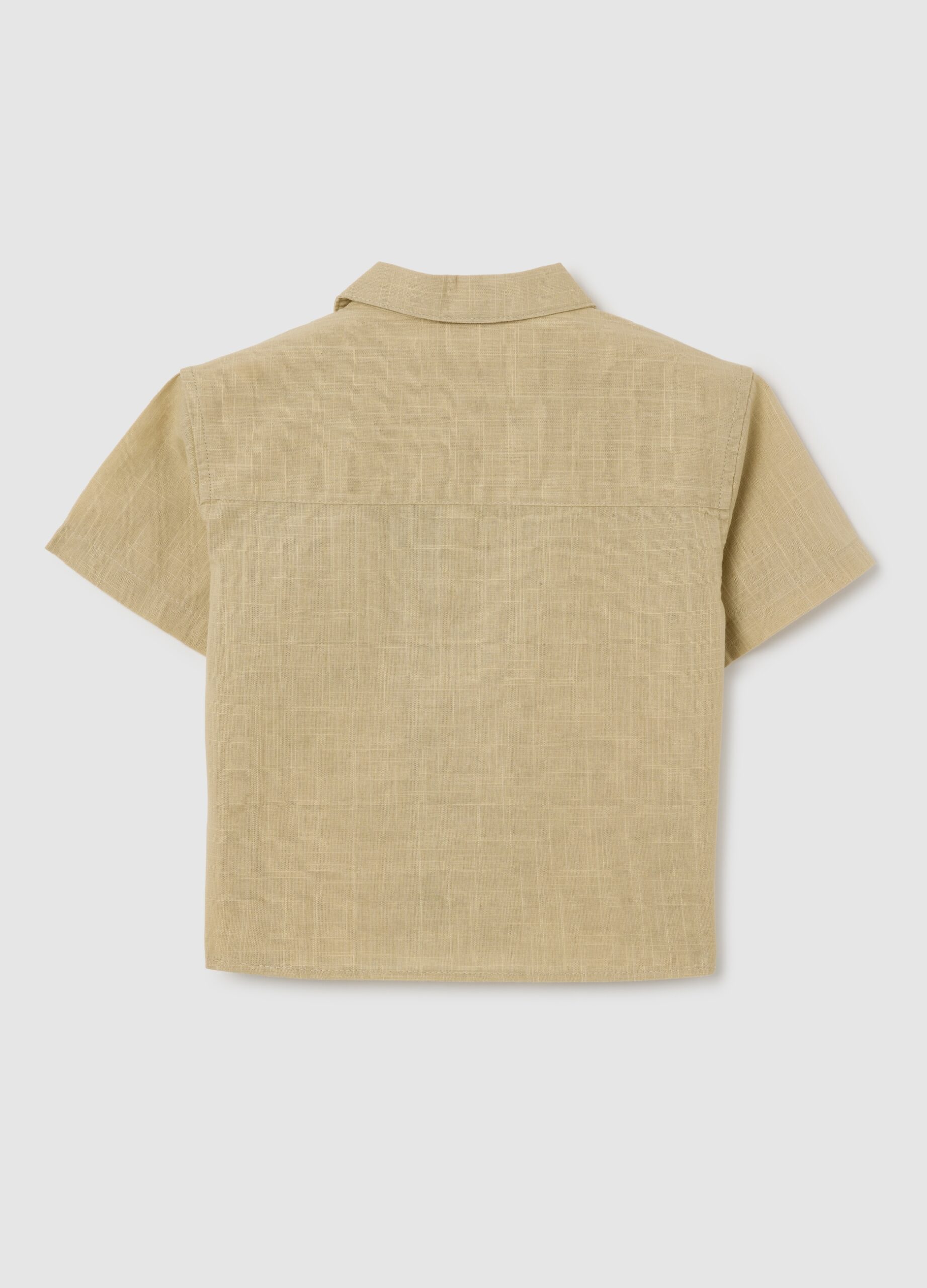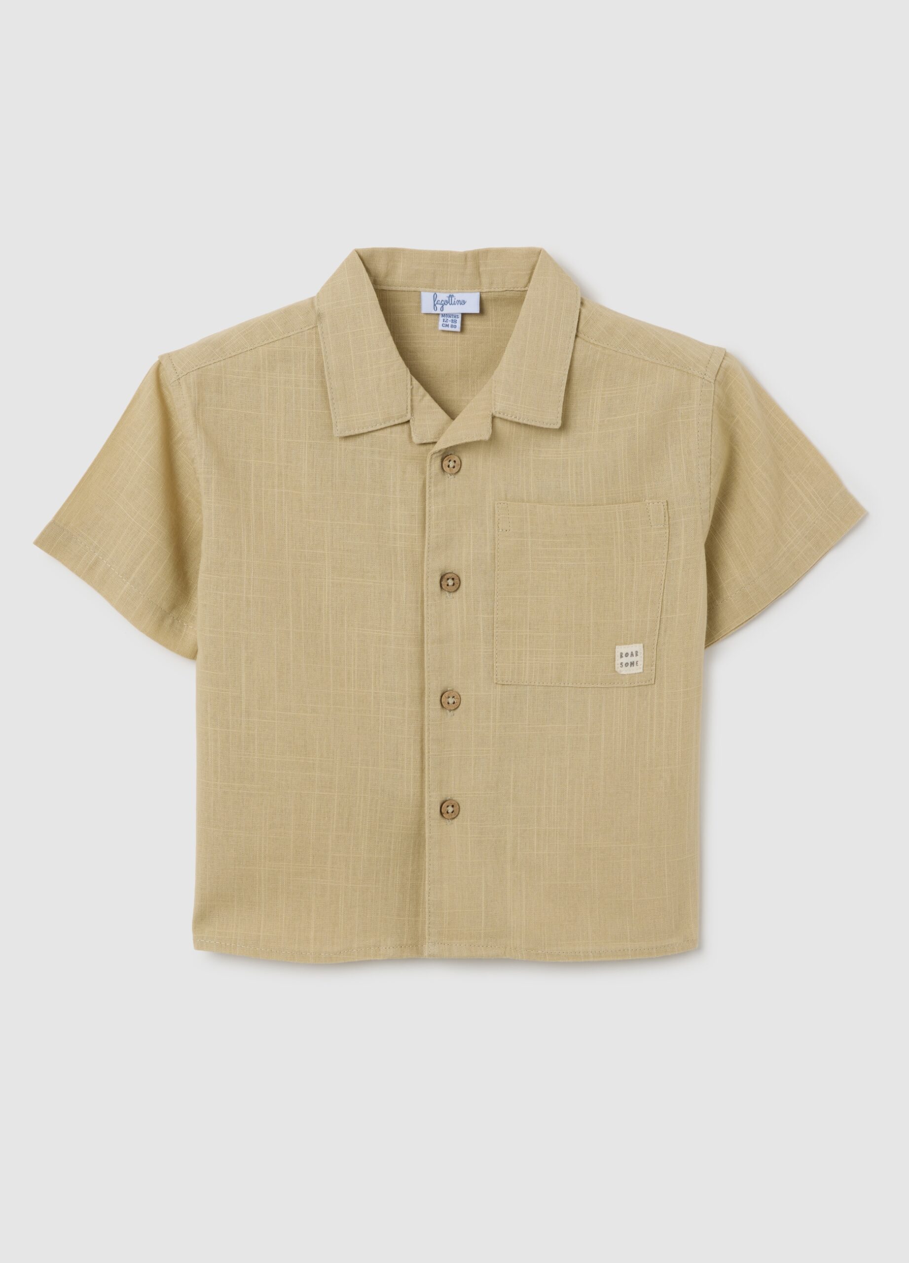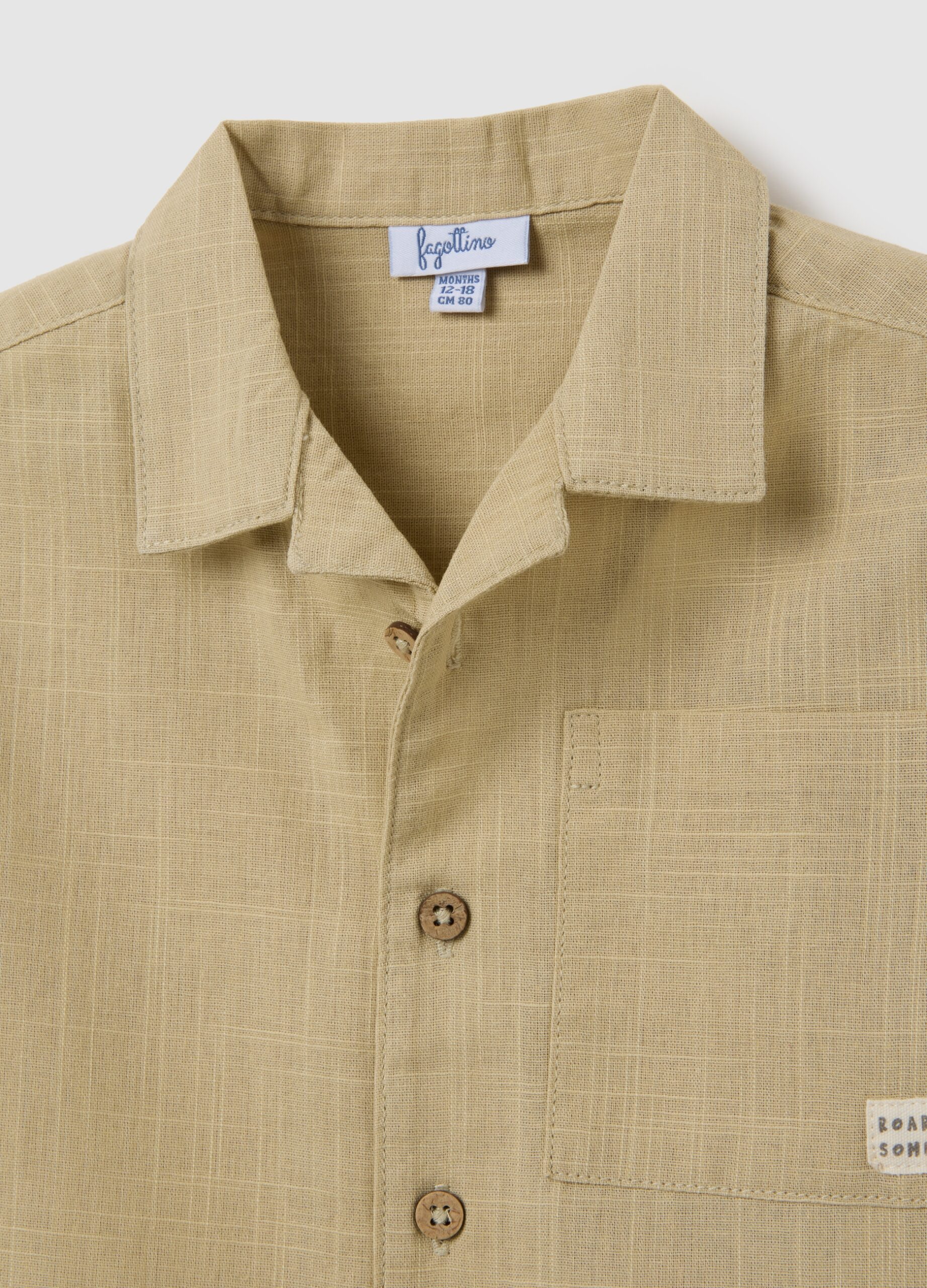 La chemise beige à manches courtes de la ligne Fagottino est conçue pour les enfants entre 9 et 36 mois. Fabriqué en coton pur, il dispose d’un collier à motifs élégants qui ajoute une touche distinctive au vêtement. Sur la poitrine, une poche appliquée offre une pratique et comprend un détail décoratif qui améliore l’apparence globale. La fermeture de bouton classique assure un ajustement confortable et une usure facile.