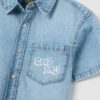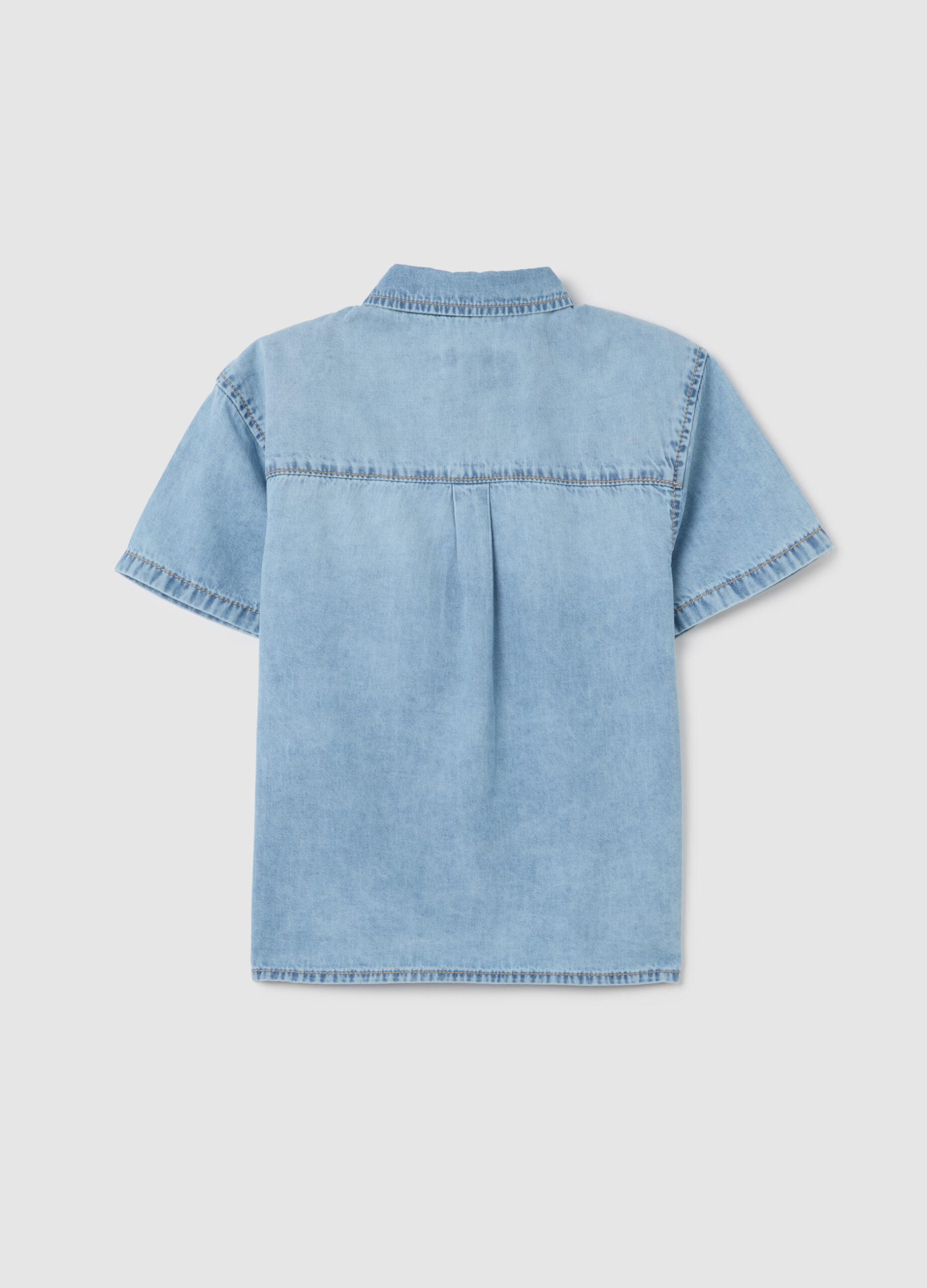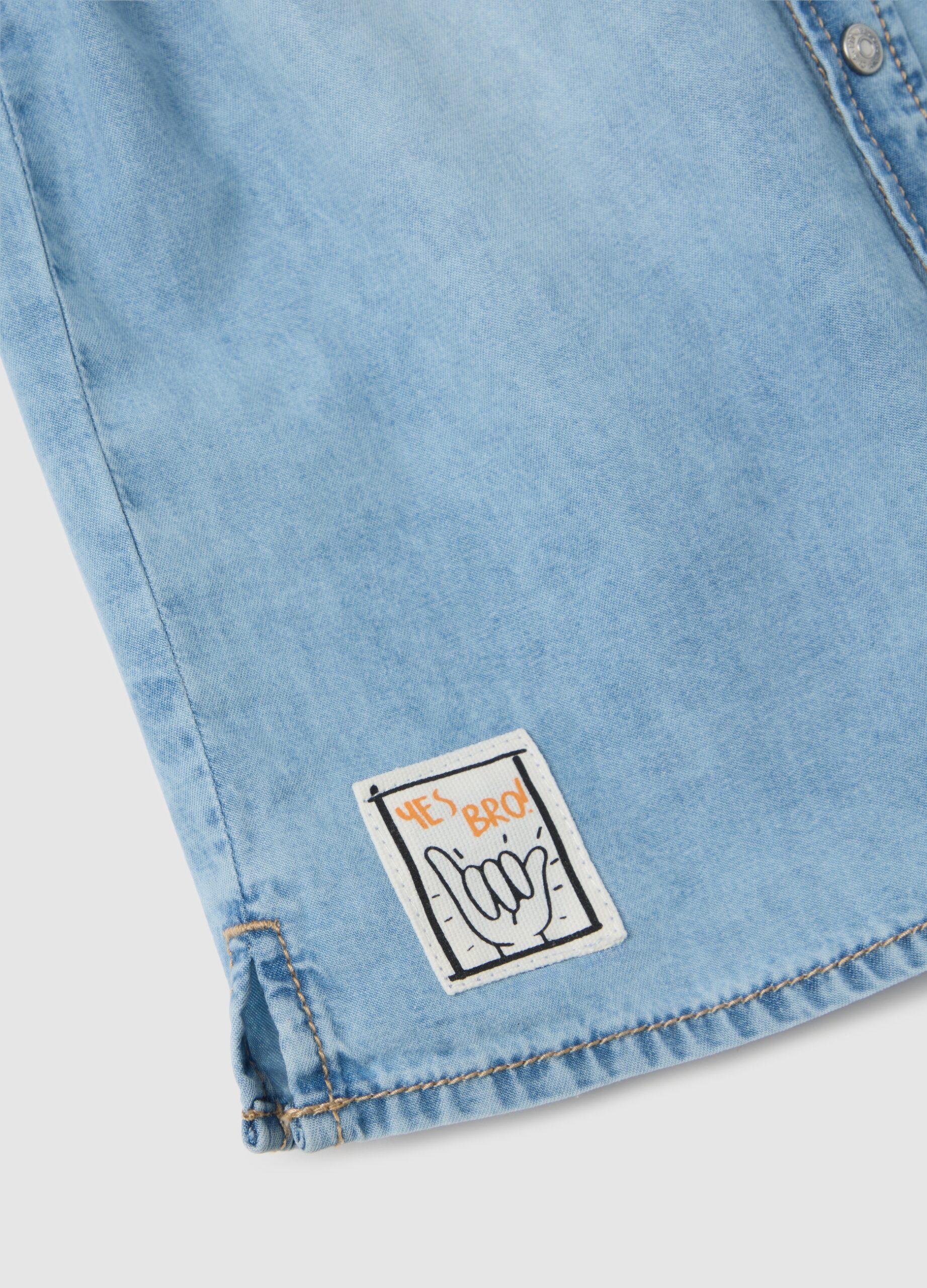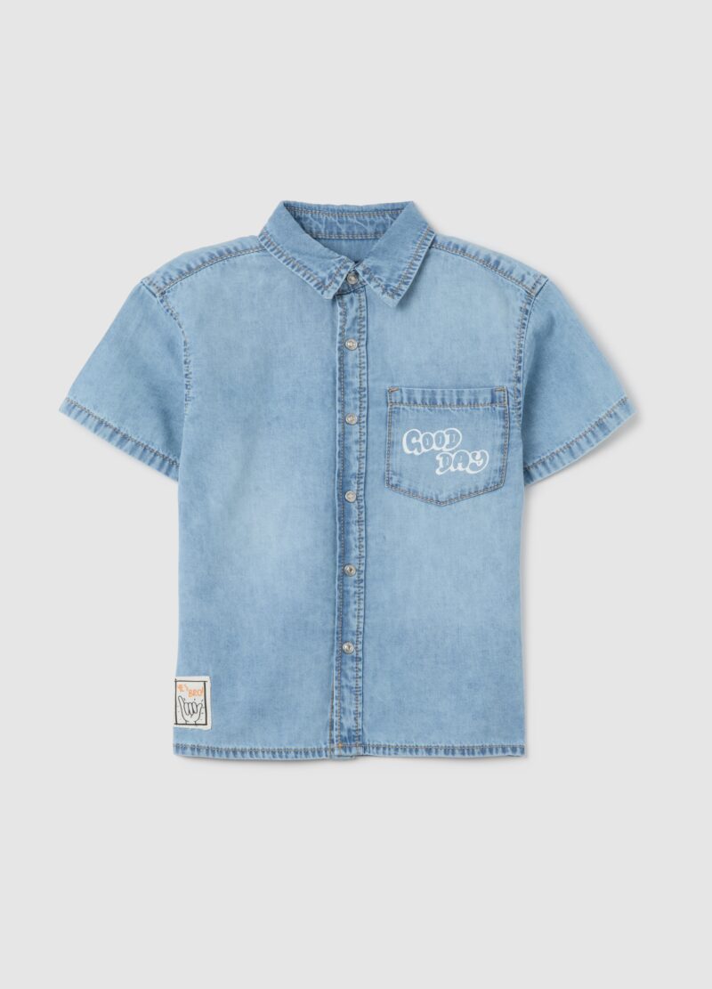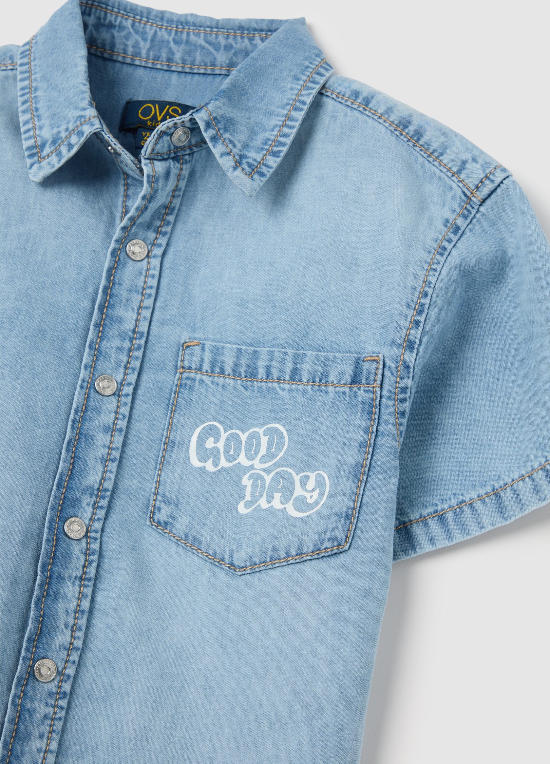 Ovs Kids Summer Shirt en coton pur. Manches courtes et col classique. Poche avec une impression de «bonne journée» sur la poitrine. Fermeture de bouton.