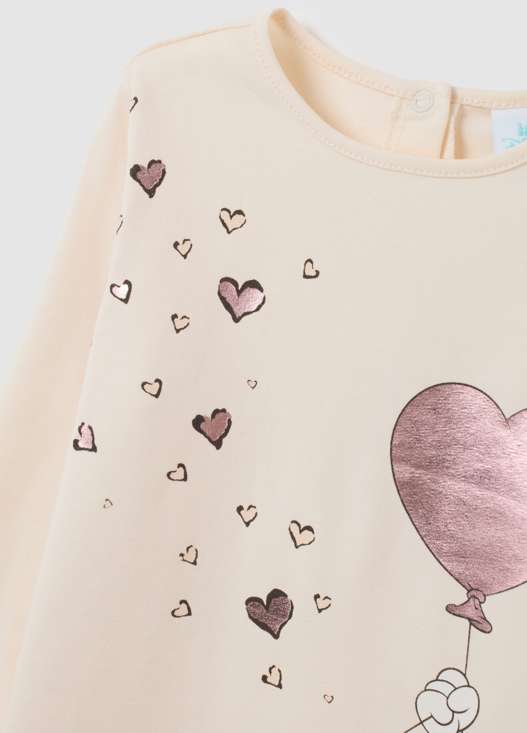 Ce pull beige à manches longues de la ligne Disney est conçu pour les bébés filles âgées de 9 à 36 mois. Fabriqué à partir de coton extensible, il dispose d’un doux Minnie et Hearts Print, parfait pour ajouter une touche de charme à la garde-robe. Le cou rond garantit le confort, tandis que la fermeture du bouton arrière le rend facile à porter.