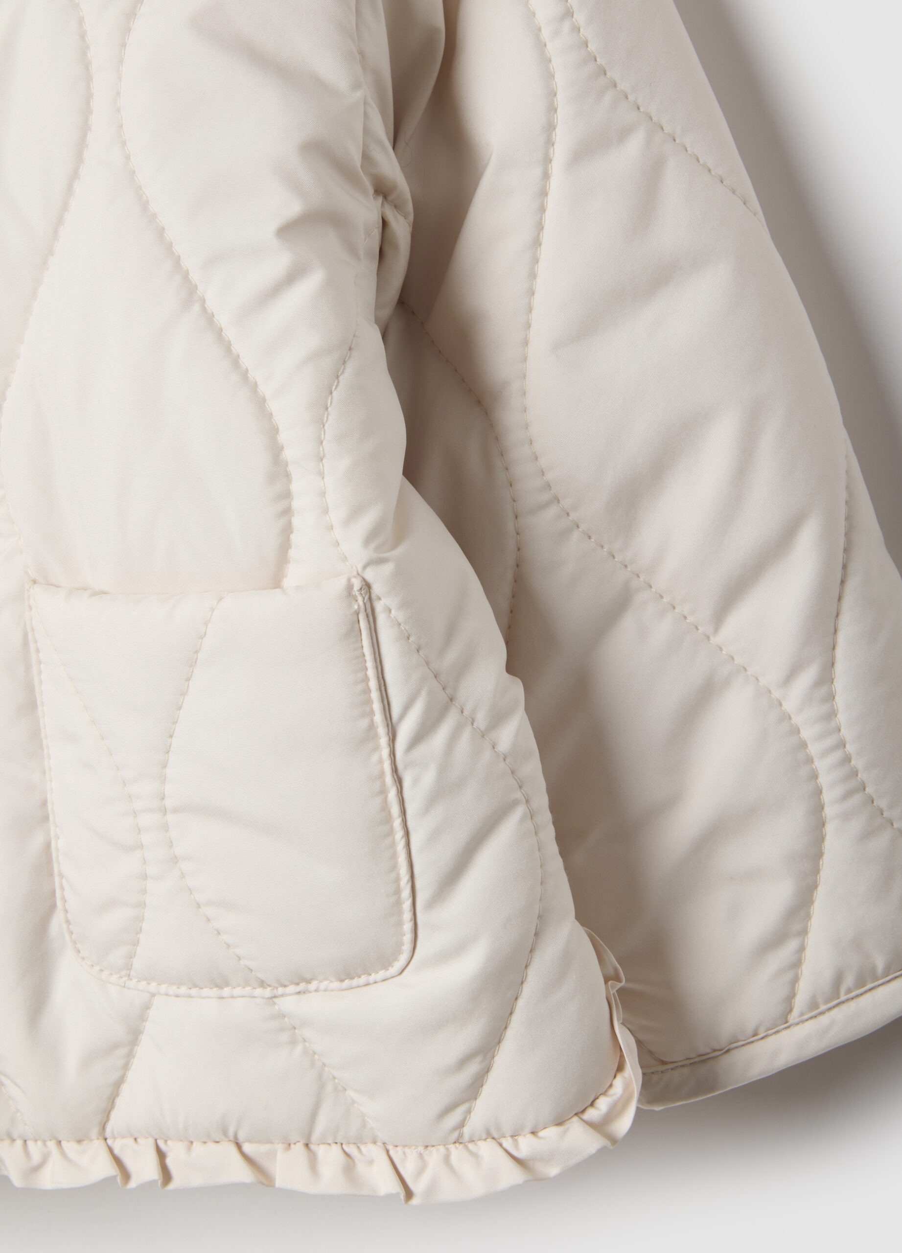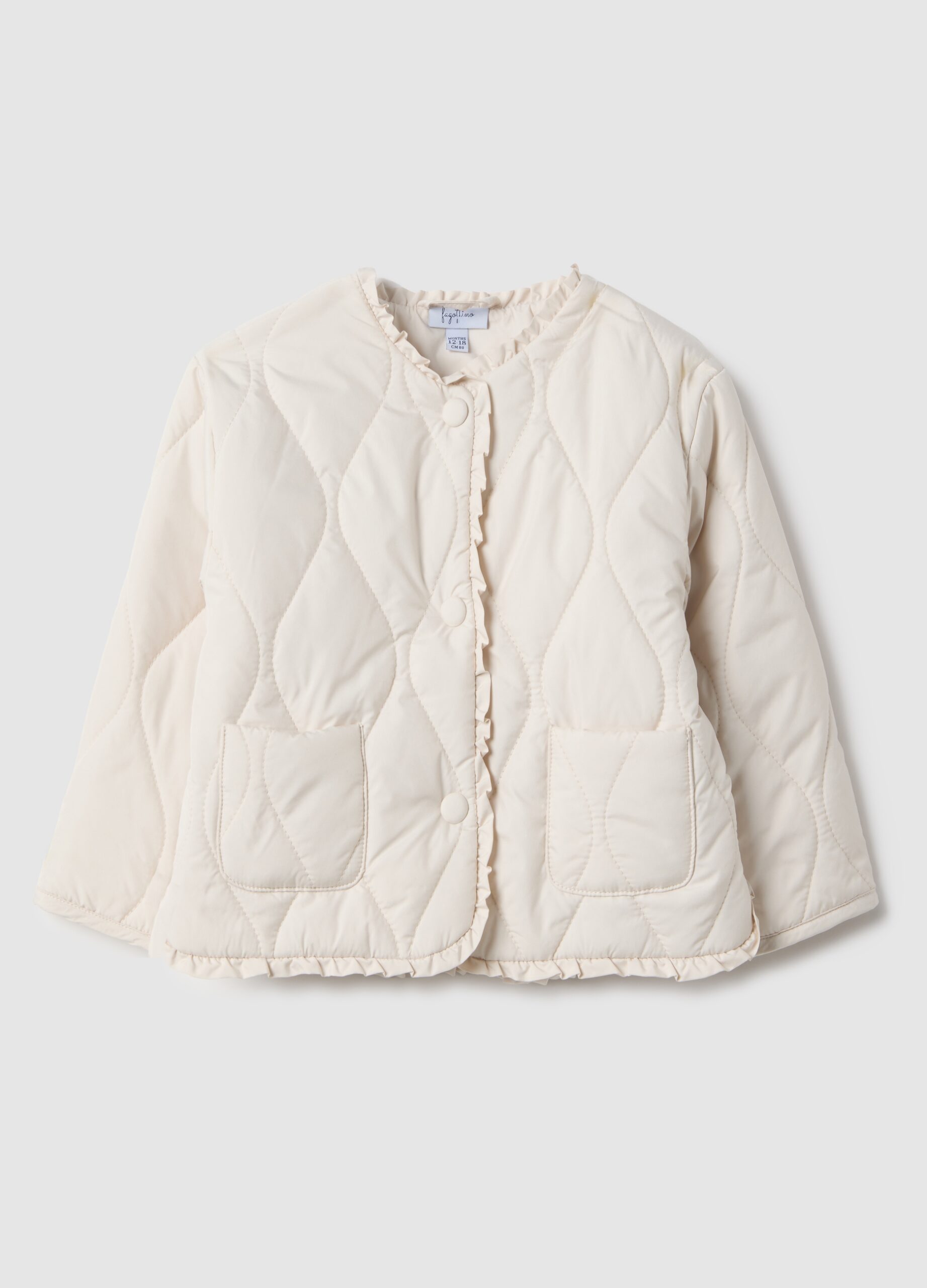 La doudoune blanche de la ligne Fagottino est idéale pour les filles de 9 à 36 mois, parfaite pour conserver la chaleur pendant la saison printemps-été. Il offre un design pratique avec une fermeture boutonnée et des poches avant assurant le confort. La coupe régulière et la finition hydrofuge offrent une coupe confortable et polyvalente, ce qui rend ce vêtement essentiel pour les saisons de transition.