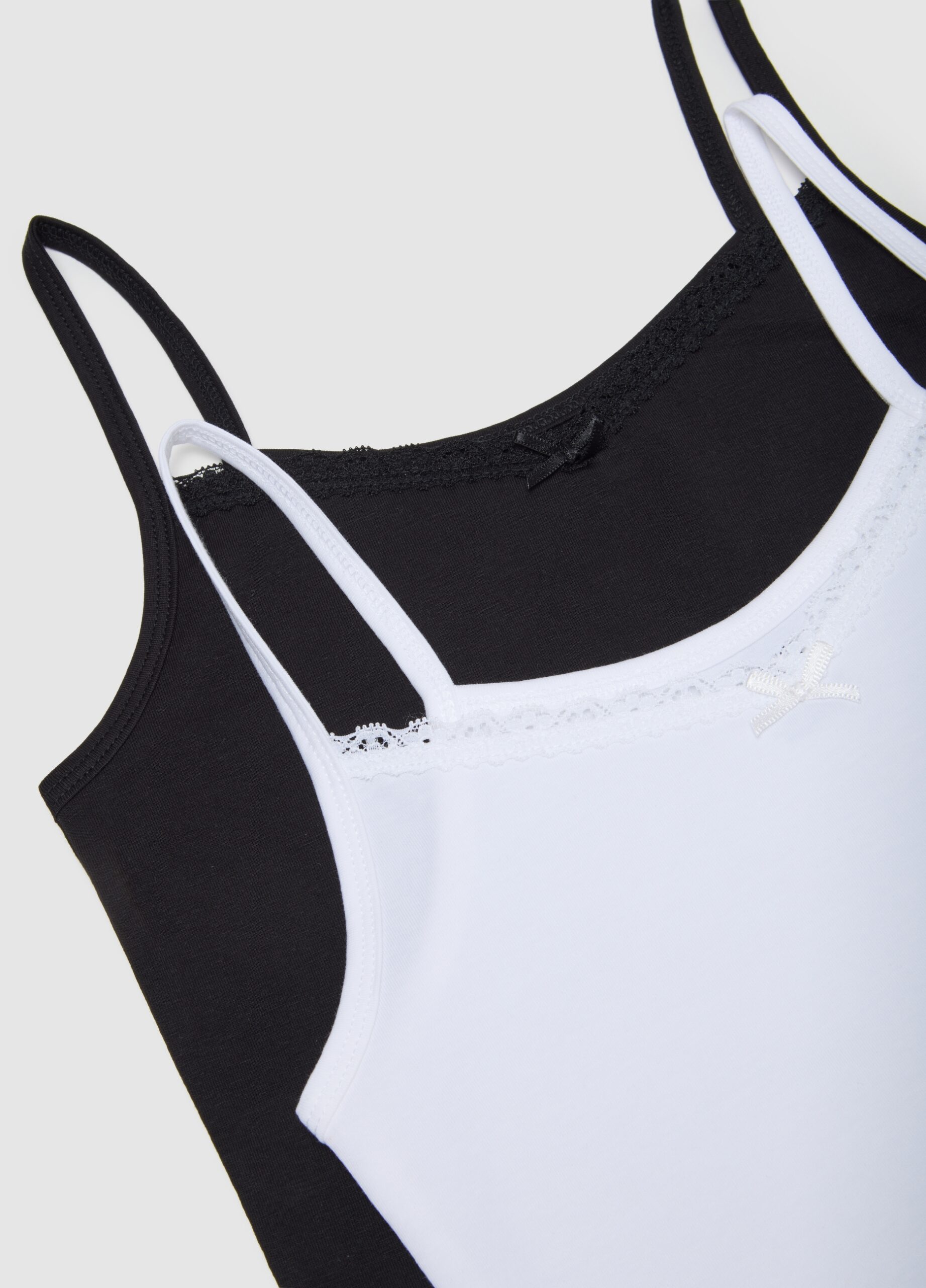 Cet ensemble de bipacks de sommets pour filles, conçu pour les 9 à 14 ans de la gamme OVS Kids, se compose de deux modèles dans un étirement en coton coloré. Ils présentent des sangles minces et un arc délicat au bord supérieur, offrant une base polyvalente pour toute tenue. Ces hauts sont idéaux pour l’usure quotidienne, assurant le confort et la praticité.