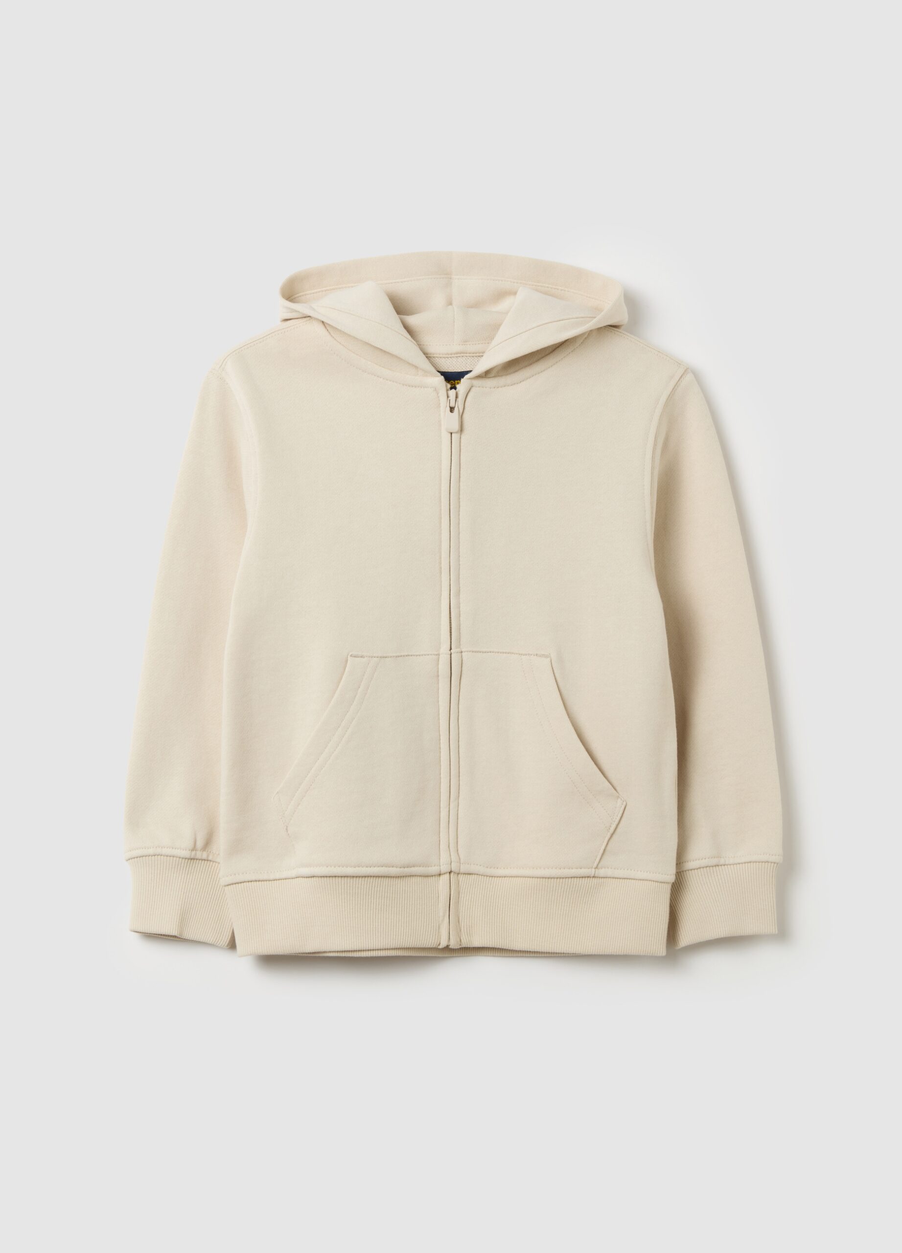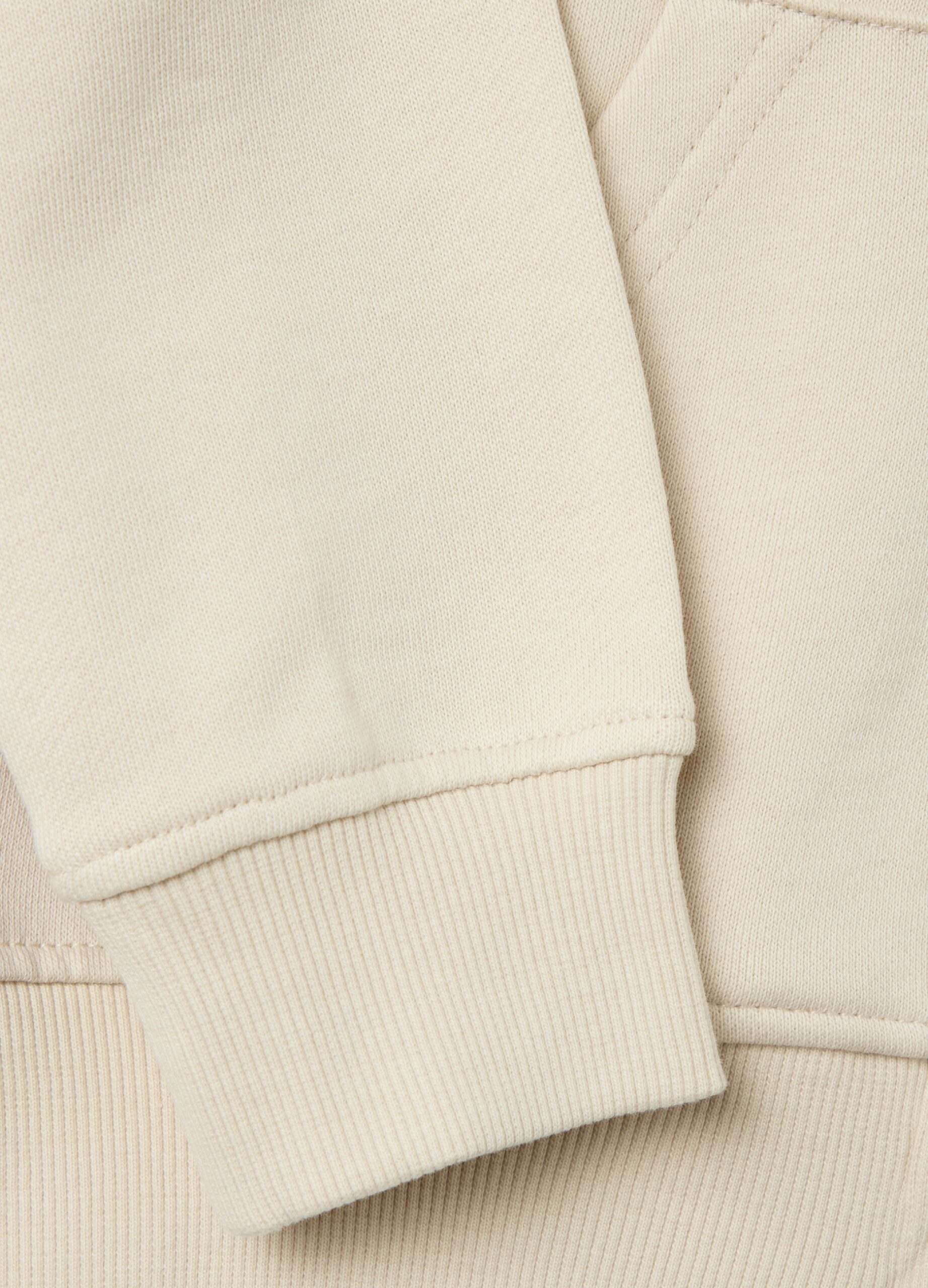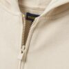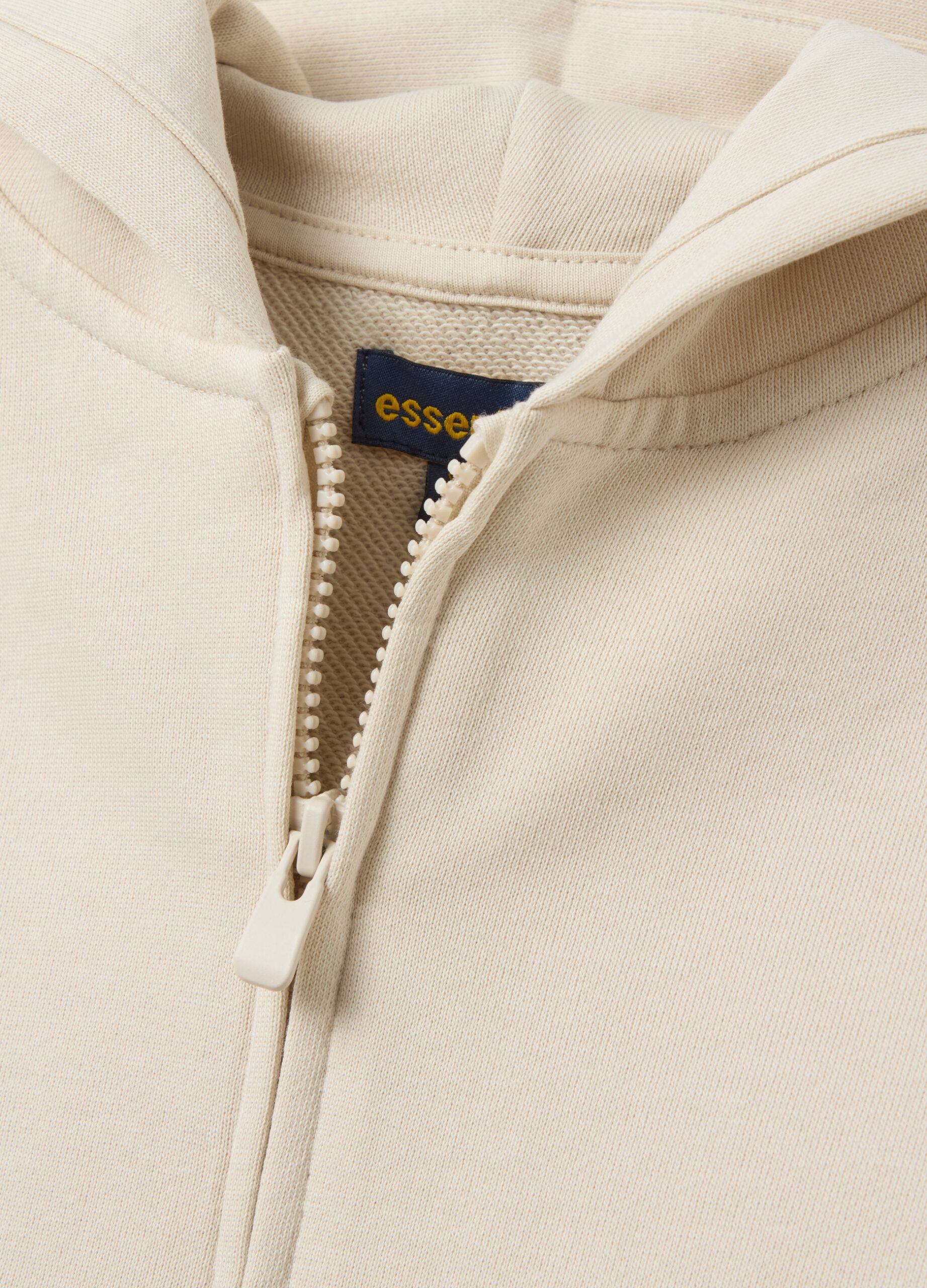 Sweat-shirt à zip complet en 100% coton français Terry (doublure en polaire non brossée) avec capuche. Poignets tricotés et ourlet. Deux poches avant.