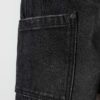 Jean 100% coton recyclé effet usé. Ceinture élastique avec réglage intérieur. Deux poches plaquées sur le devant. Fermeture par boutons pression.