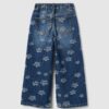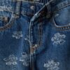 Jean fille bleu pur coton coupe classique à fleurs