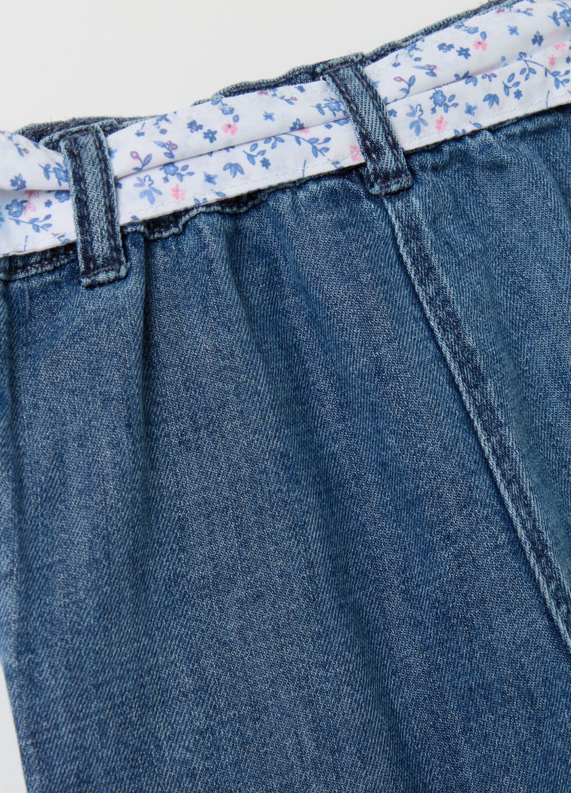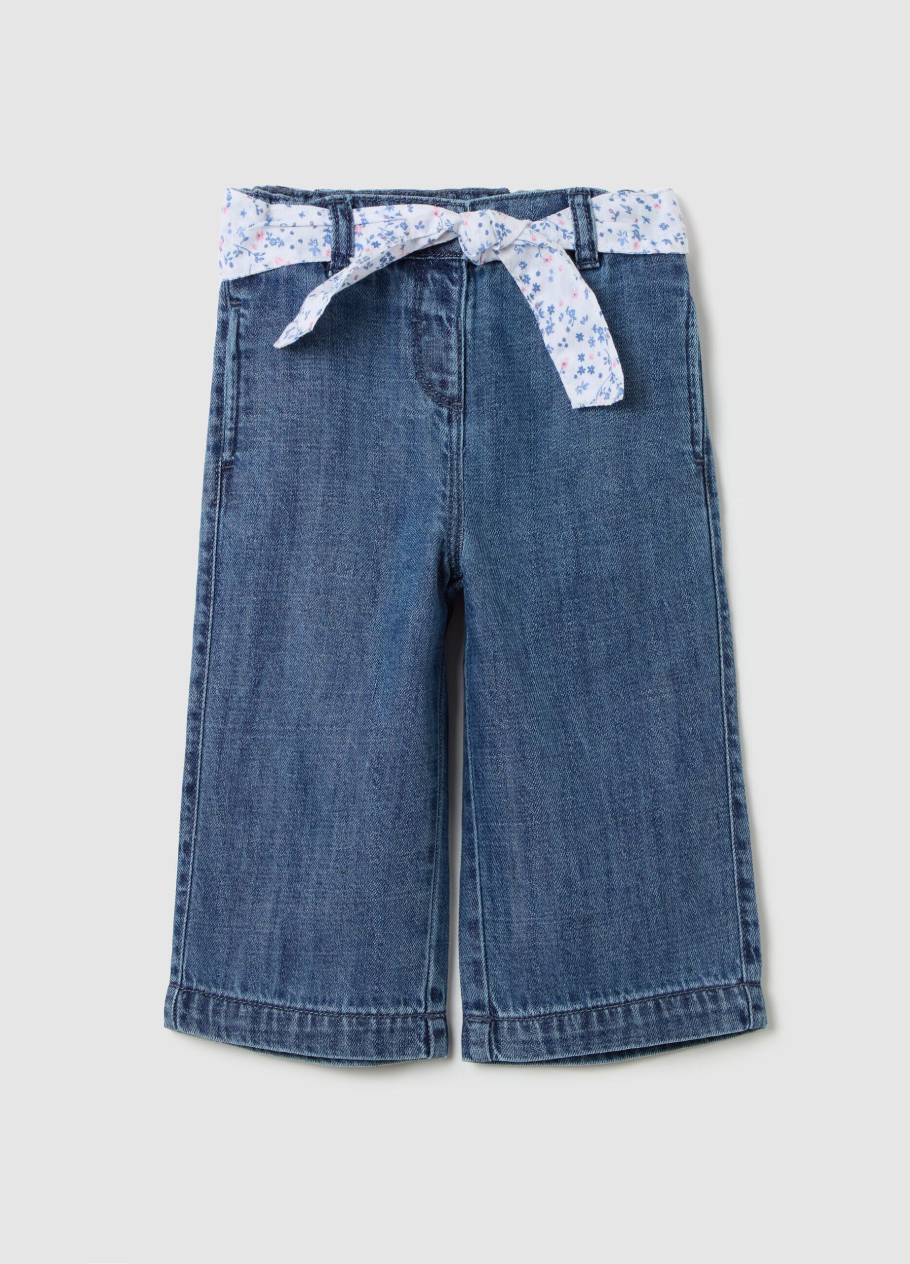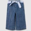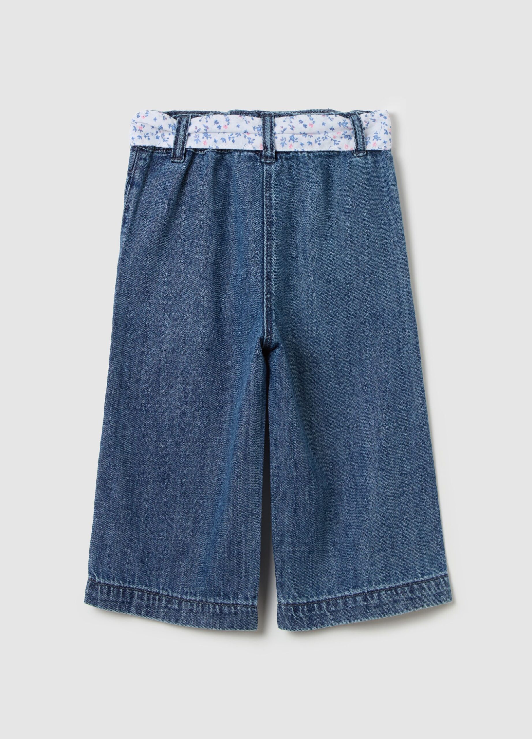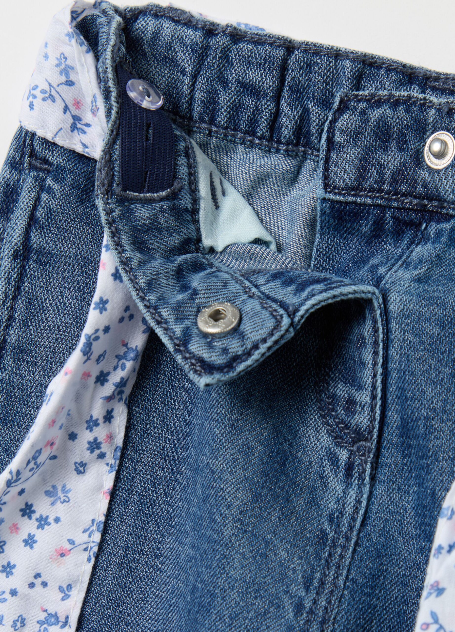 Jean large en coton, viscose et Lyocell. Taille élastiquée réglable intérieurement avec ceinture à motif floral. Deux poches verticales. Fermeture par bouton pression.