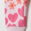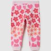 Joggeurs en molleton en molleton en coton extensible avec cordon. Les coeurs et les fleurs entièrement imprimés. Garnitures tricotées.
