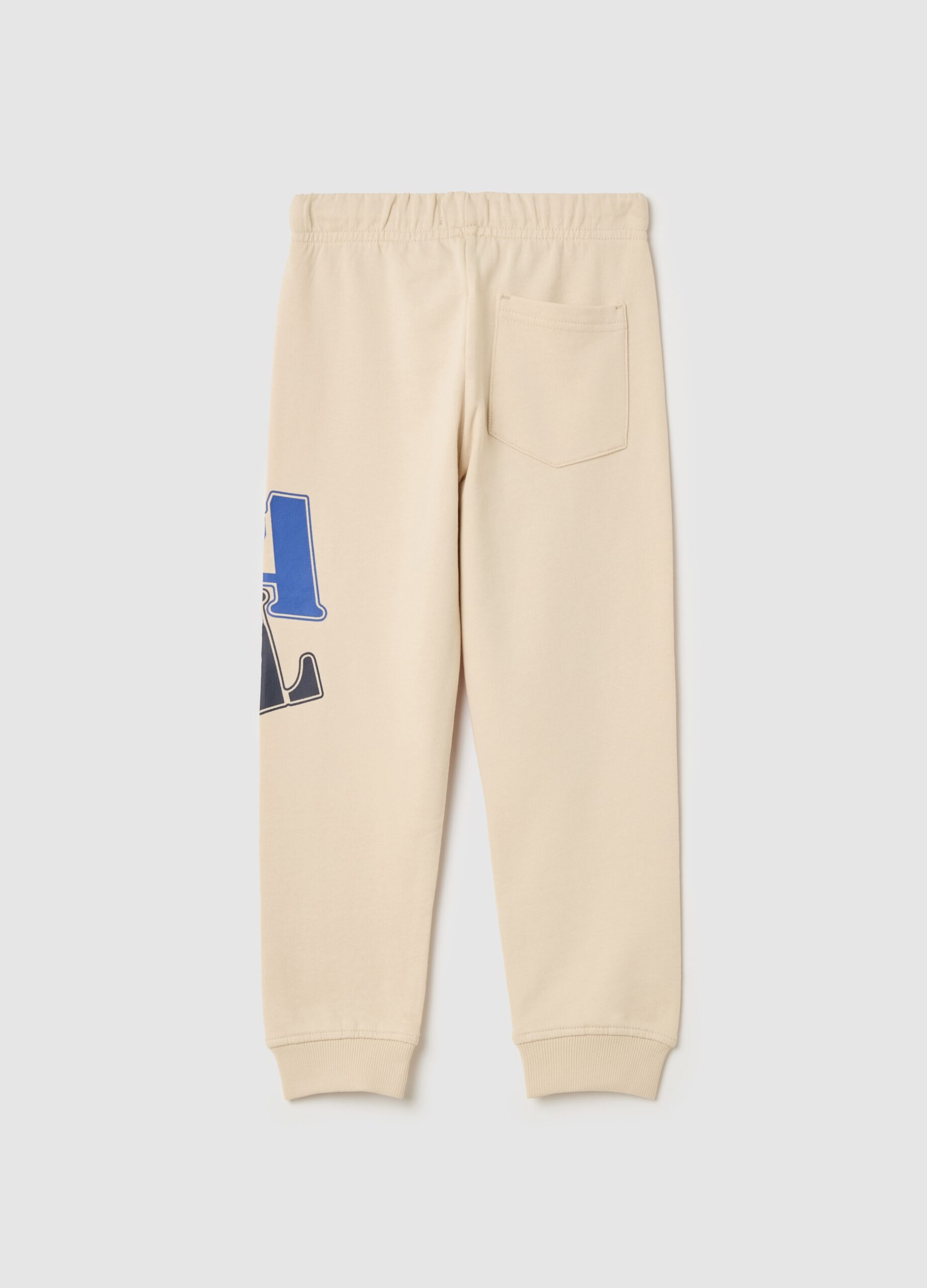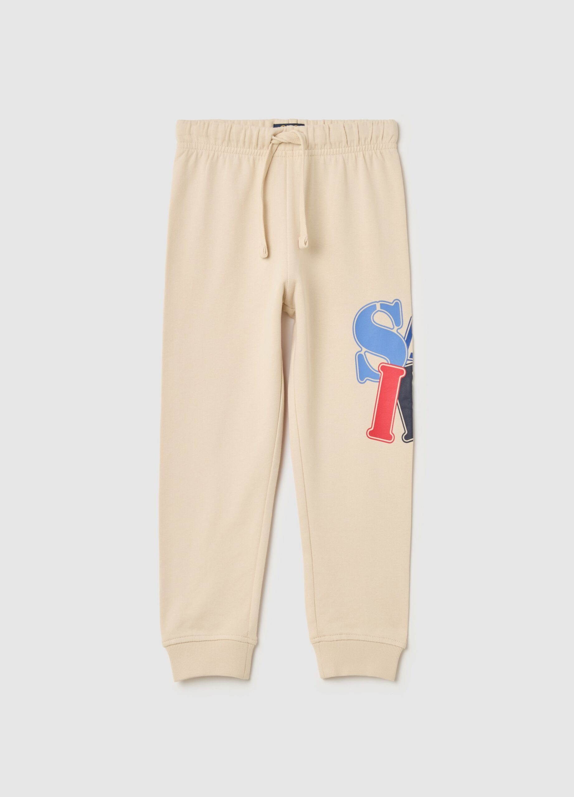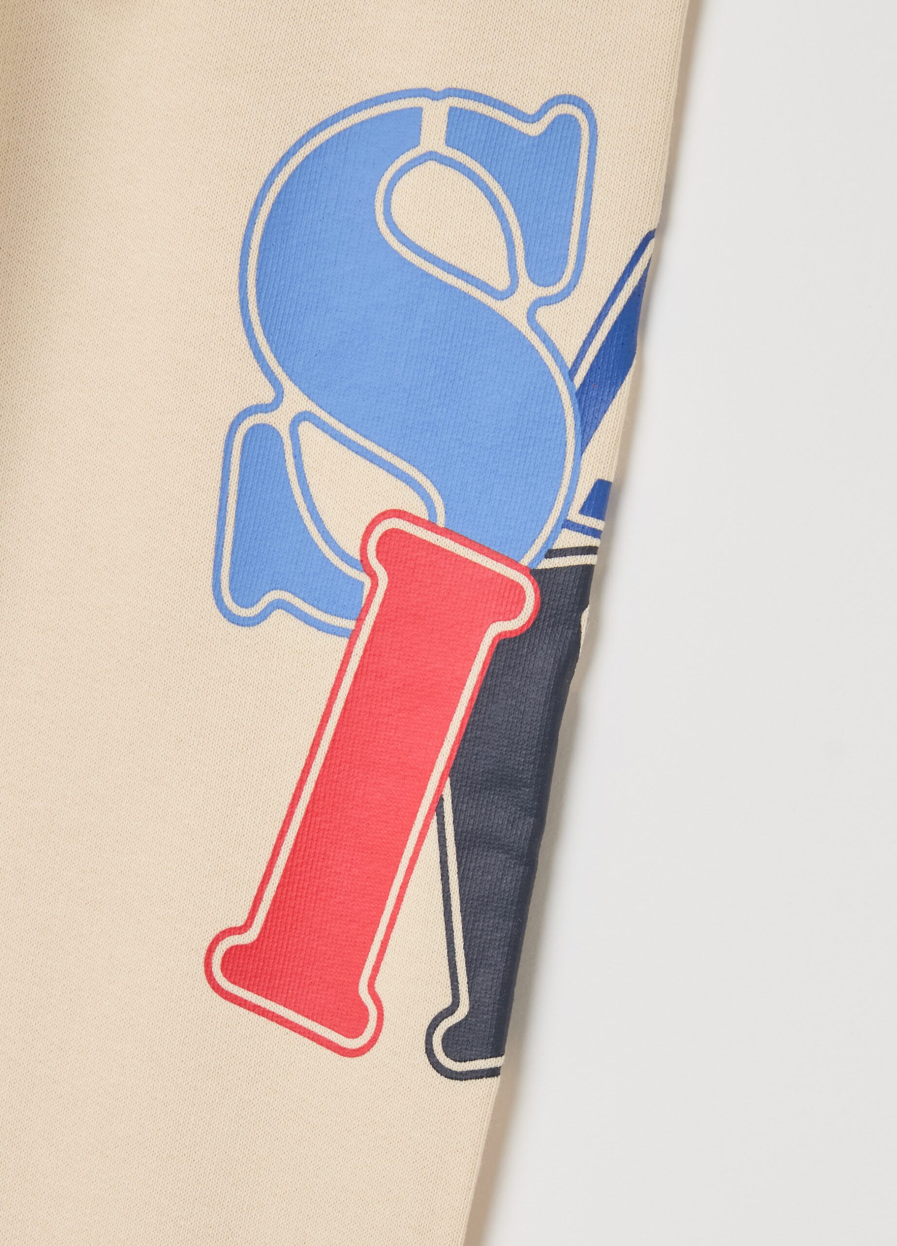 Pantalon de jogging en toison 100% coton avec cordon de ruban adhésif. «Voile» multicolore imprimé sur le côté. Une poche de patch arrière. Poignons à la cheville tricotée.