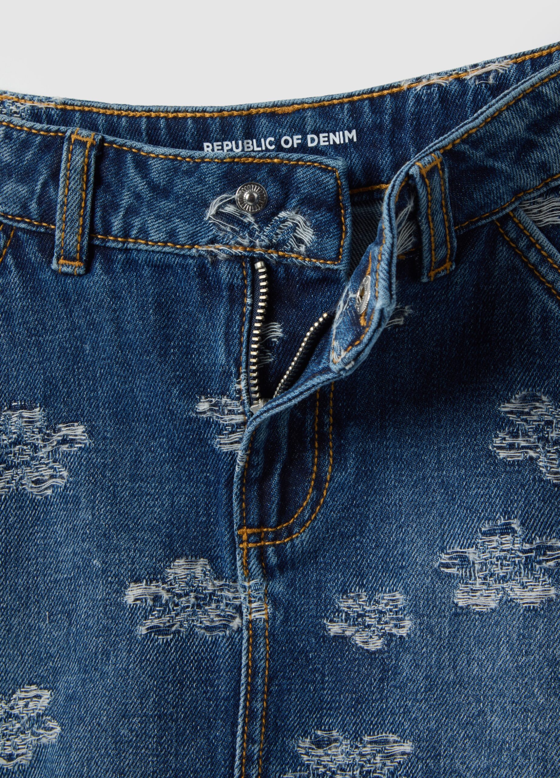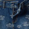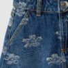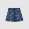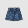 Jupe fille en denim bleu pur coton à imprimés fleuris, coupe classique