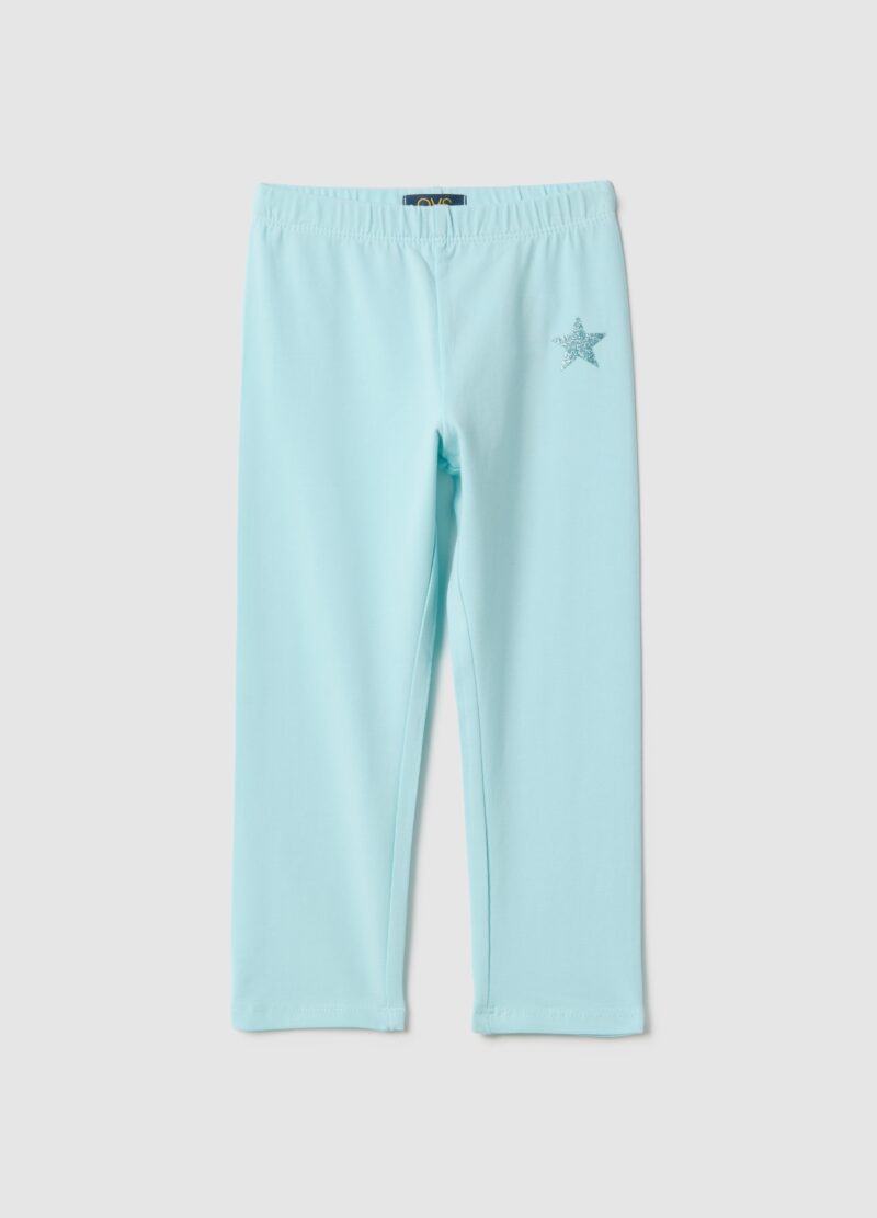 Legging fille coupe slim bleu en coton stretch avec étoile