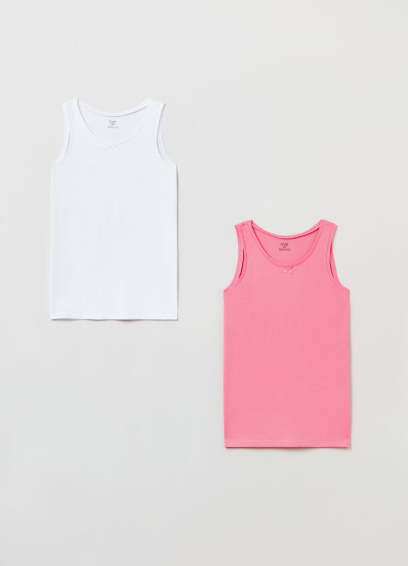 Lot de deux sous-gilets en 100% coton. Col rond avec noeud.