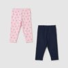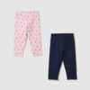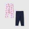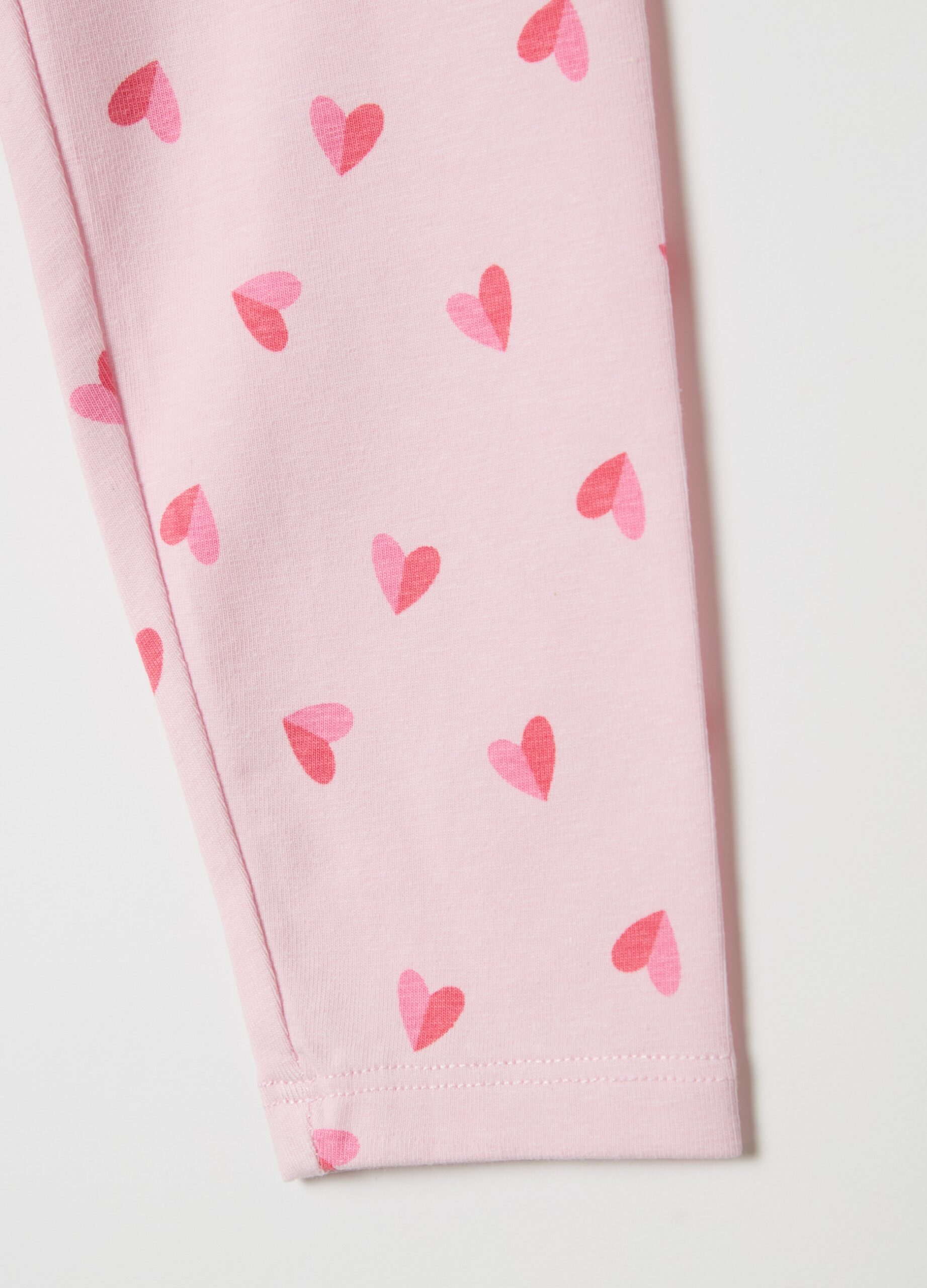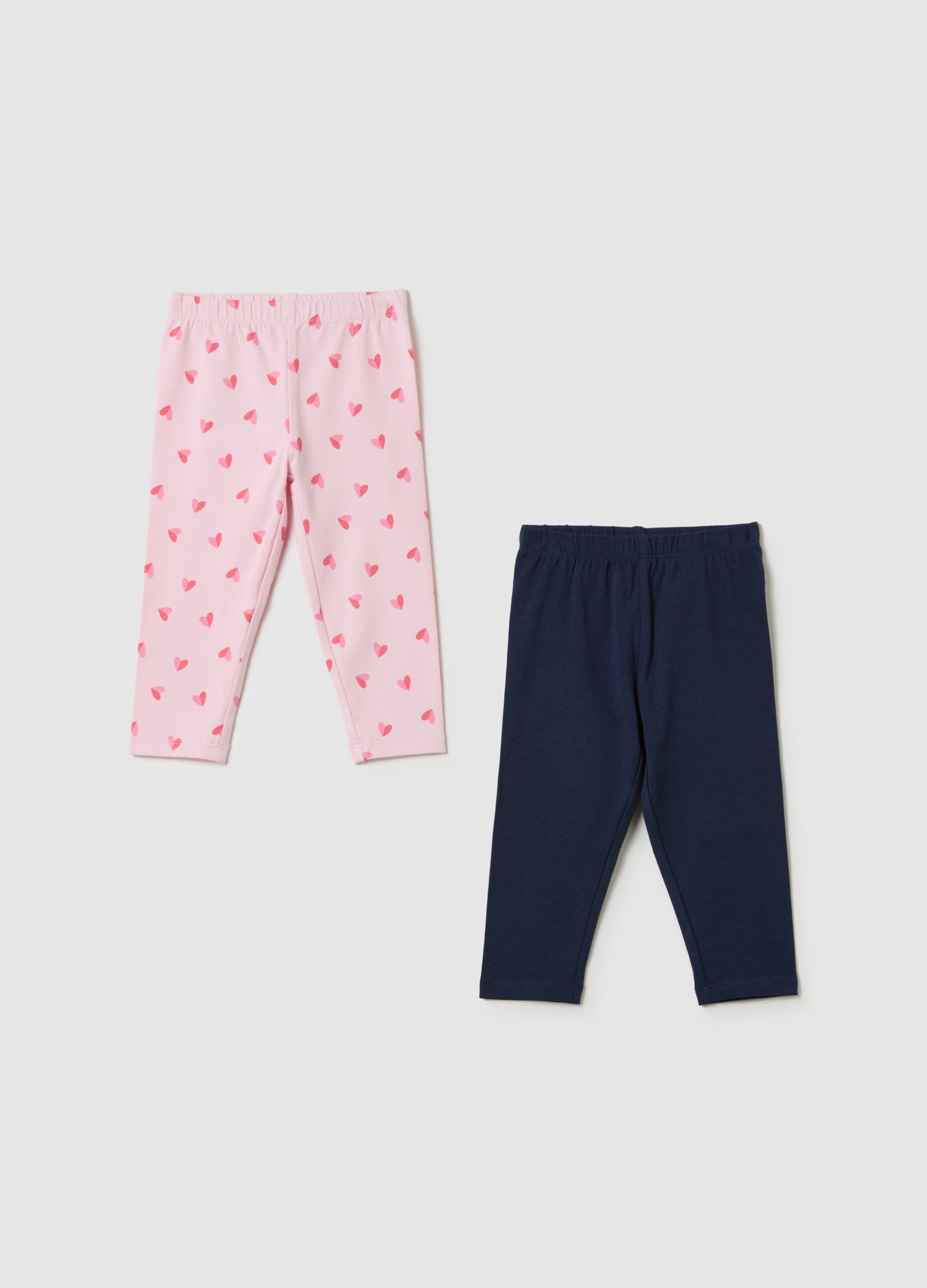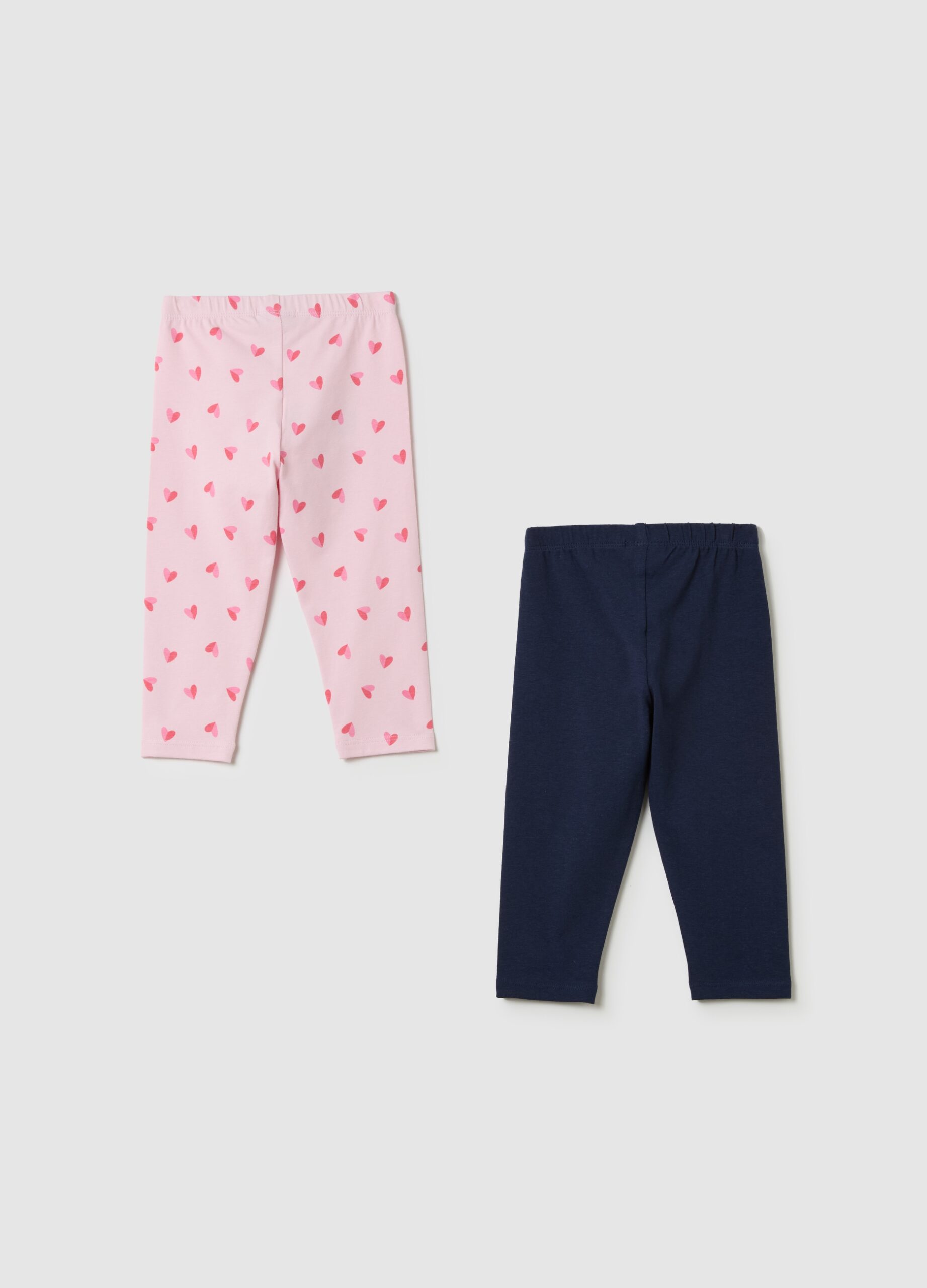 Lot de deux leggings en coton stretch. Taille élastiquée. Une paire avec imprimé cœurs all-over et une paire unie.