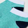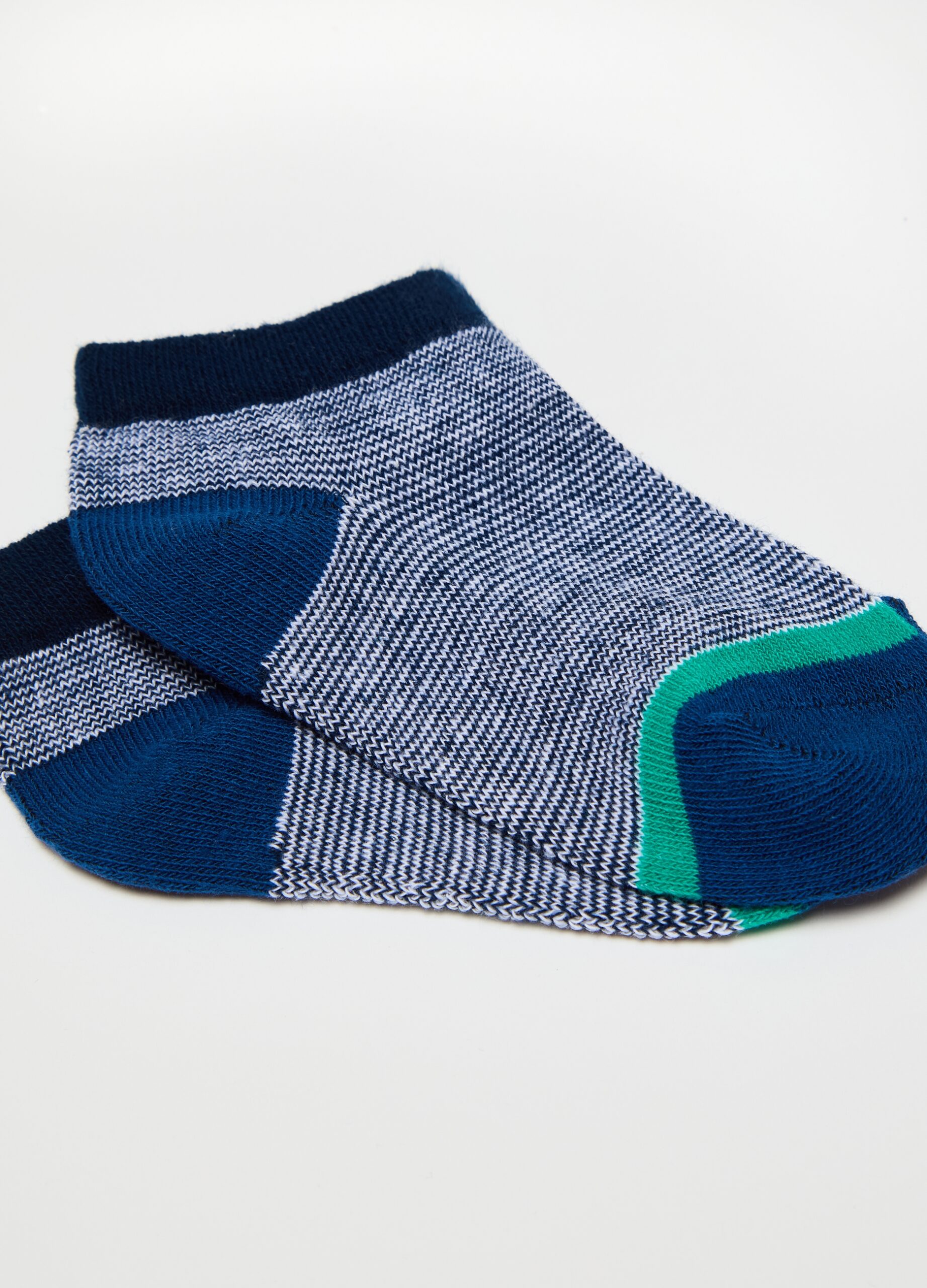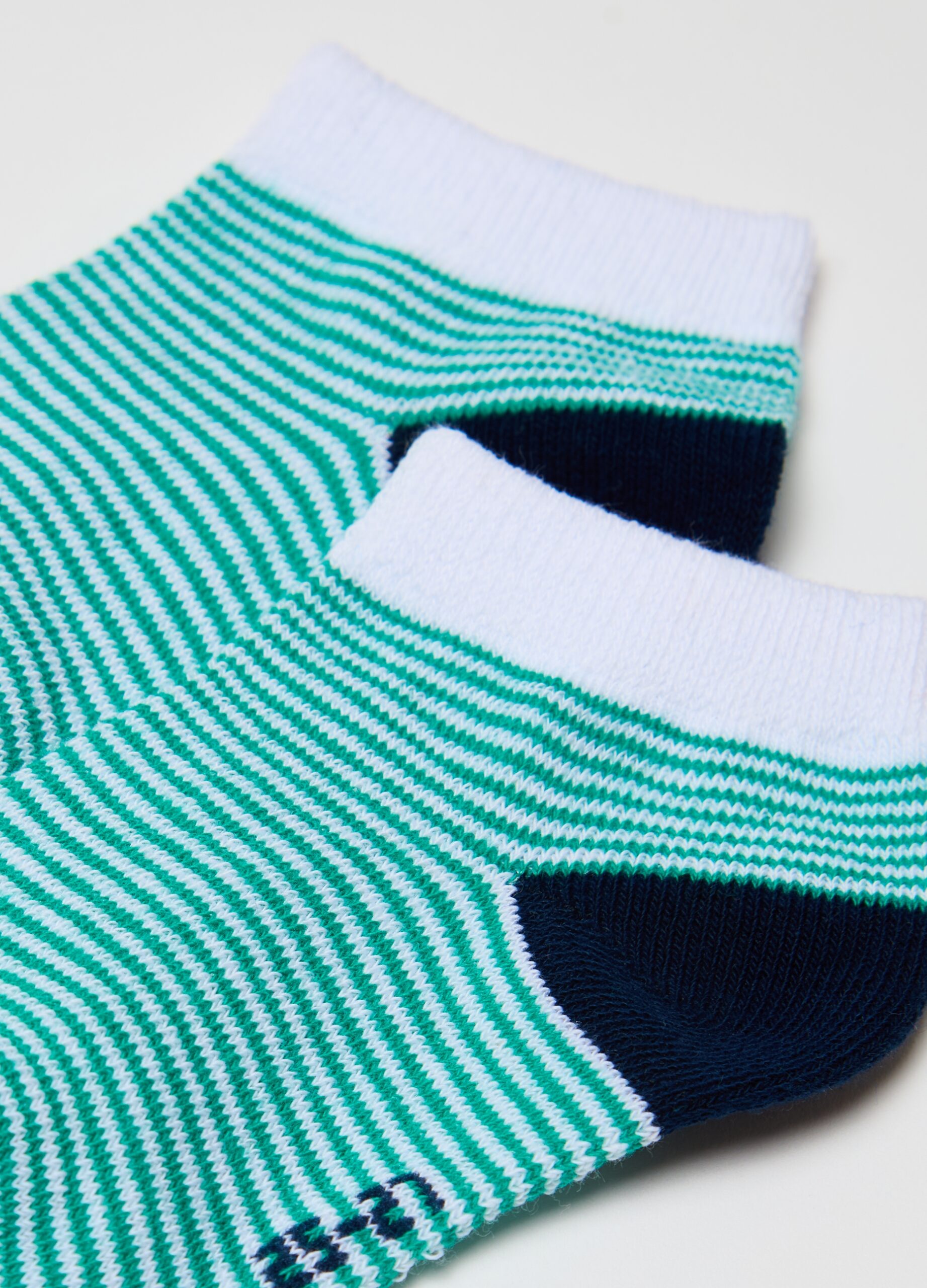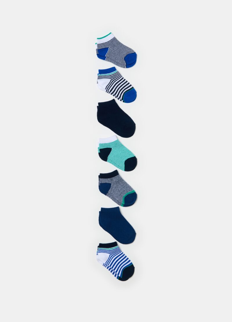 Lot de sept paires de chaussettes courtes en coton biologique mélangé extensible. Cinq paires à motif rayé, deux paires de couleurs unies.