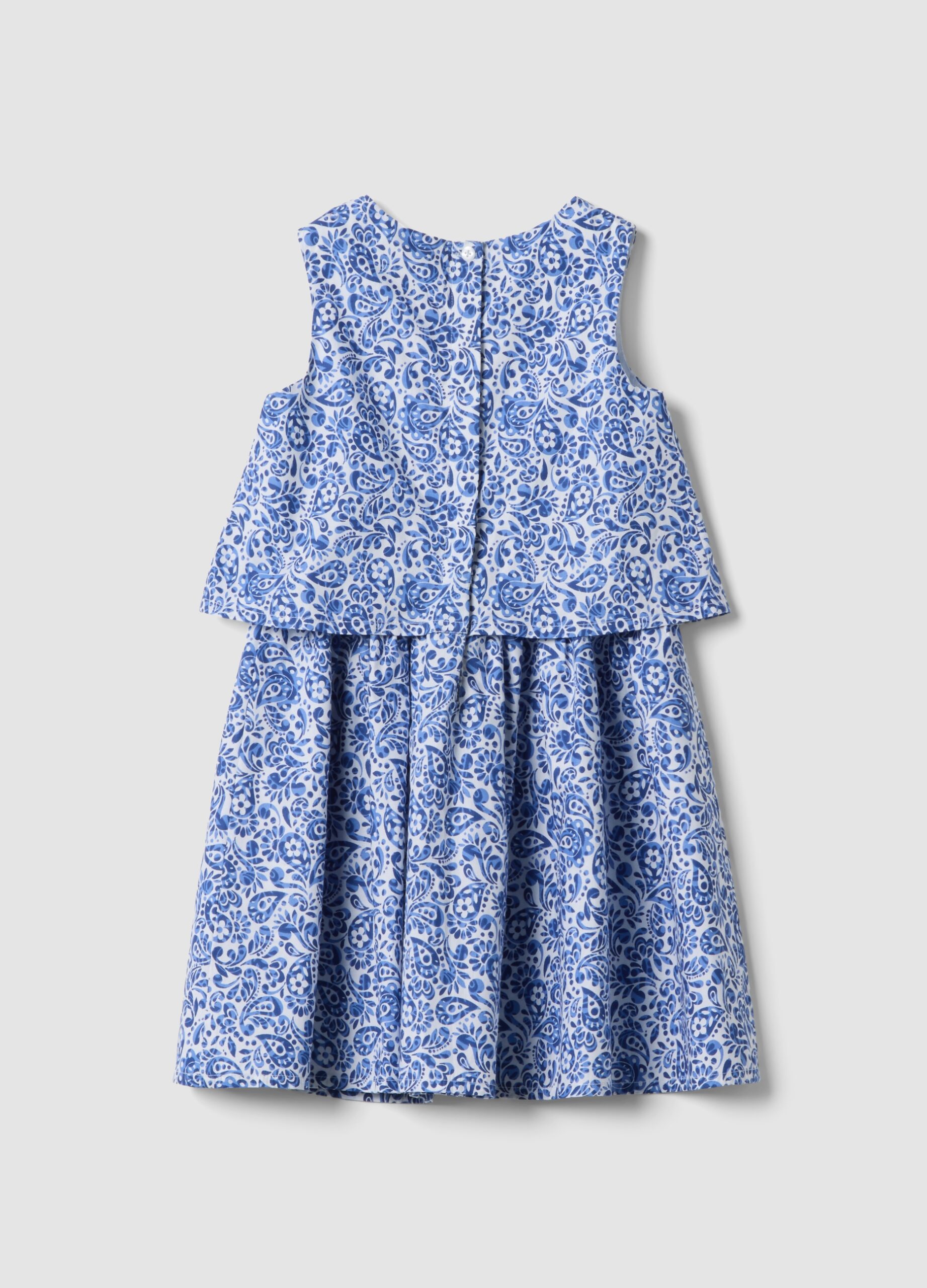 Robe bleue pour fille en pur coton de OVS KIDS, idéale pour les 3 à 10 ans. Coupe régulière à encolure ronde et design sans manches, dotée d’une jupe ample et d’un volant superposé qui ajoute du mouvement. Le motif floral all-over dans les tons bleus et blancs apporte une touche vive et raffinée. Entièrement doublé pour plus de confort, avec une fermeture zippée au dos pour un habillage facile.