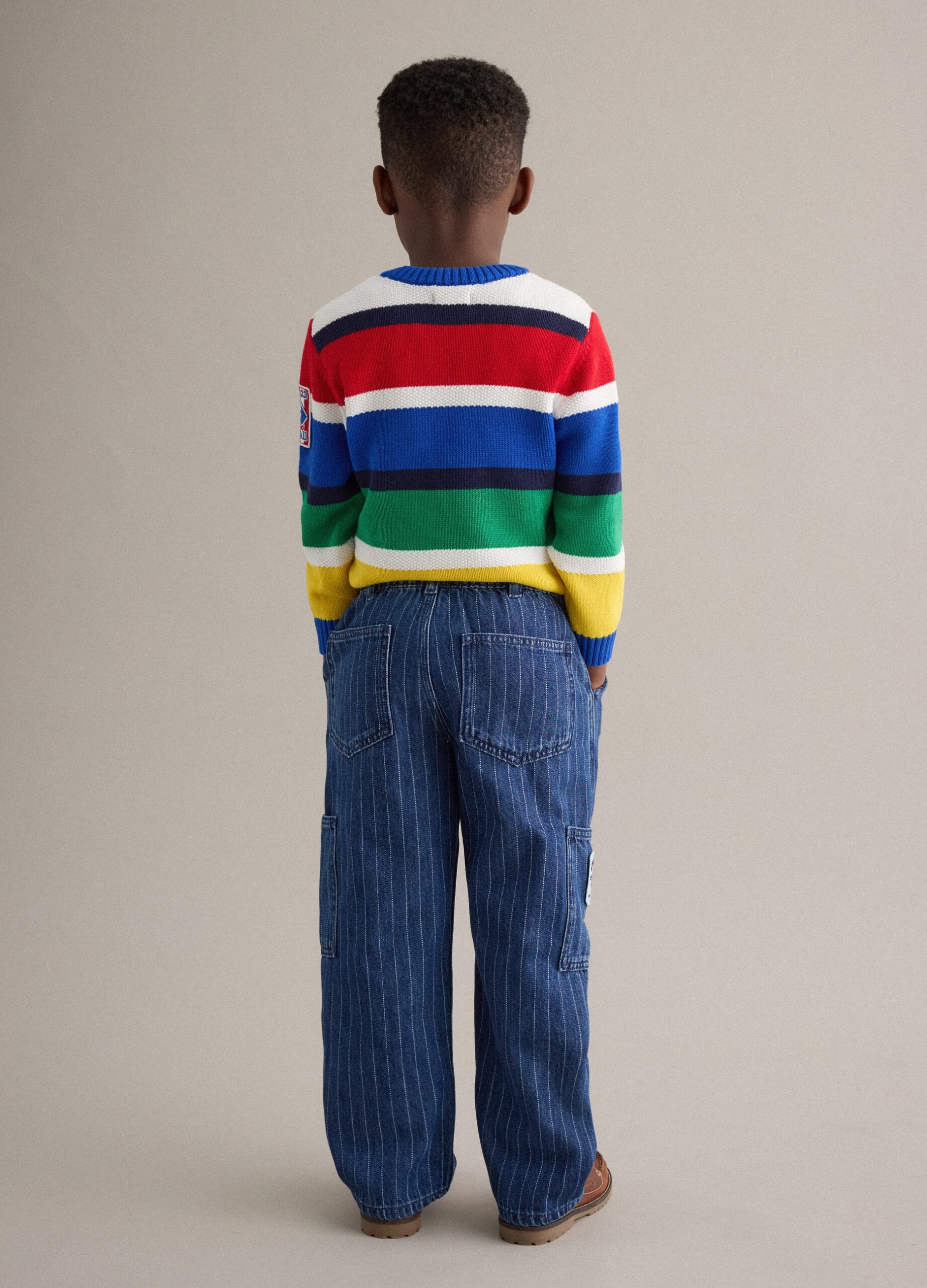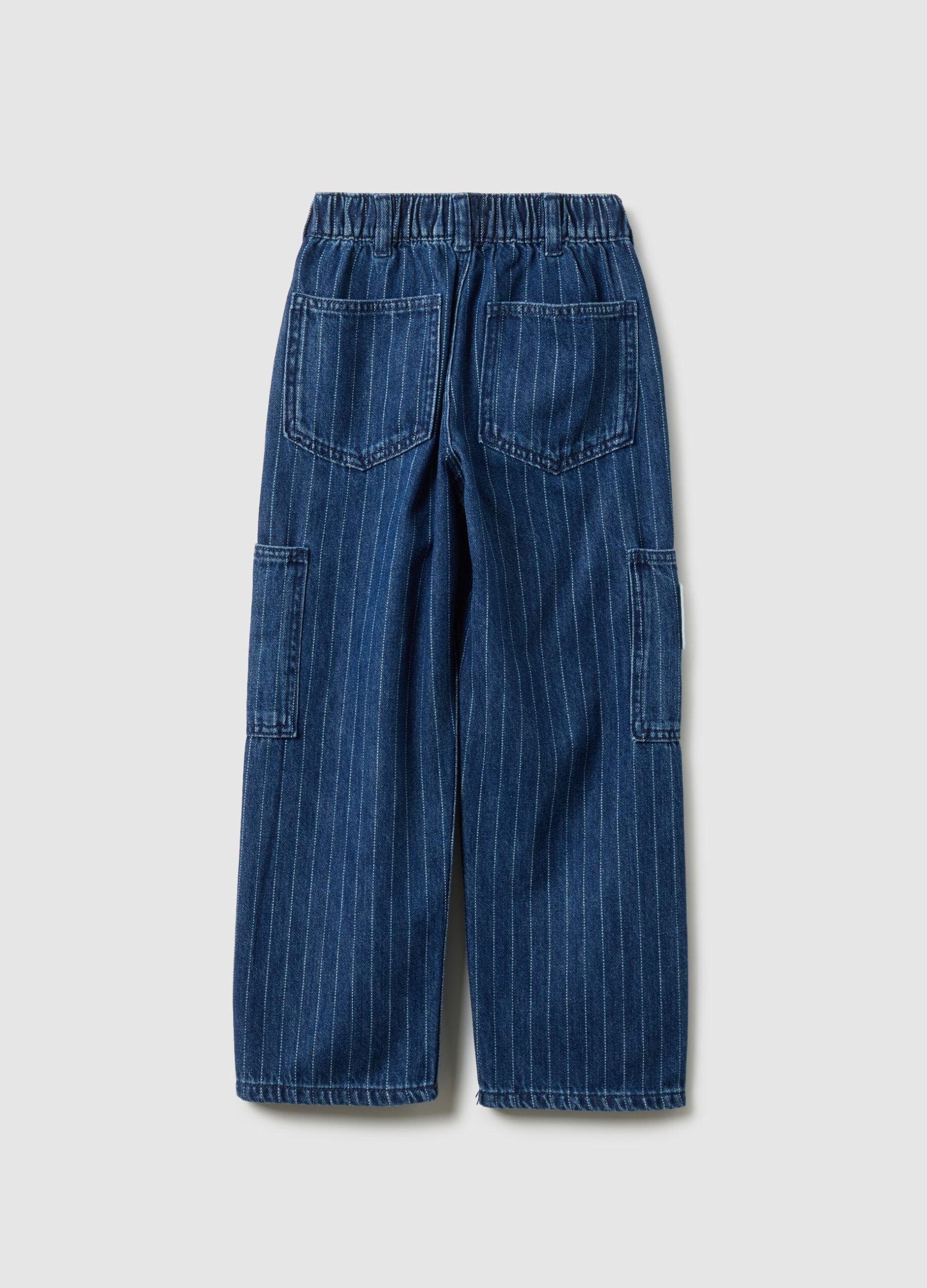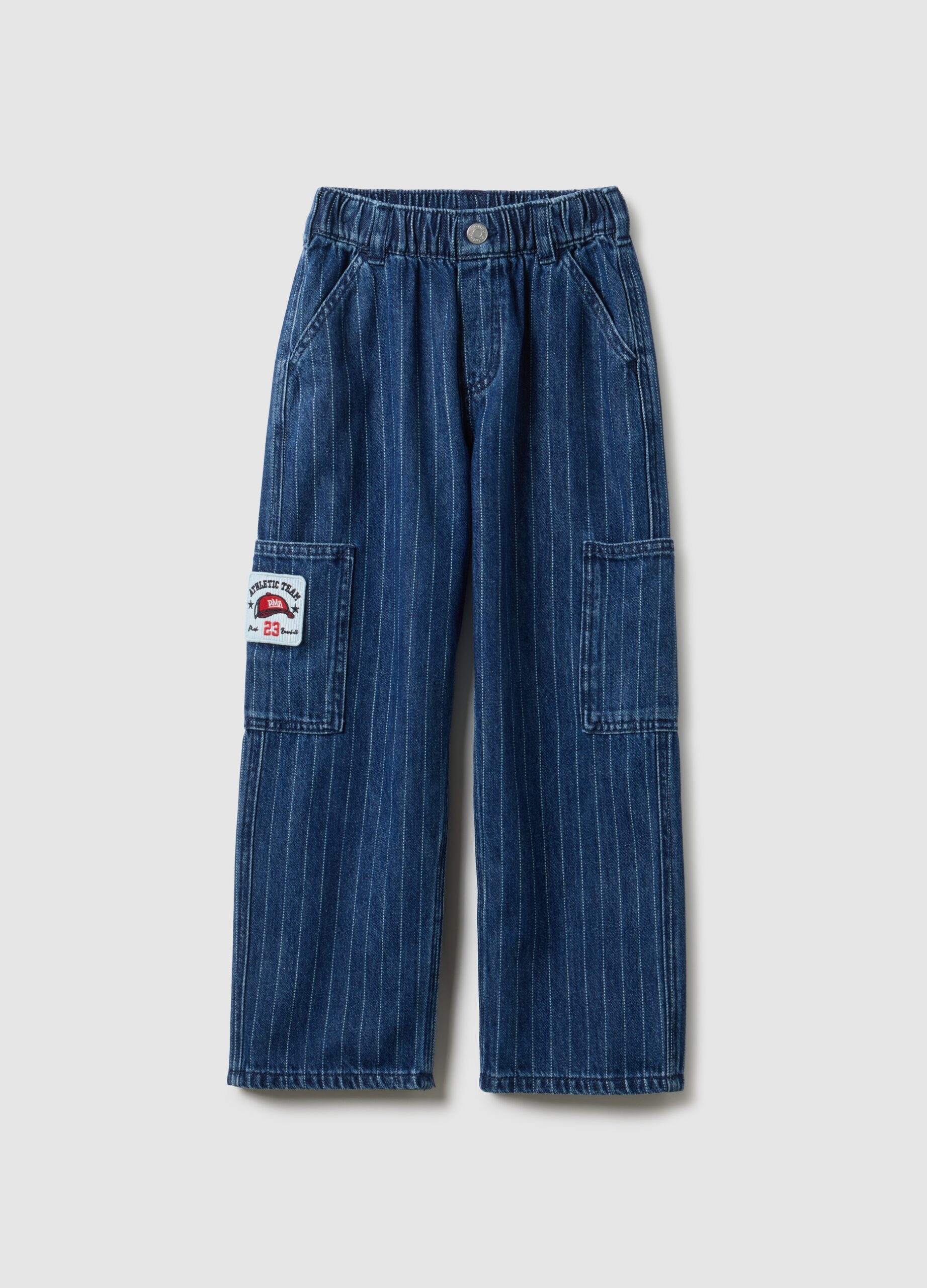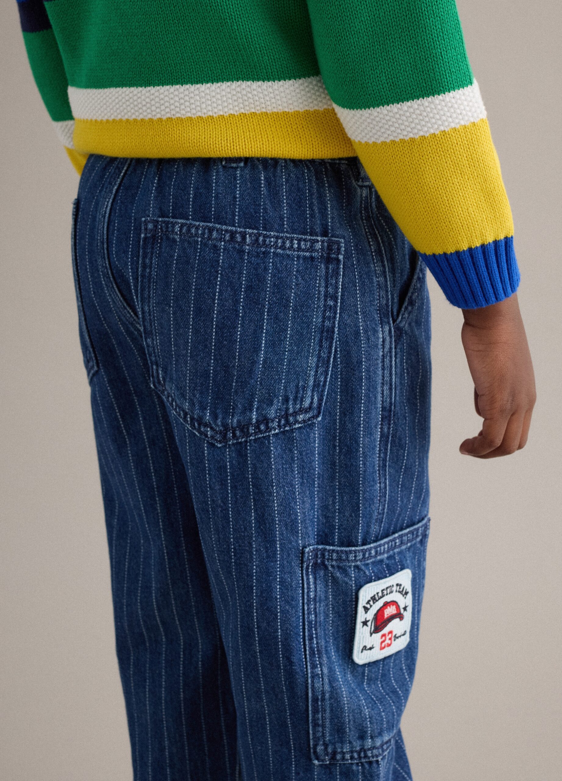 Pantalon cargo enfant coupe décontractée à rayures bleues en coton mélangé