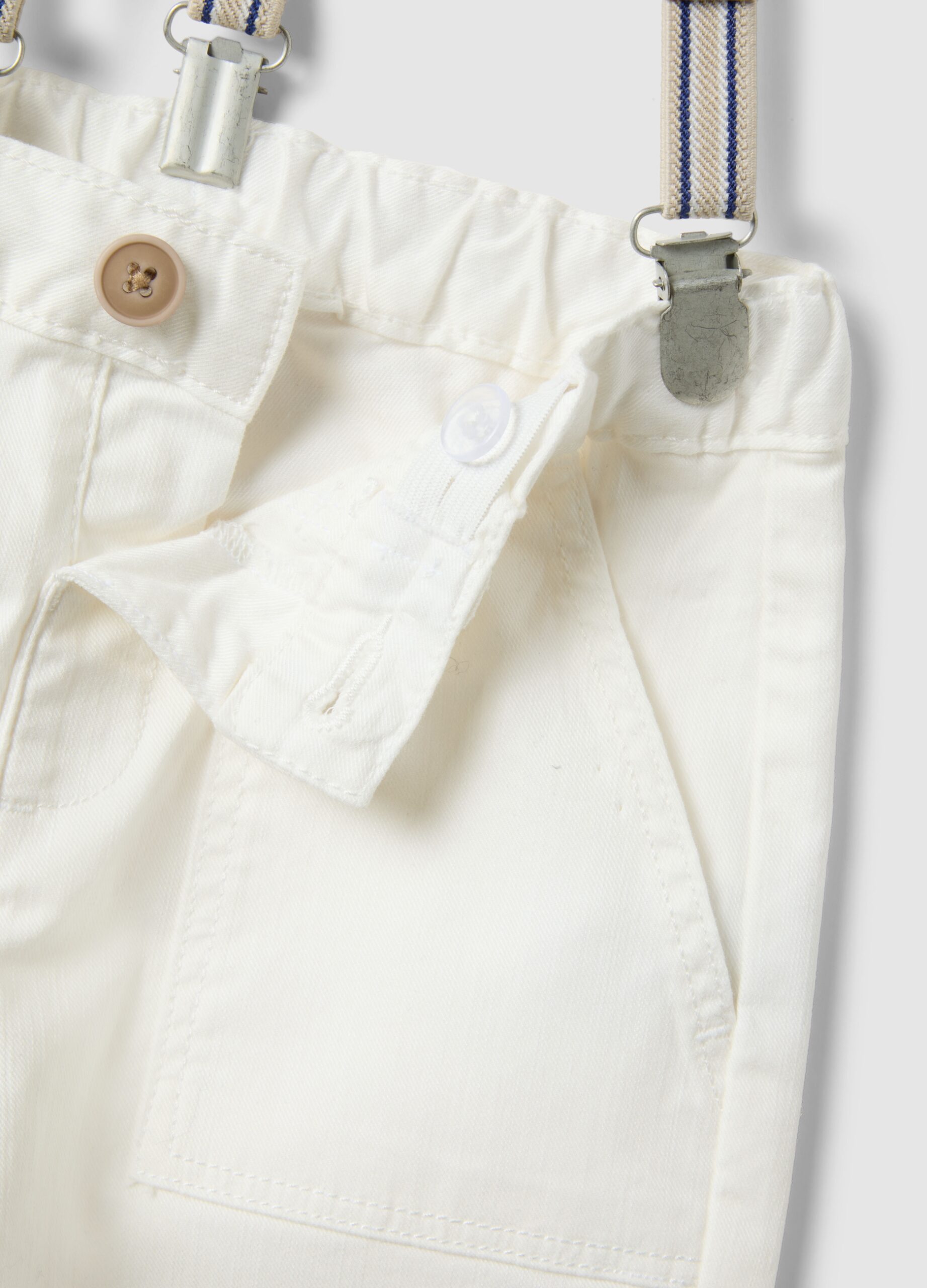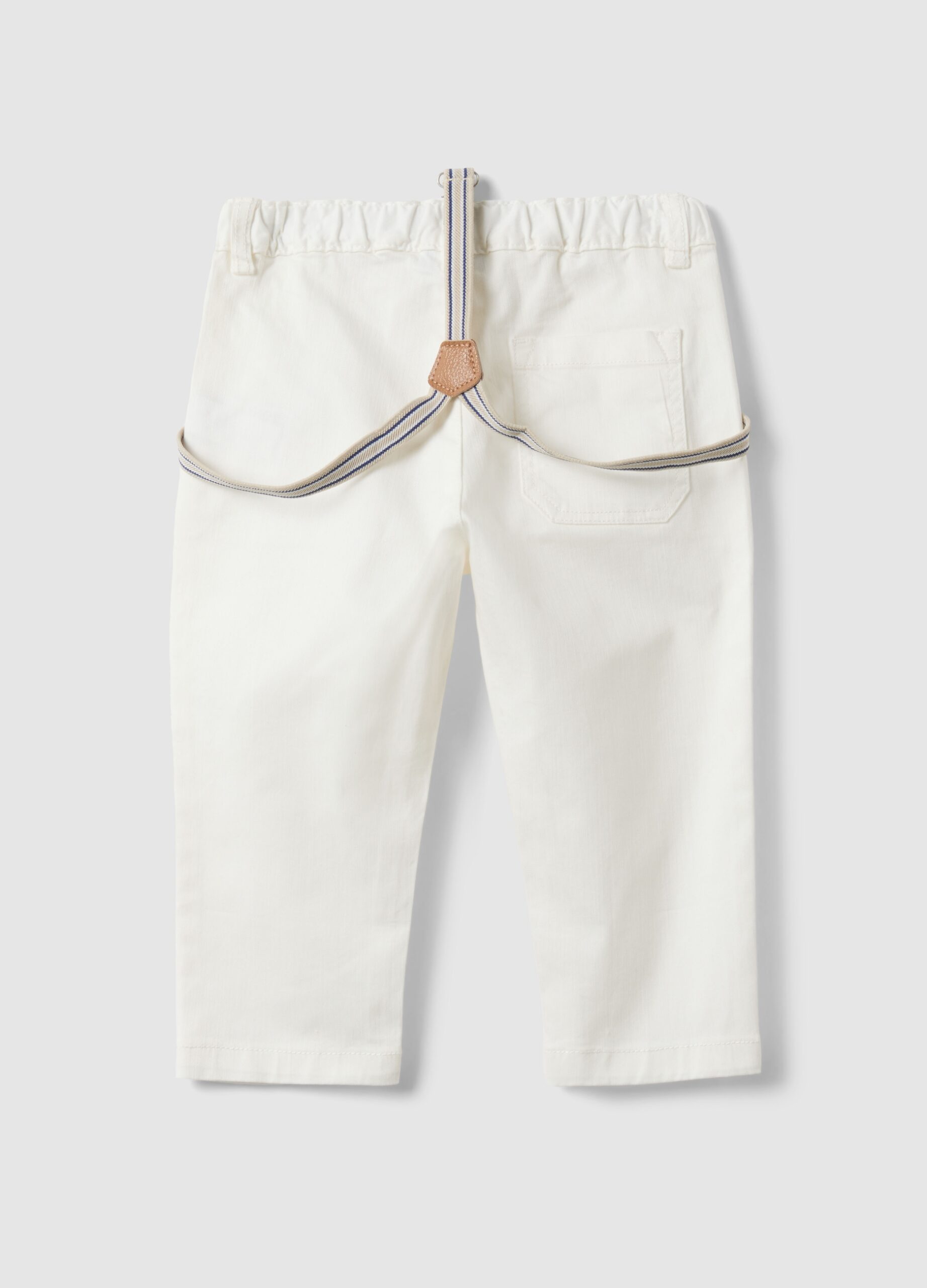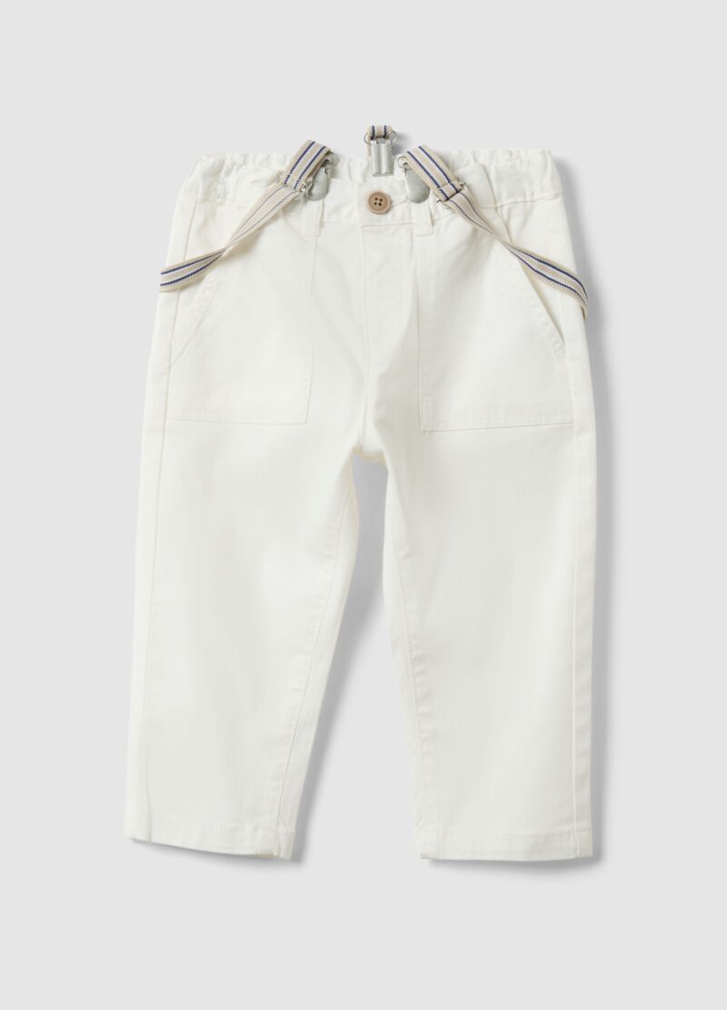 Le pantalon blanc de la ligne Fagottino est destiné aux enfants âgés de 9 à 36 mois. Confectionné en coton extensible, il offre confort et liberté de mouvement. Équipés d’une taille réglable et de bretelles pratiques, ils sont idéaux pour toutes les occasions, ajoutant une touche de style à n’importe quelle tenue.