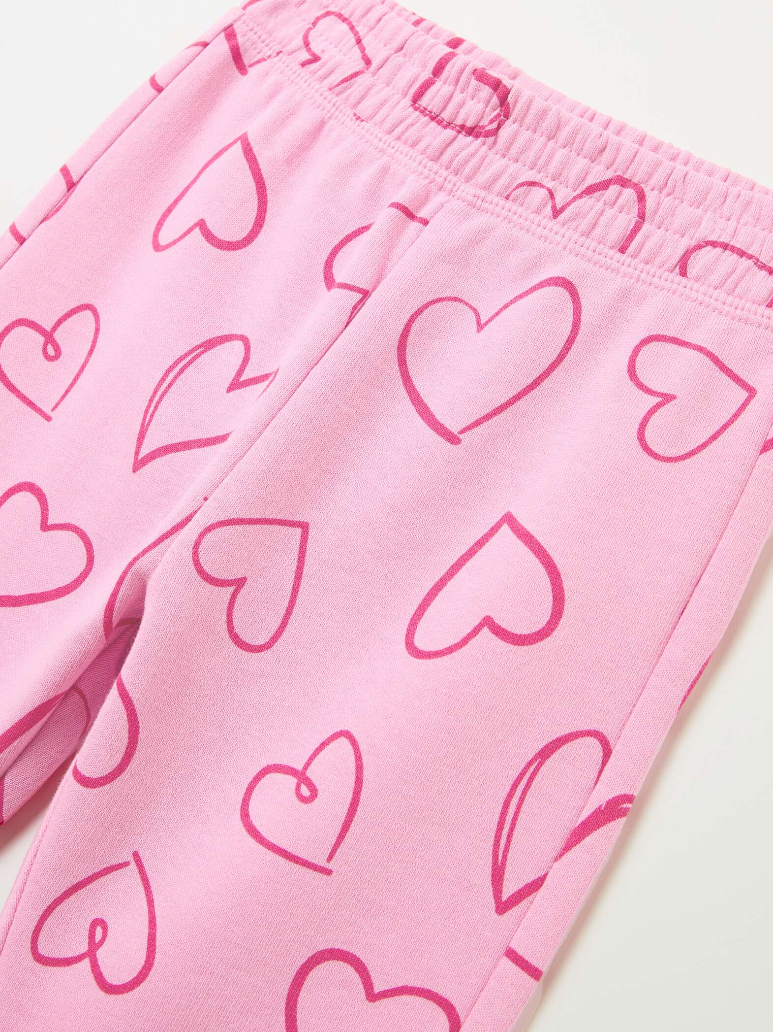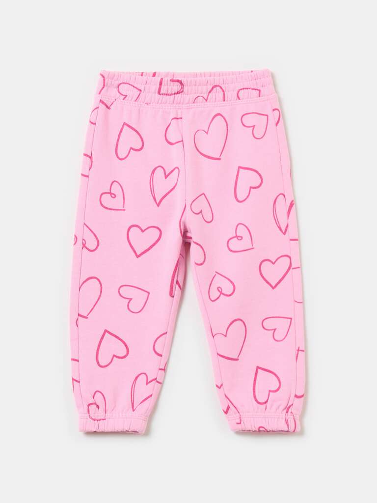 Pantalon de jogging en molleton 100% coton. Bords élastiqués. Imprimé coeurs all-over.