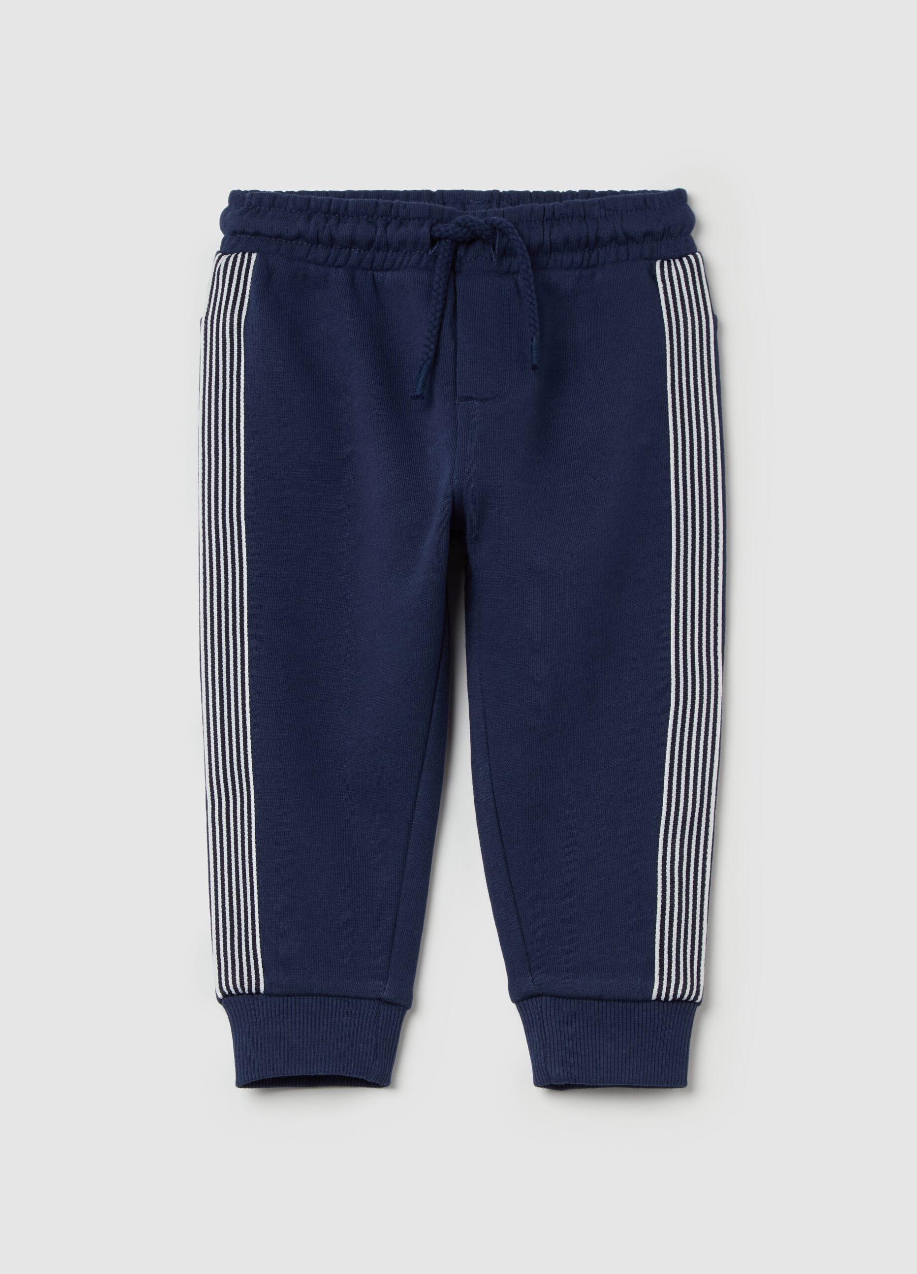 Pantalon de jogging en mélange de viscose et de coton avec cordon de serrage. Empiècements à motif rayé sur les côtés. Bords côtelés aux chevilles.