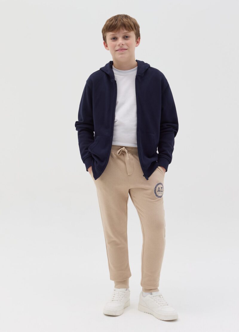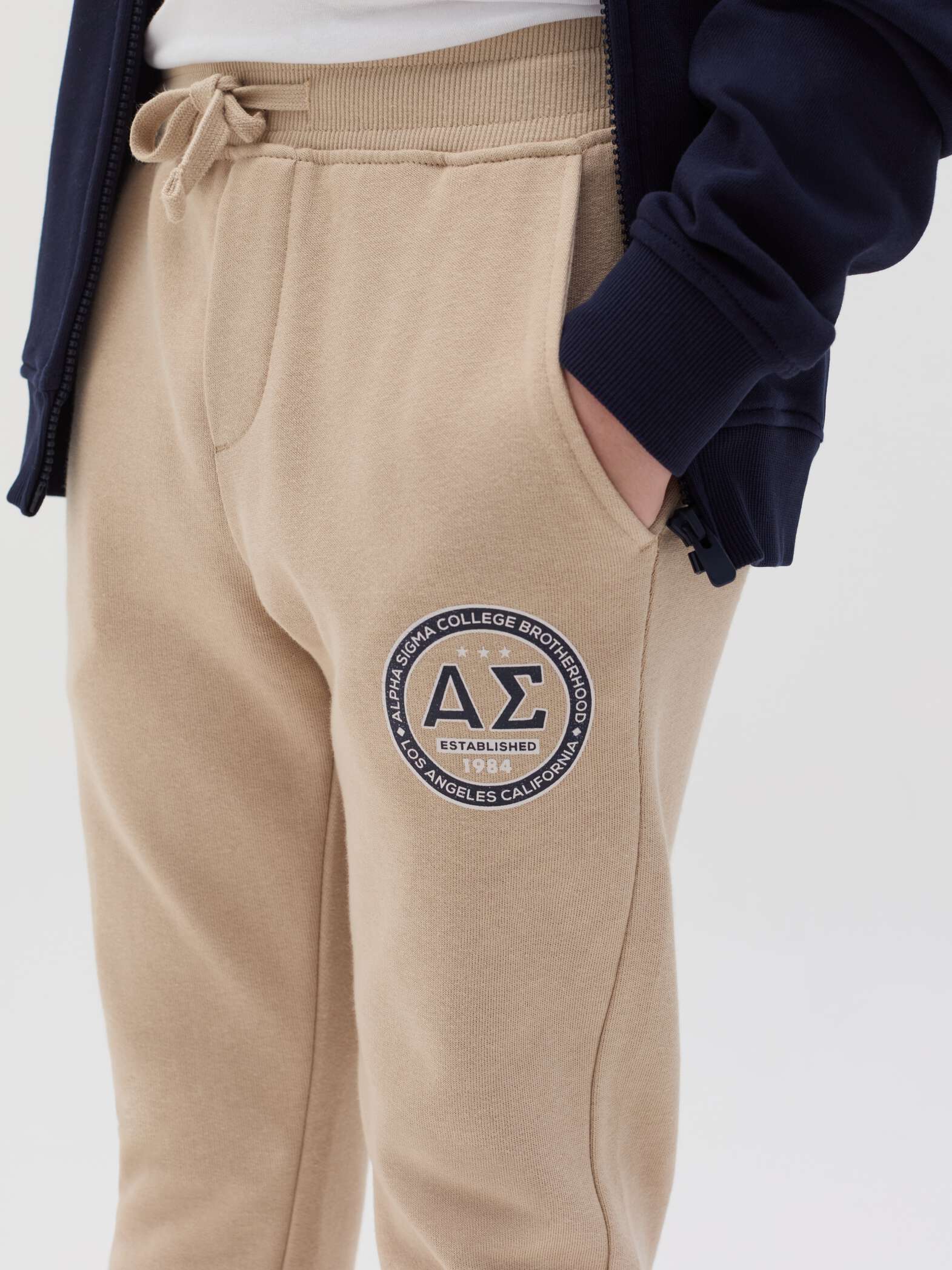 Pantalon de jogging en molleton 100% coton avec cordon de serrage en ruban. Deux poches italiennes et une poche plaquée au dos. Impression « Alpha Sigma College Brotherhood – Los Angeles California » sur le côté.