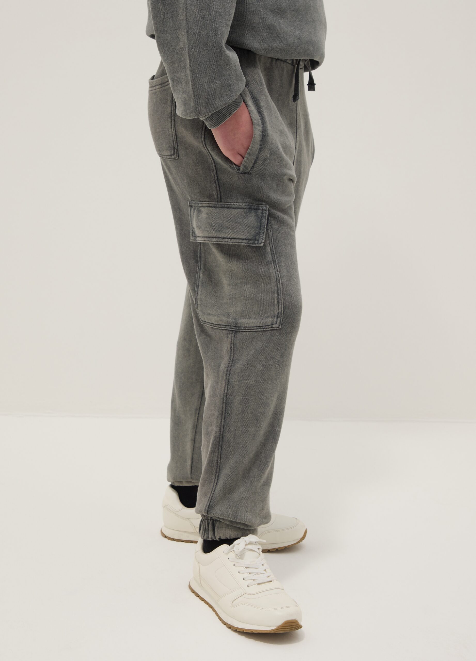 Le pantalon de survêtement cargo gris de la gamme ENFANT OVS est conçu pour les garçons âgés de 10 à 15 ans et est fabriqué à partir d’un mélange de coton pour assurer confort et durabilité. Elles sont dotées d’une taille élastiquée offrant un ajustement régulier, idéal pour un usage quotidien. Les poches cargo ajoutent non seulement de la praticité, mais aussi une touche de style, ce qui rend le pantalon de survêtement parfait pour ceux qui recherchent la fonctionnalité et le confort.