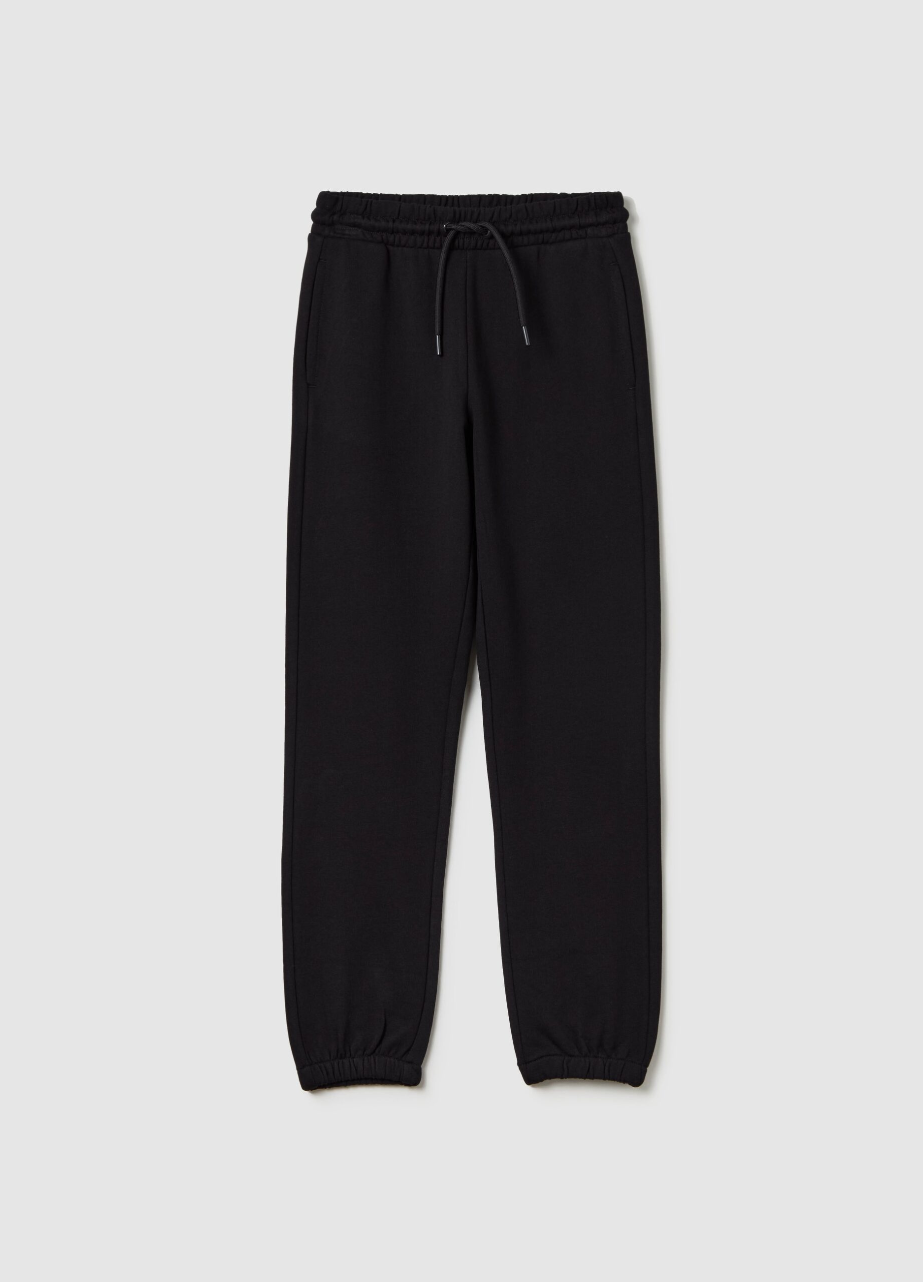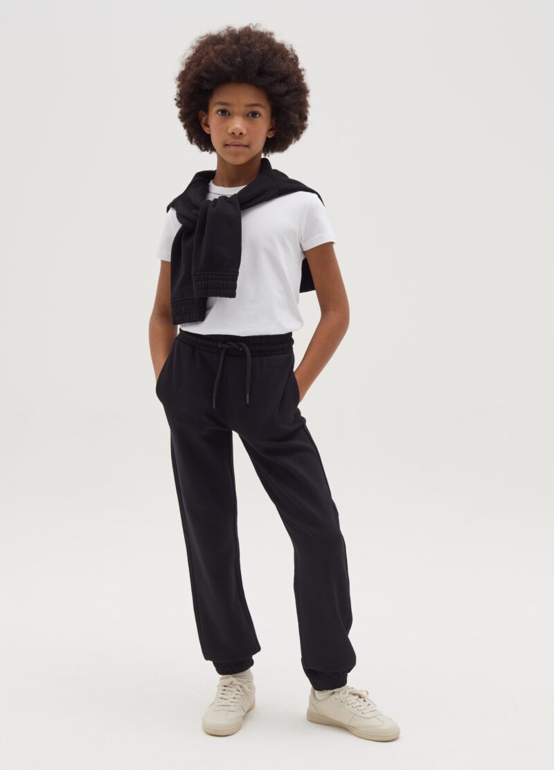 Pantalon de jogging essentiel en molleton 100% coton. Cordon de serrage à la taille. Deux poches verticales. Chevilles élastiquées.