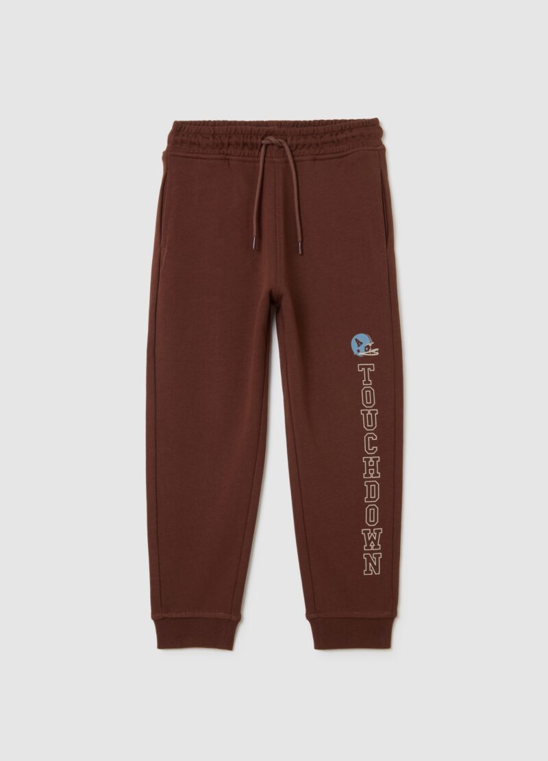 Ce jogging marron de la ligne OVS KIDS est confectionné en pur coton, parfait pour les enfants de 3 à 10 ans. Le tissu French Terry offre douceur et durabilité, tandis que la taille élastique assure un ajustement confortable. Parfaits pour un look décontracté, ils arborent le lettrage « Touchdown » sur le côté, ce qui les rend adaptés à toutes les occasions.