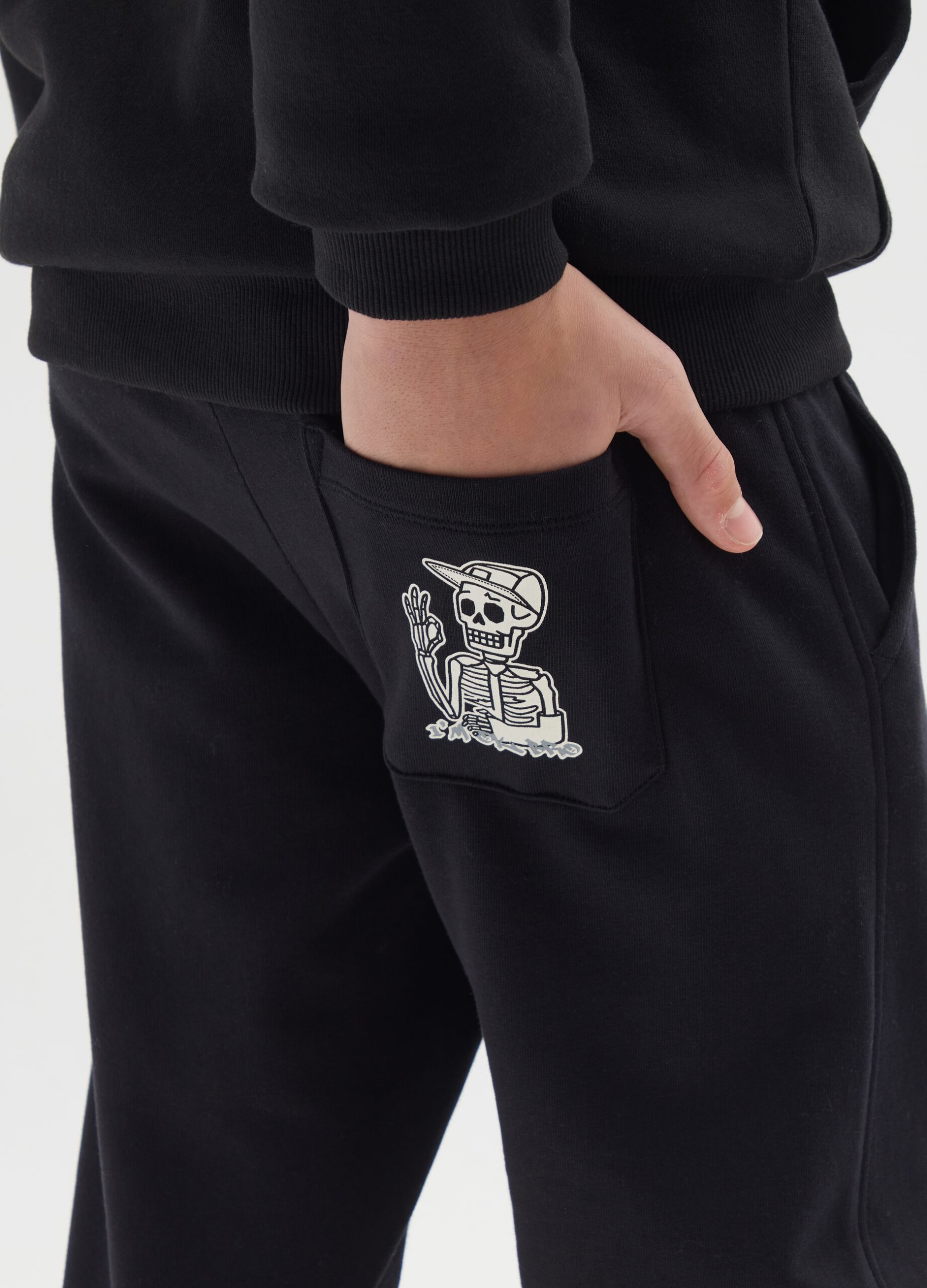 Le jogger noir de la ligne OVS KIDS est destiné aux garçons de 10 à 15 ans, idéal pour affronter les journées d’automne/hiver. Fabriqué en pur coton, il assure un confort maximal grâce à la taille élastiquée et à la coupe Regular Fit. Parfaits pour les activités quotidiennes, ils présentent un détail ludique à l’arrière qui ajoute de l’originalité.