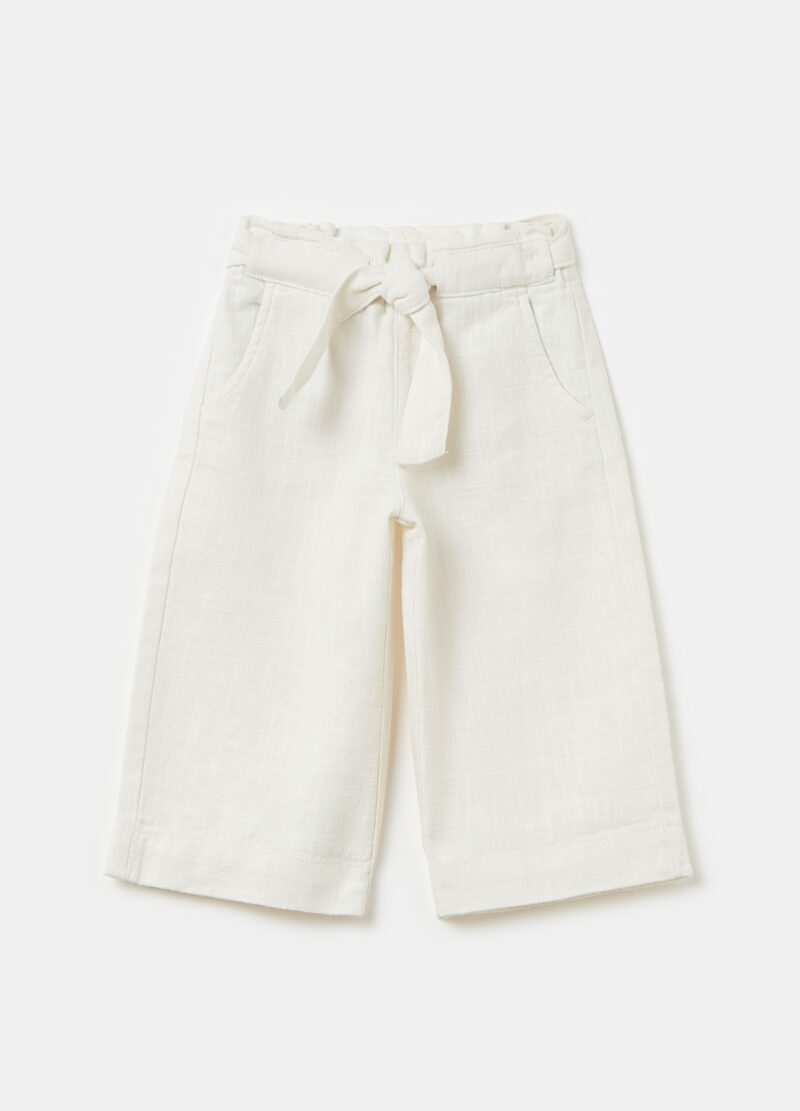Pantalon baggy en coton et ramie. Taille extensible avec cordon de serrage. Deux poches italiennes.