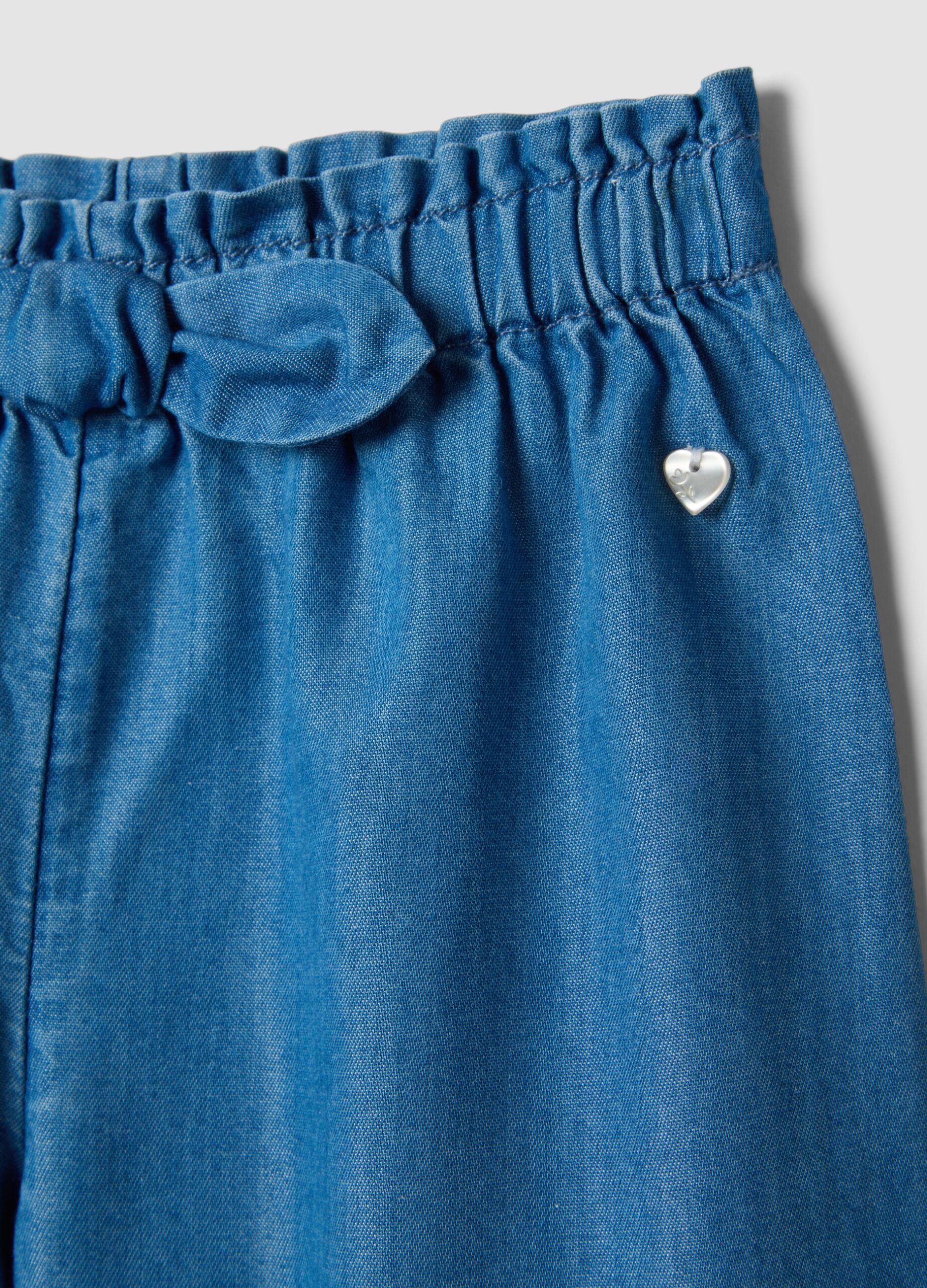 Le pantalon bleu denim en coton et lyocell mélangés de la ligne Fagottino est conçu pour les filles âgées de 9 à 36 mois, offrant confort et praticité. Doté d’une coupe large et d’un ourlet brodé de fleurs, il assure un ajustement confortable grâce à la taille réglable. Parfait pour jouer librement, ce pantalon est un excellent choix en toute occasion.