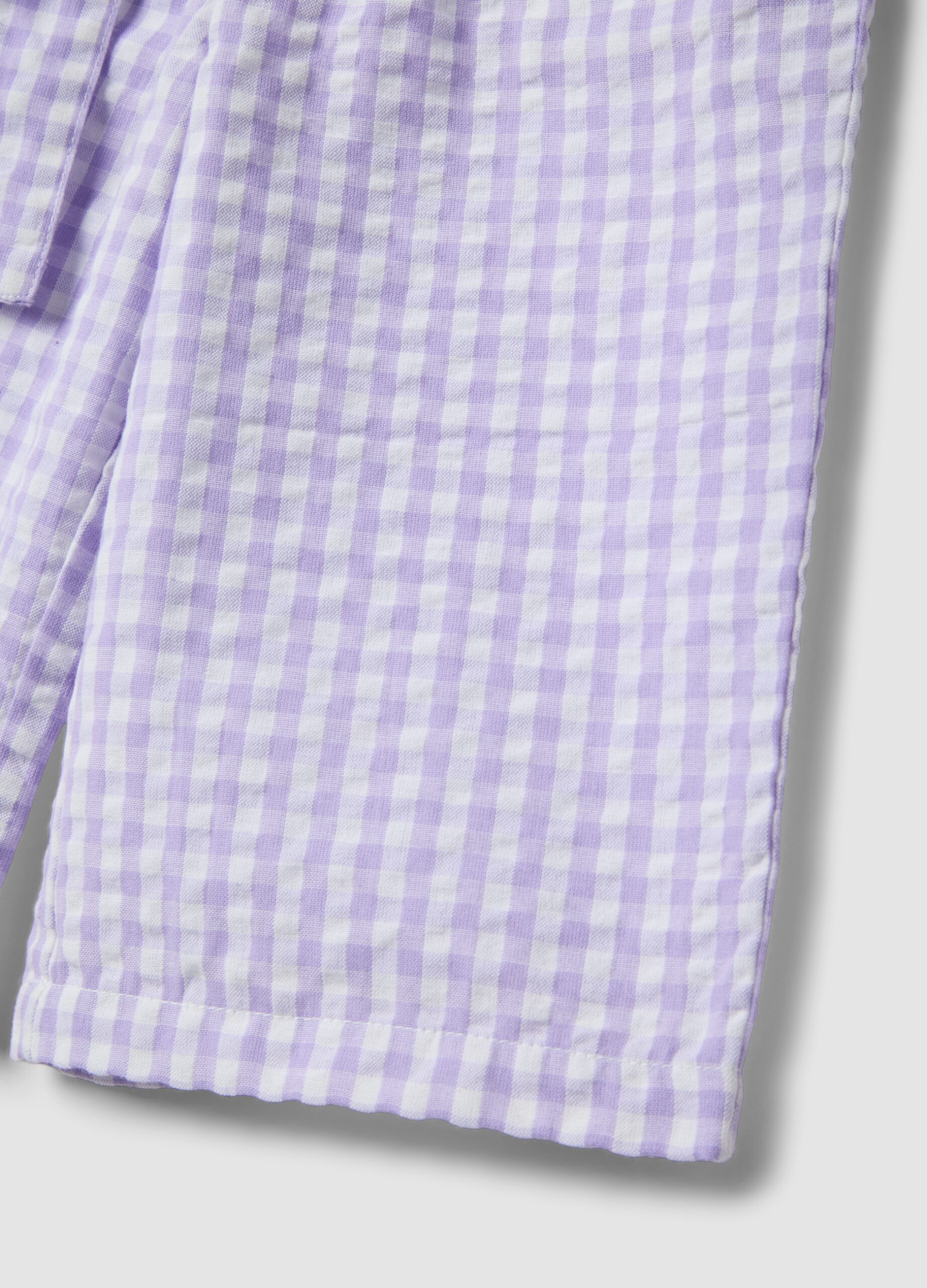 Ce pantalon à carreaux blanc et violet de la ligne Fagottino est confectionné en pur coton, conçu pour les filles âgées de 9 à 36 mois. Ils offrent une coupe large aux jambes et disposent d’une taille réglable pour une liberté de mouvement. Le tissu doux et respirant les rend idéaux pour toutes les occasions, offrant une pièce pratique et élégante pour la saison printemps-été.