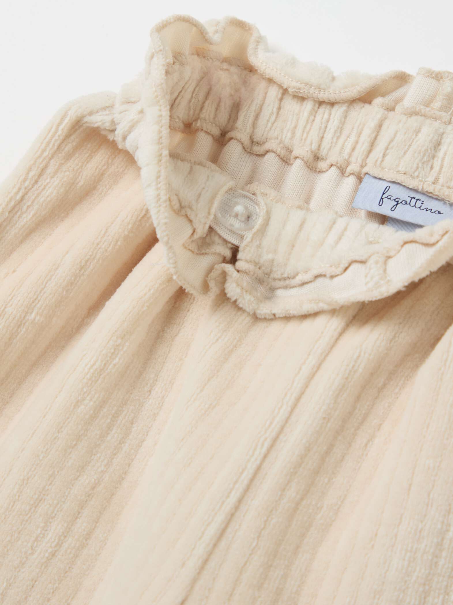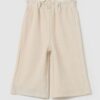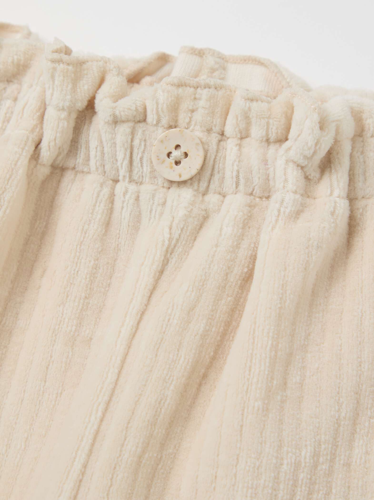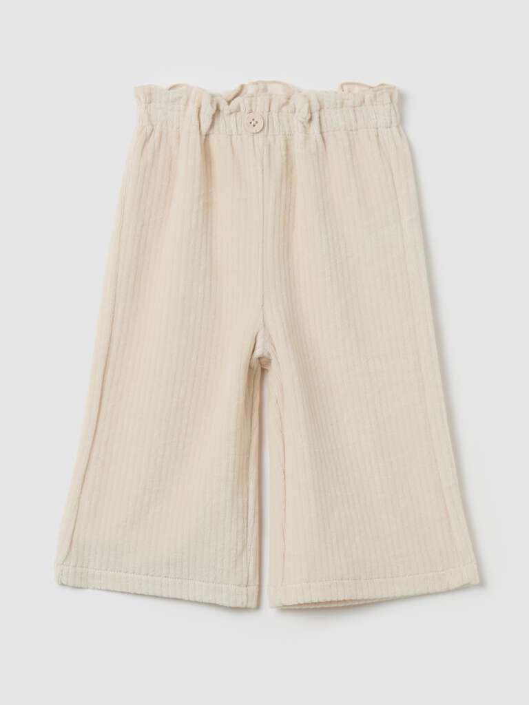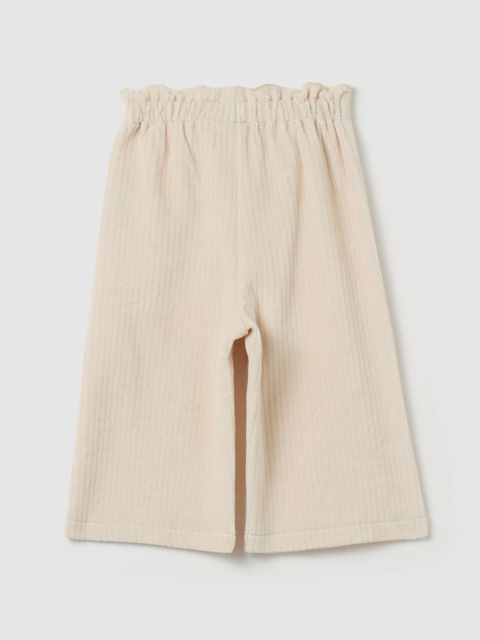 Pantalon large en chenille de coton mélangé côtelé. Taille élastique avec bouton décoratif ton sur ton.