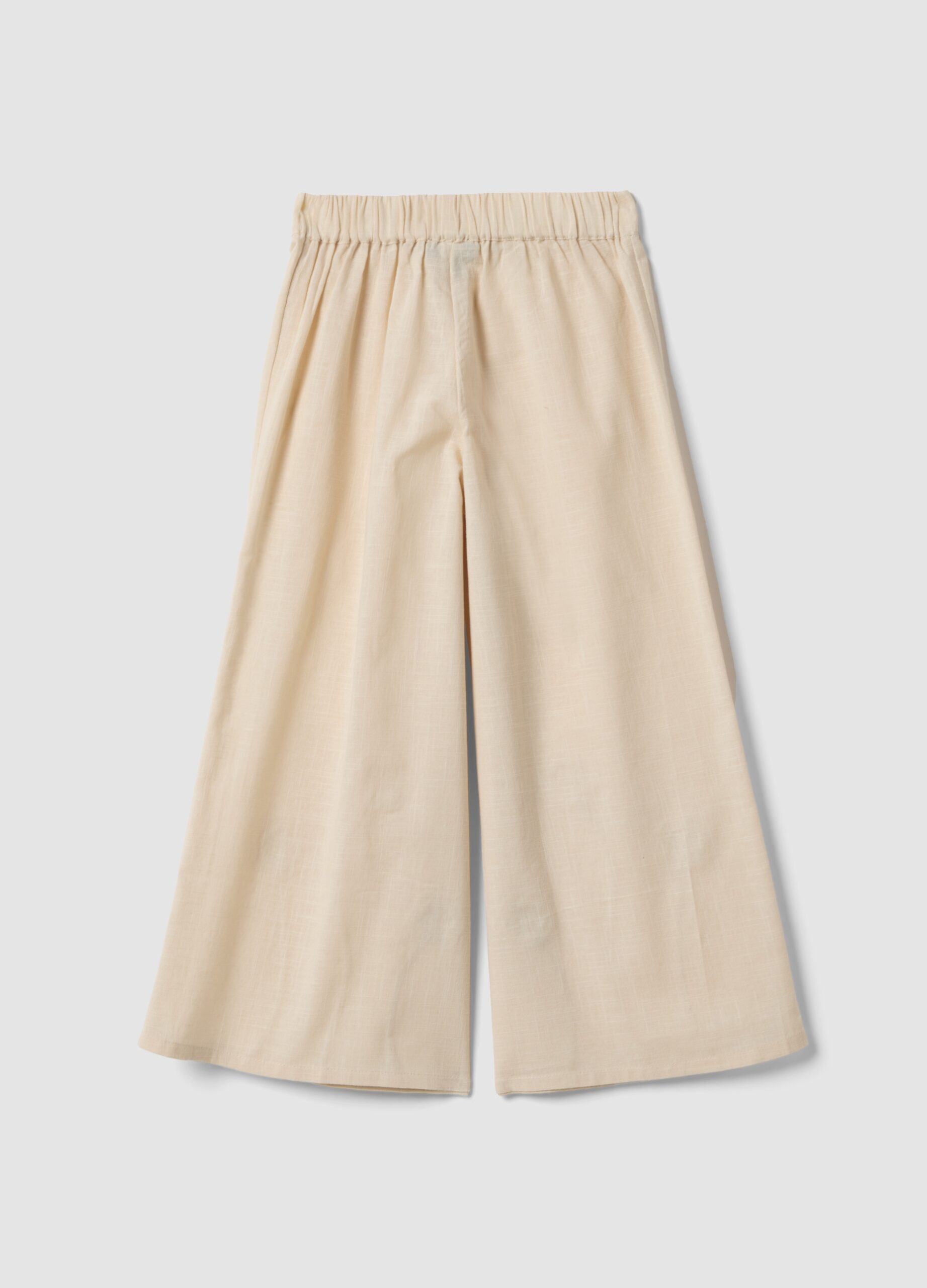 Le pantalon beige pour fille de la gamme PIOMBO KIDS, confectionné en pur coton, offre confort et praticité. Sa coupe large est rehaussée d’une délicate broderie florale à l’ourlet. Une taille élastique assure un ajustement confortable, ce qui les rend idéaux pour le printemps-été.