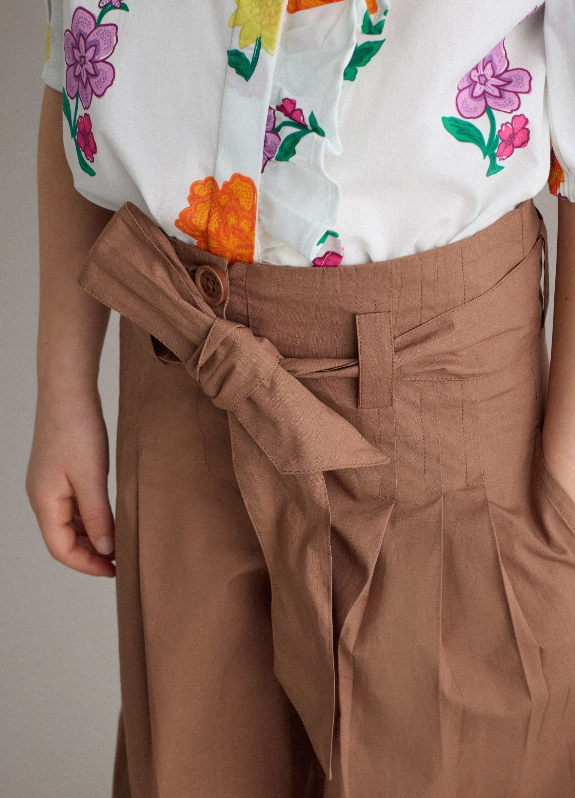 Le pantalon large marron de la ligne PIOMBO KIDS est idéal pour les filles de 3 à 10 ans. Confectionné en pur coton, il présente une taille régulière pour assurer un maximum de confort. Le design moderne avec des jambes larges et un nœud décoratif à la taille permet de créer des looks pratiques et polyvalents, parfaits pour le printemps et l’été.