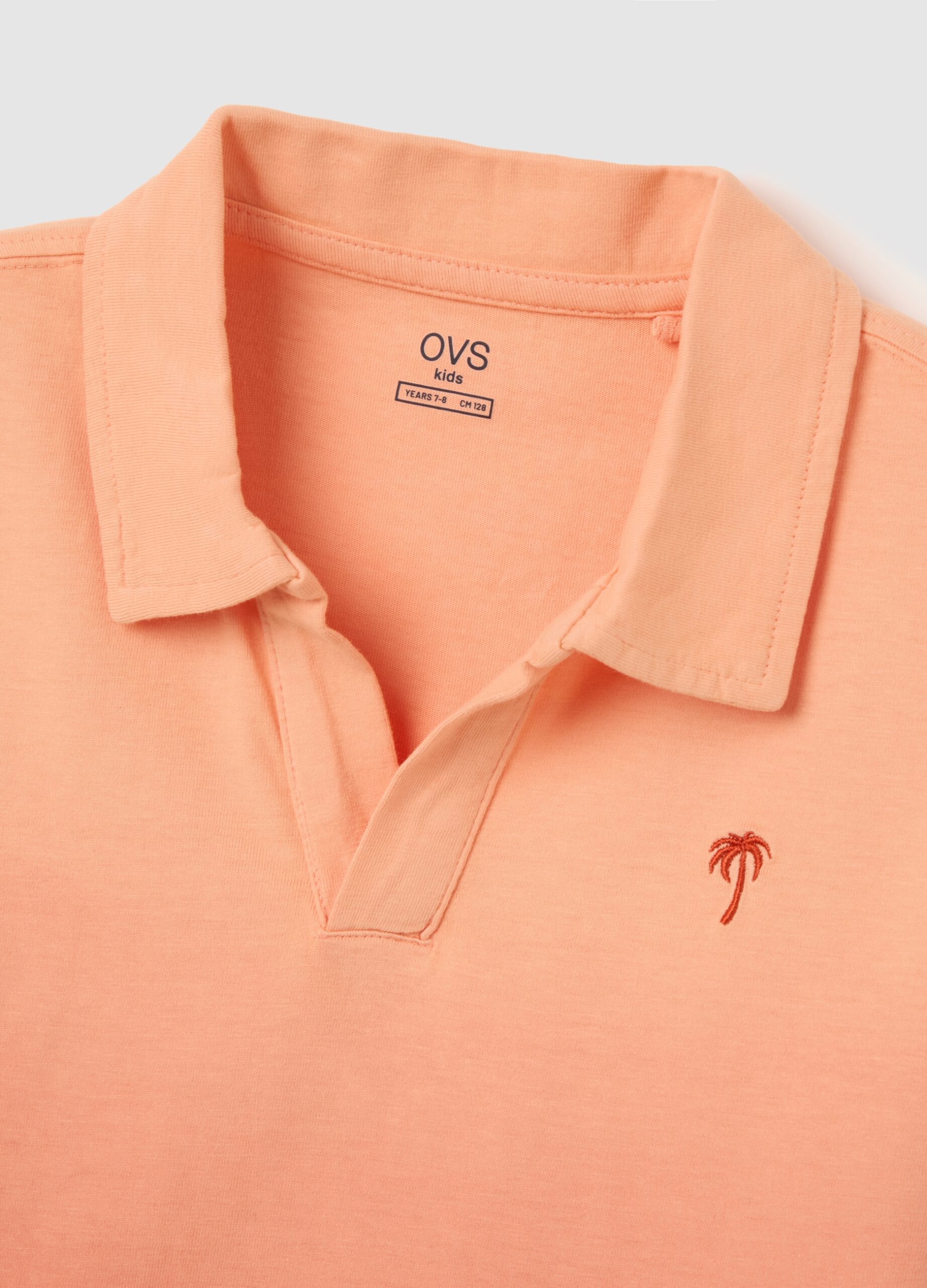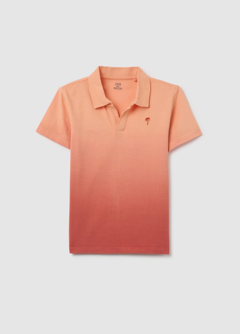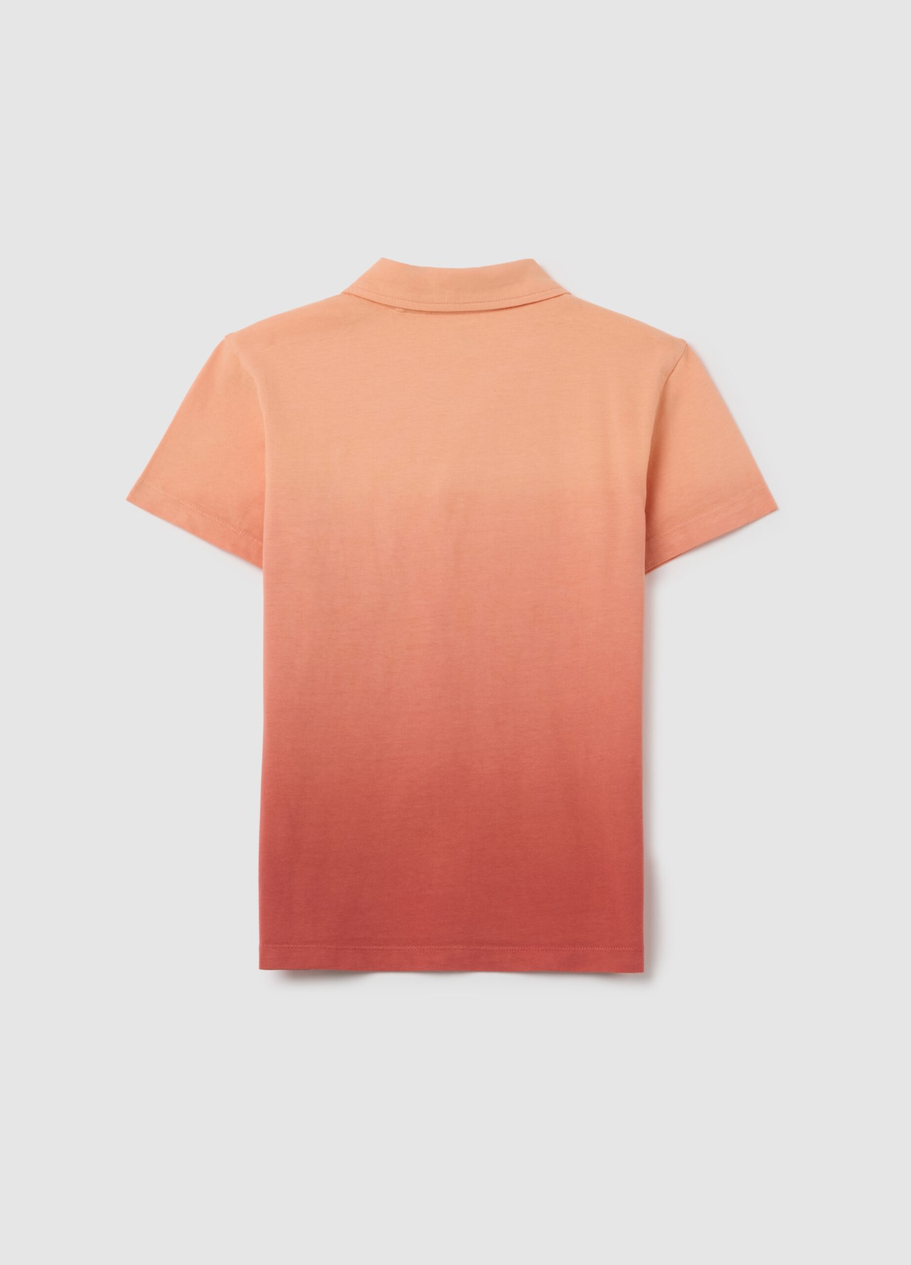 Polo à manches courtes sur les enfants en coton pur. Collier classique et design fané dans les tons d’orange. Ajustement régulier pour un confort maximum.