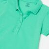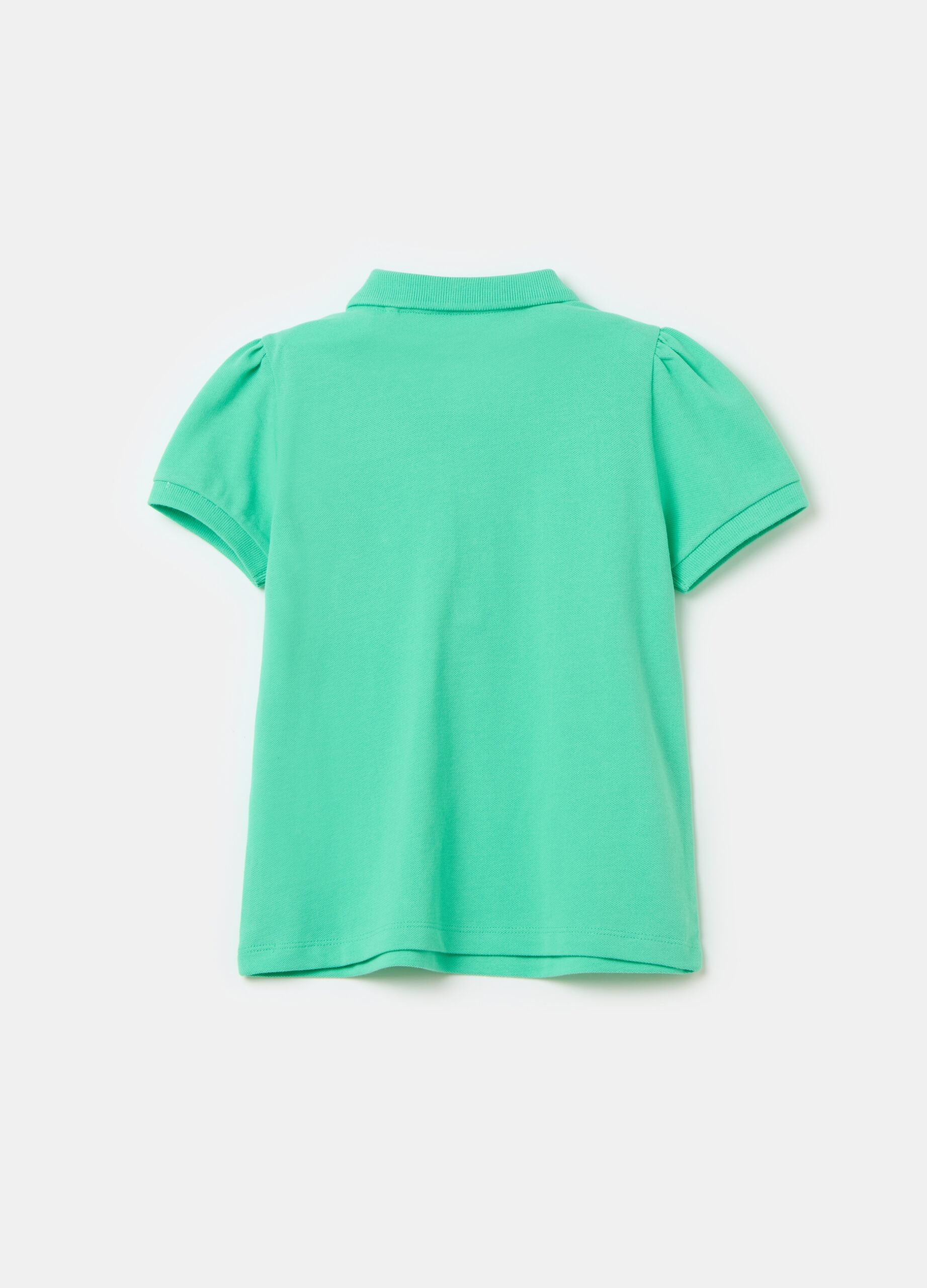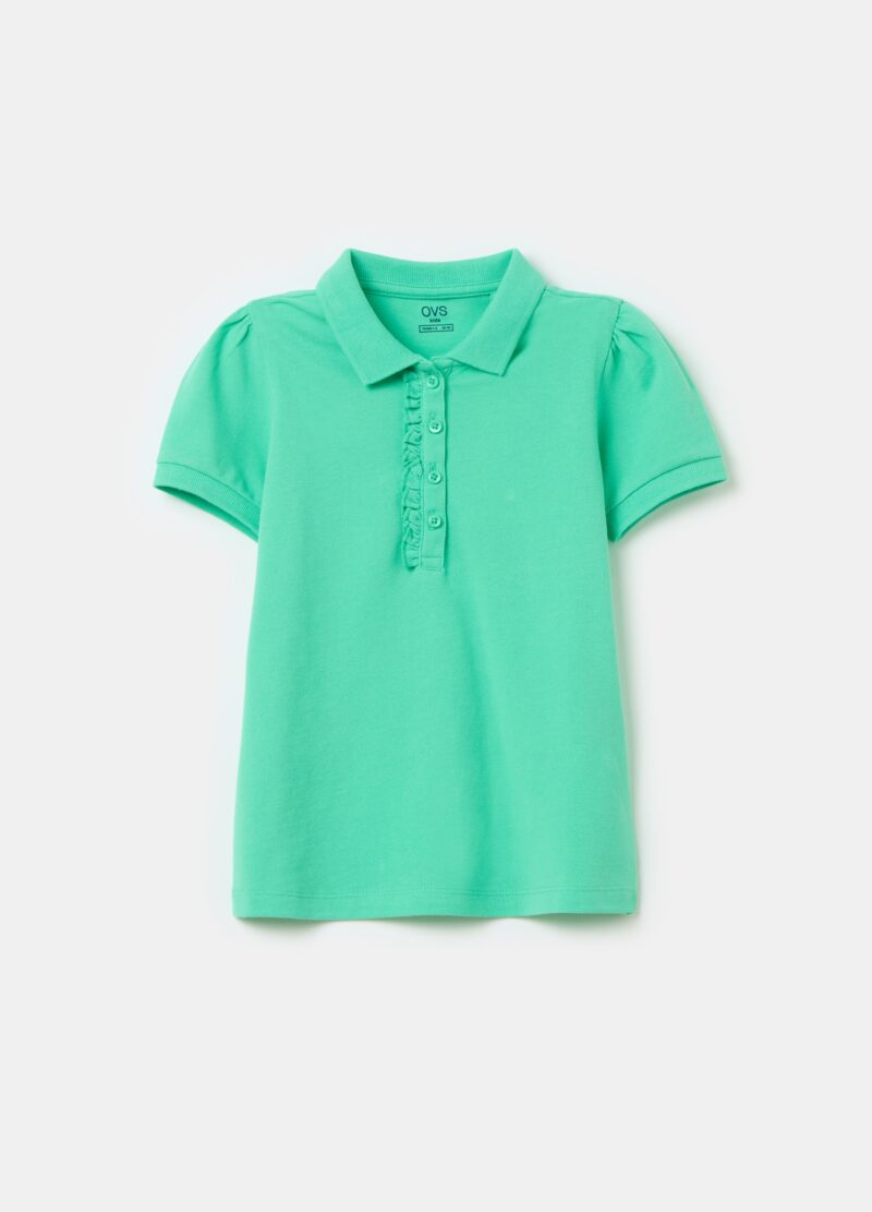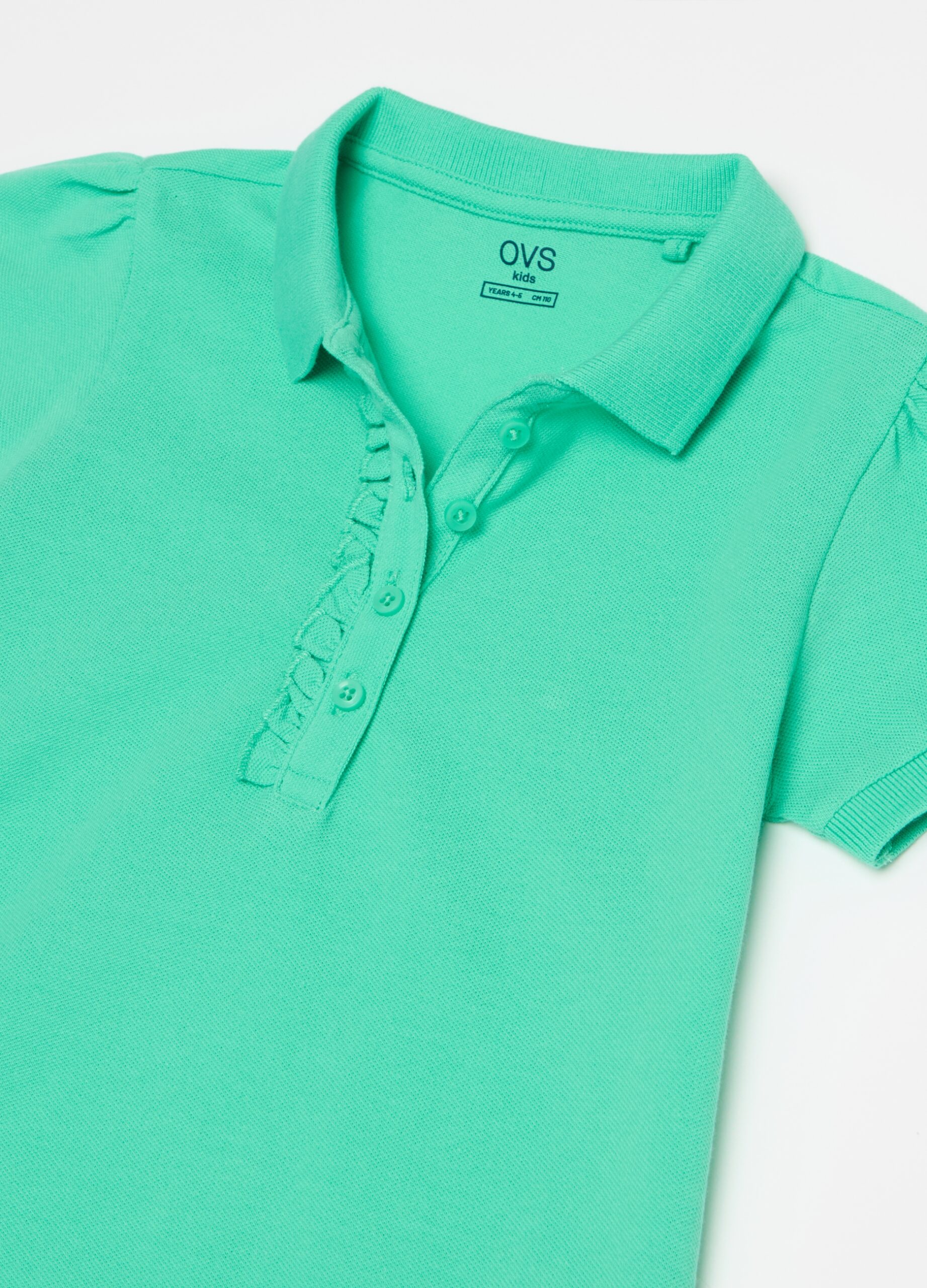 Polo piqué 100% coton. Encolure boutonnée et volant assorti. Manches courtes bouffantes.