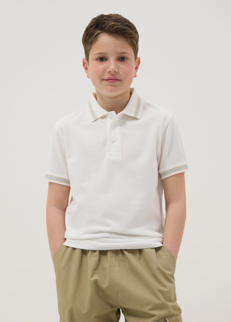 Polo garçon coupe classique blanc pur coton