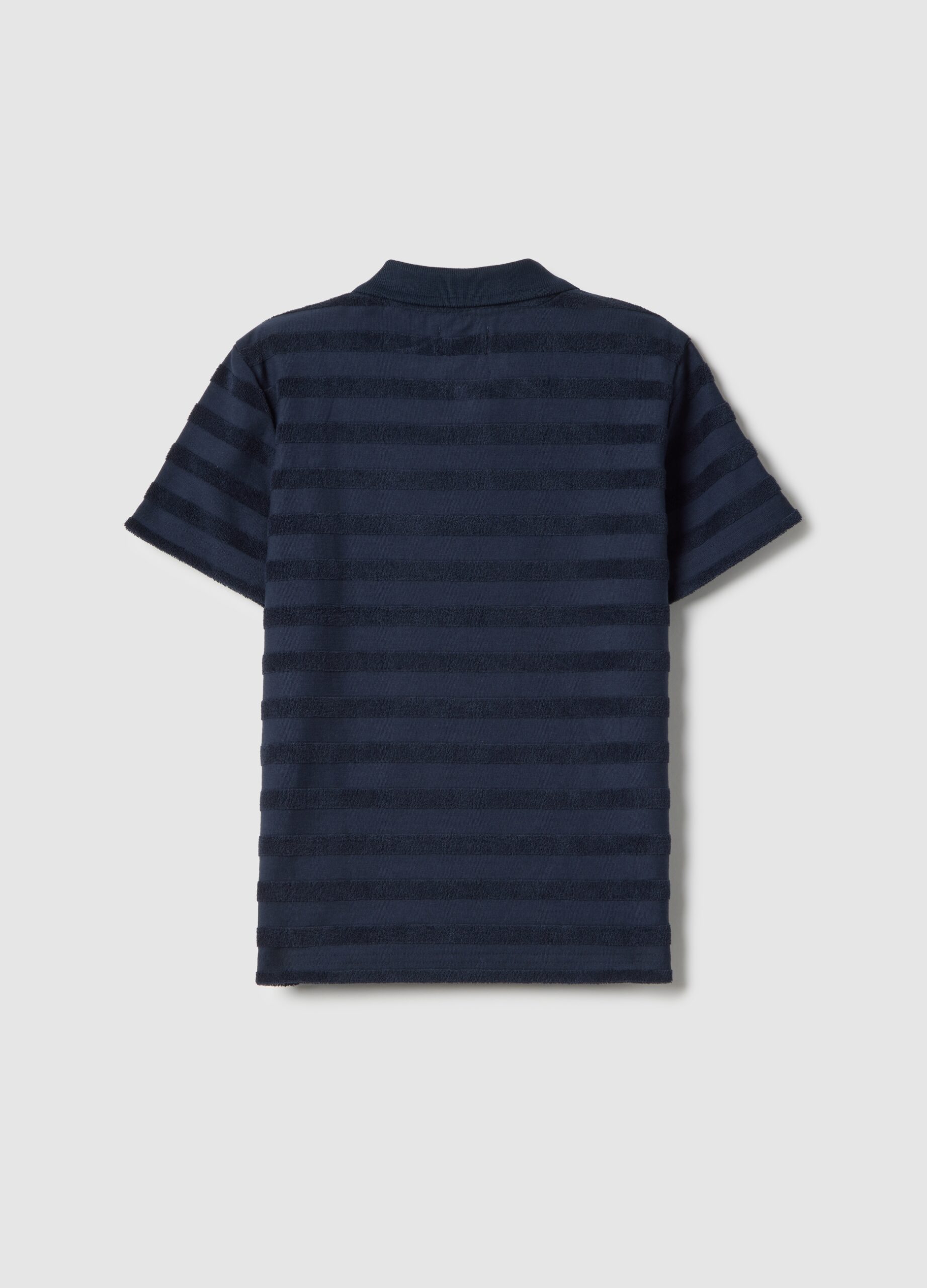 Polo garçon pur coton rayé bleu coupe classique