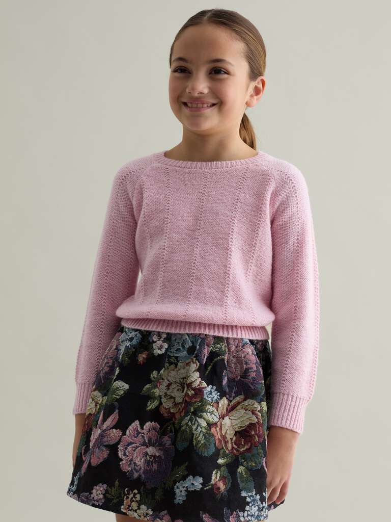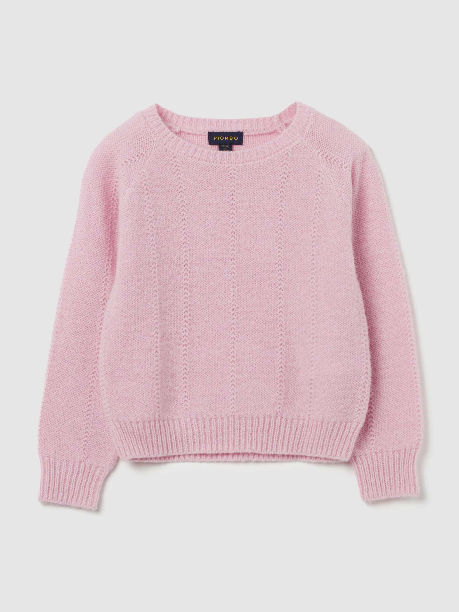 Pull PIOMBO en laine mélangée avec tissage pointelle. Col rond. Manches raglan. Finitions côtelées.