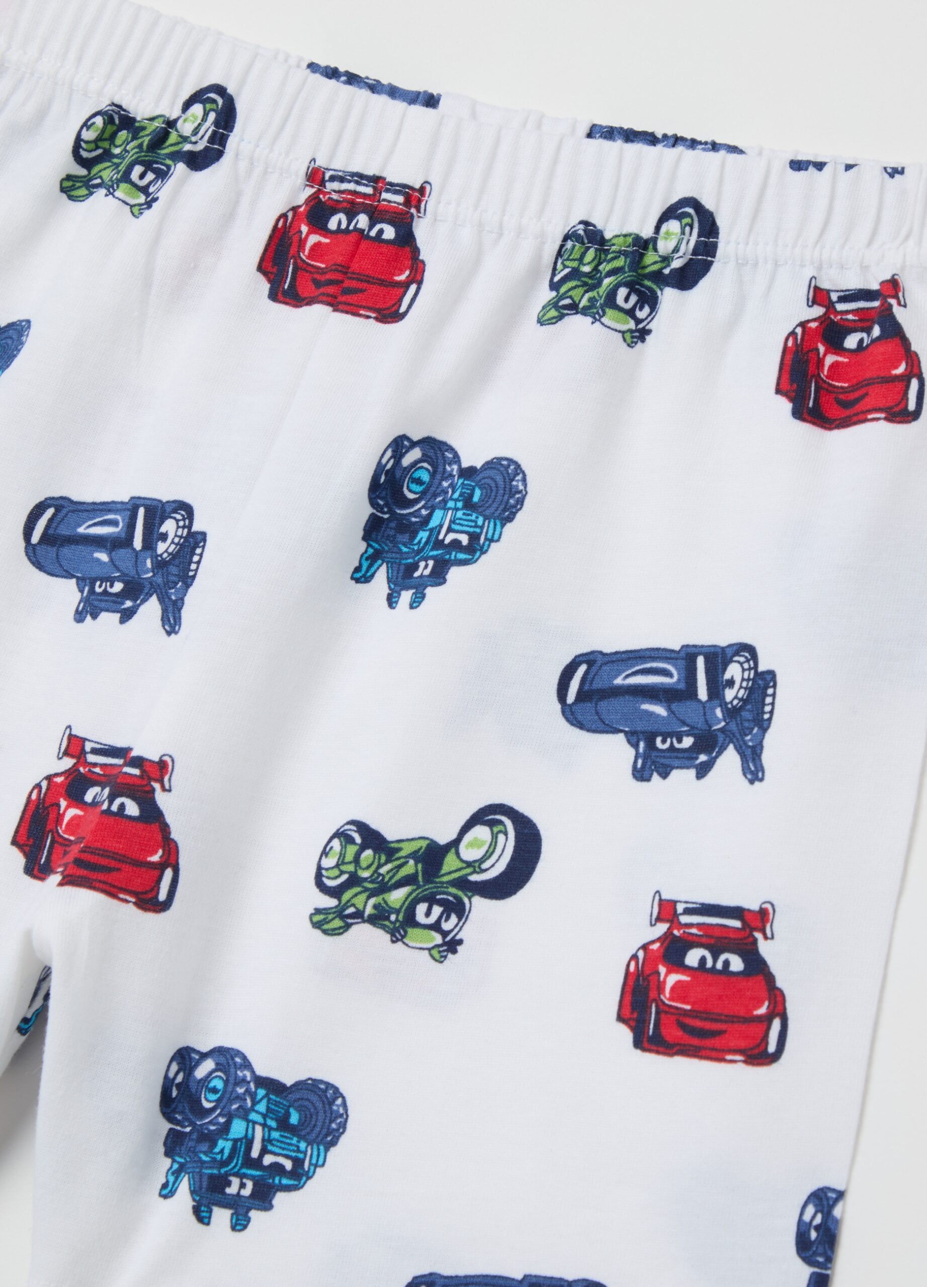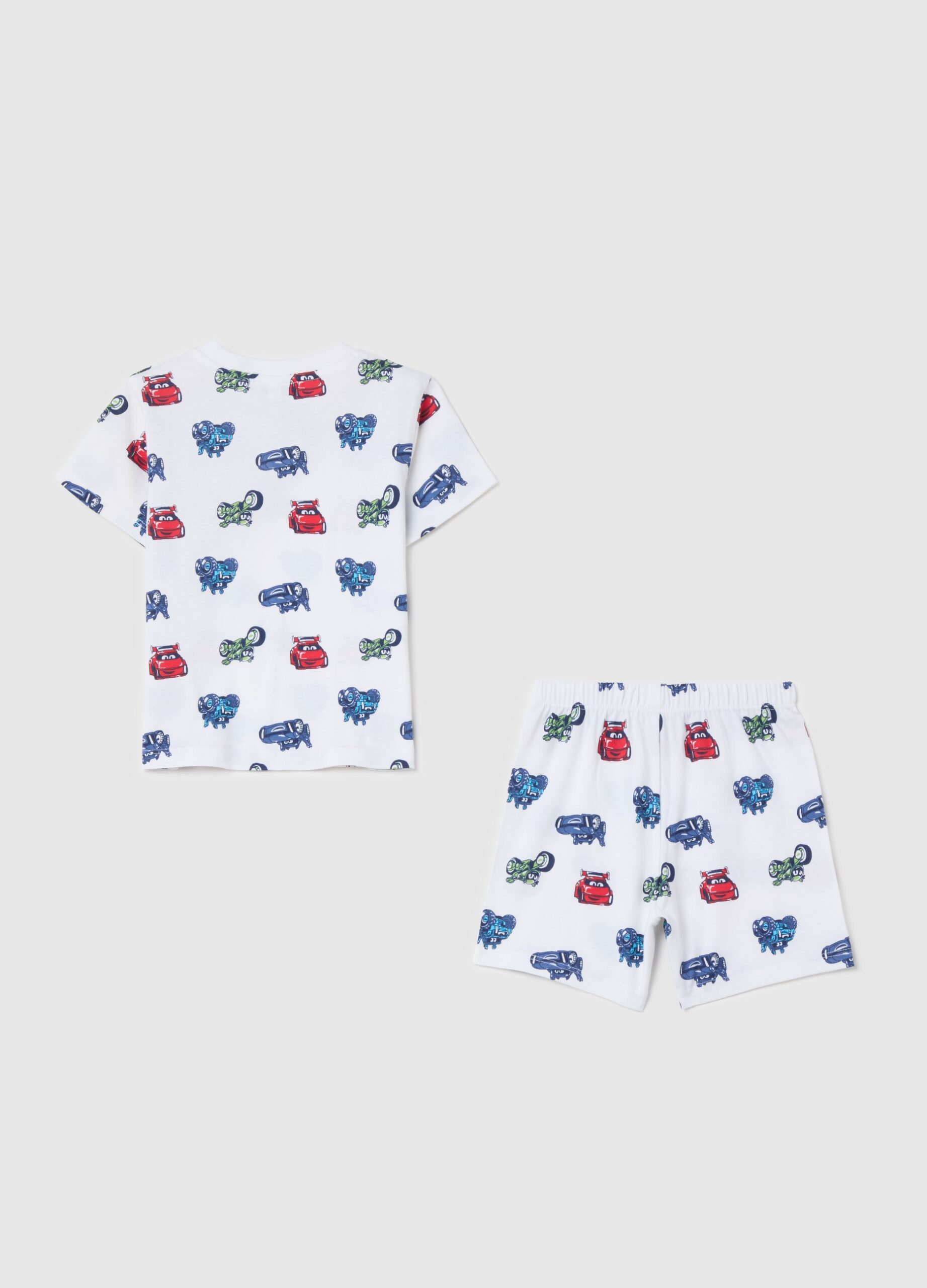 Pyjama court en 100% coton avec des roues de chauve-souris tout-over imprimées. Garbot avec cou rond et boutons instantanés sur le côté. Manches courtes. Shorts avec une bande de taille élastique.