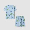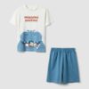 Le pyjama multicolore de la ligne OVS KIDS est conçu pour les enfants de 3 à 8 ans, assurant confort et douceur tout au long de la nuit. Fabriqué en pur coton biologique, il comprend un t-shirt blanc avec un imprimé ludique « Morning Routine » et un short bleu. Le design à col rond et à manches courtes offre une coupe classique, parfaite pour la saison estivale.