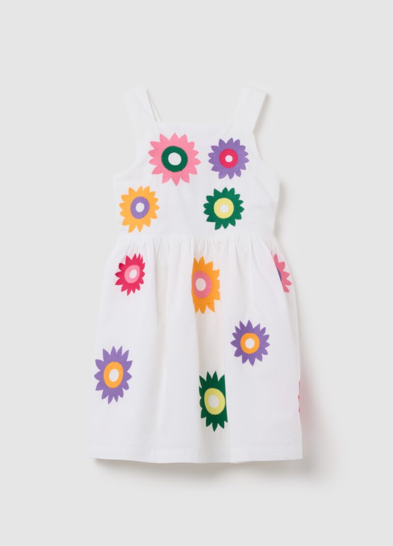 Les enfants Piombo blanc sans manches s’habillent en coton pur avec des imprimés floraux vibrants. Fabriqué à partir de poplin léger pour la saison de printemps-été. Conception avec des sangles et ceinture élastique à l’arrière pour un ajustement confortable.
