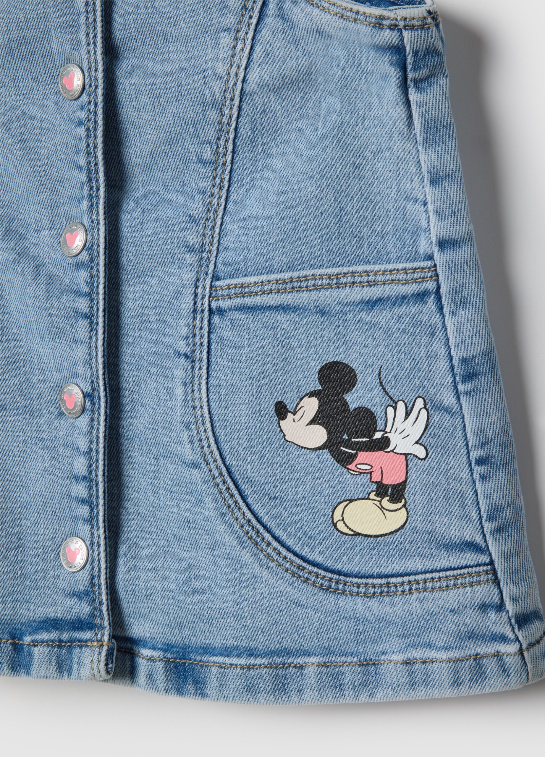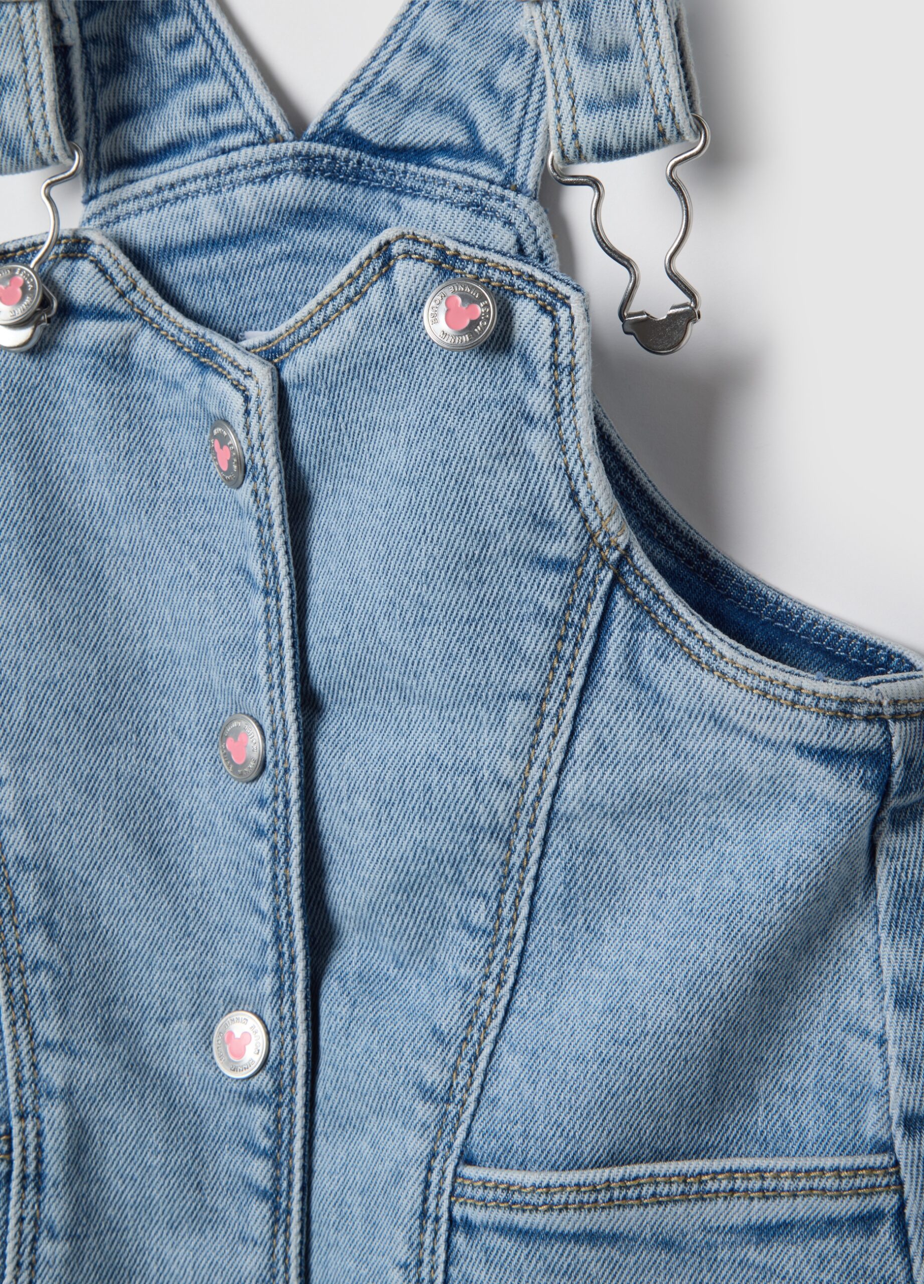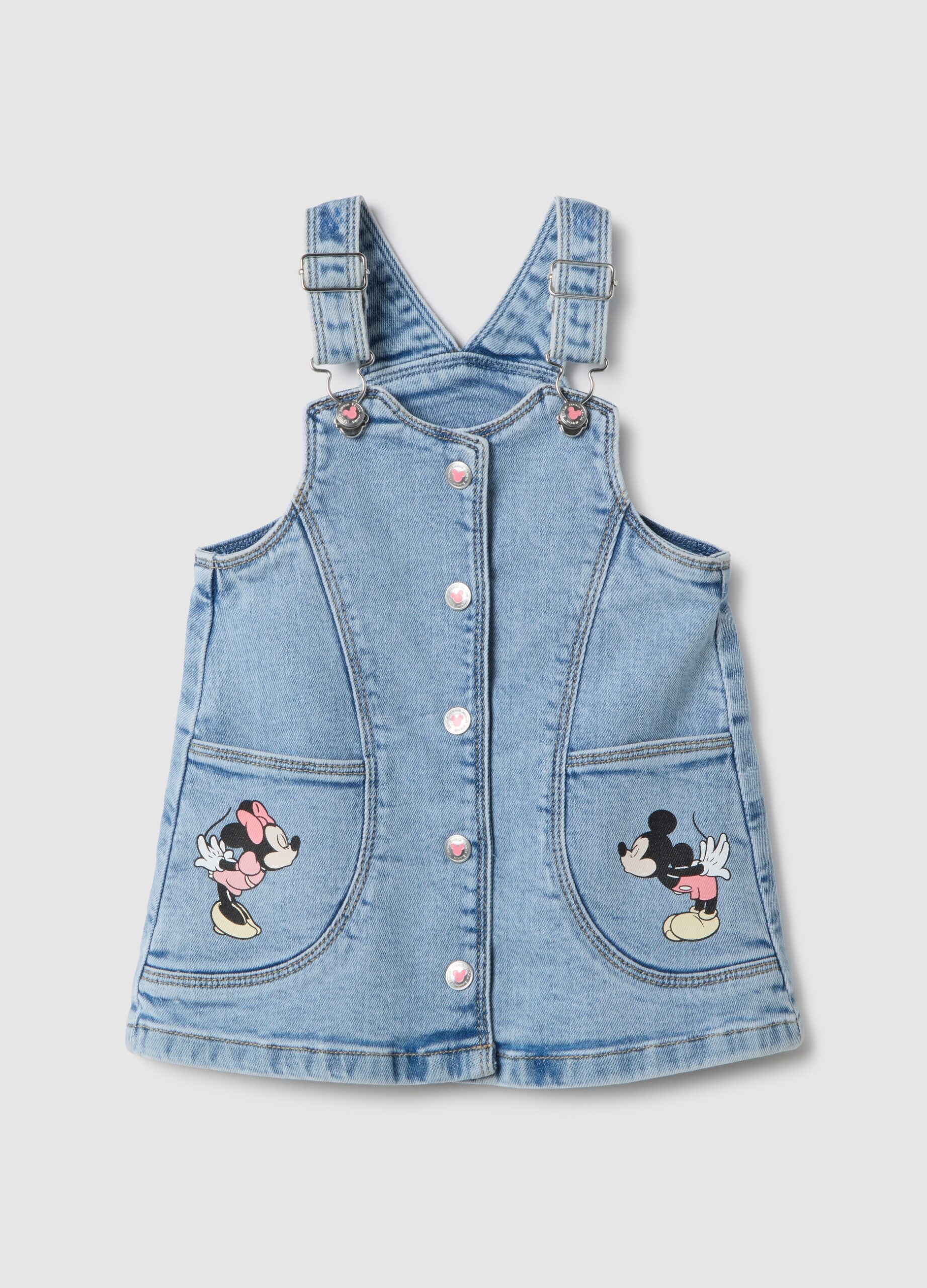 La charmante robe en jean stretch pour fille de 9 à 36 mois de la ligne OVS Kids est confectionnée en coton, apportant confort et liberté de mouvement. Les joyeux motifs Mickey et Minnie sur les poches avant ajoutent une touche ludique. La fermeture à bouton-pression et les bretelles réglables le rendent facile à porter, parfait pour les mois les plus chauds.